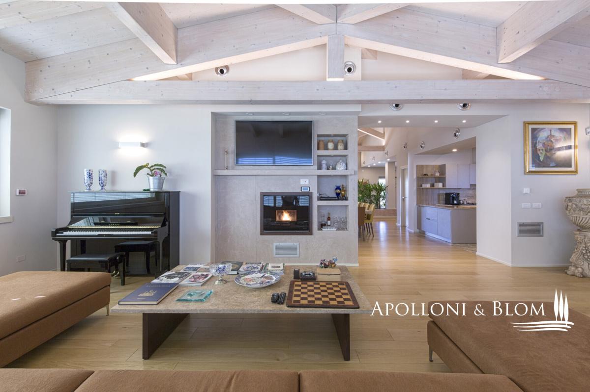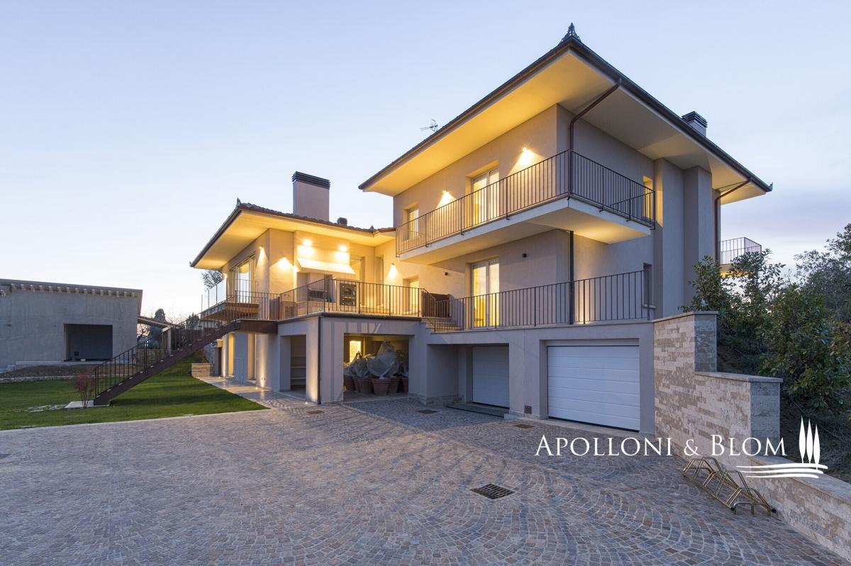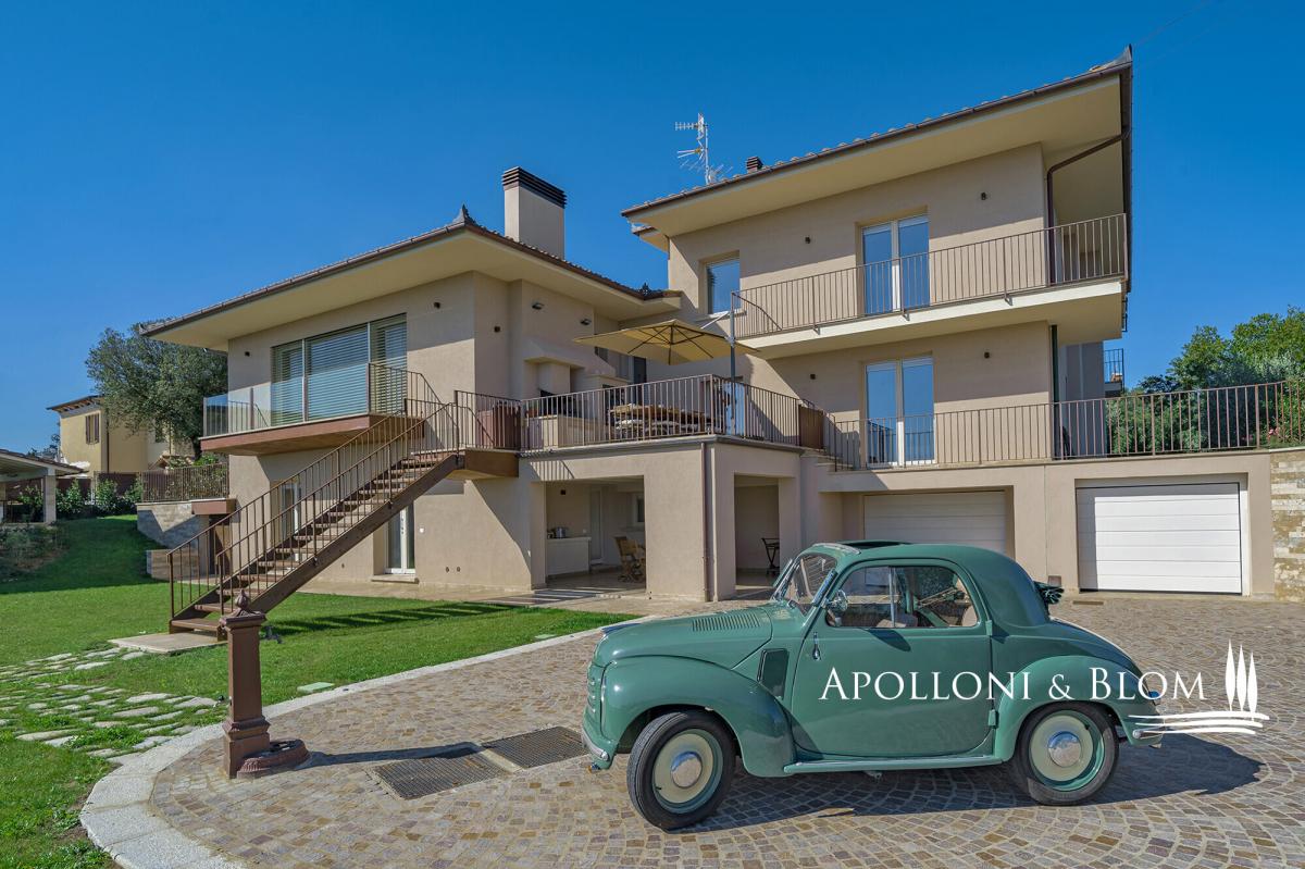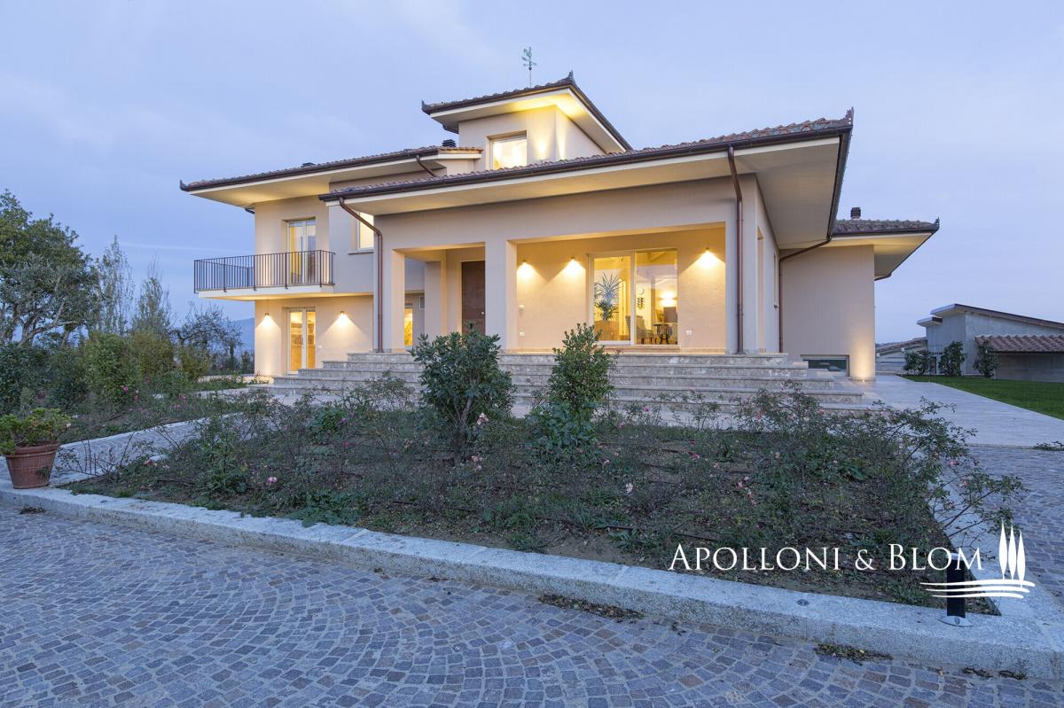 An enchanting setting amidst the Val di Chiana, this contemporary villa in energy class A4 combines timeless elegance with eco-conscious design. Situated just moments from the historic town of Foiano della Chiana, this remarkable residence offers the very finest in Tuscan living—where sustainable innovation meets refined sophistication. Completed in 2019 to the highest specifications, the property is fully equipped with state-of-the-art technology, including a 10.8 kW photovoltaic system and 8 kW solar thermal panels for electricity and hot water. Designed for maximum energy efficiency and comfort, the villa features underfloor heating powered by heat pumps and pellet burners, advanced mechanical ventilation, and a full home automation system operable remotely. The villa spans approximately 820 sq m across three levels, showcasing luxurious finishes such as solid oak parquet flooring, travertine marble, and bespoke triple-glazed windows with electronically operated internal shutters. The living spaces are generously proportioned and flooded with natural light, while every room has been thoughtfully appointed for modern living. A total of four ensuited bedrooms and a study complete the living area along with a wellness area with Jacuzzi and Turkish bath. Outdoors, a striking infinity-edge pool sits directly in front of the villa, offering uninterrupted views over the countryside. The beautifully landscaped garden includes an automatic irrigation and lighting system, while the estate’s 3 hectares of productive olive groves (with over 3,000 trees) yield an impressive annual harvest of extra virgin olive oil. A charming guest house provides a fully self-contained one-bedroom apartment. Also included a 75 sq m basement garage, ample storage for bicycles and motorbikes, and three separate gated entrances. The villa enjoys exceptional panoramic views extending over 80 kilometres. While set in a peaceful and private location, it lies just 900 metres from essential services and within easy reach of major cultural destinations across Tuscany and Umbria. Discreet luxury, modern sustainability, and breathtaking scenery—this is a rare opportunity to own a truly unique Tuscan retreat. Furniture not included, option available on request. Property Ref.: ARZ2098 Energy Efficiency Class: A4 Location: Foiano della Chiana, Province: Arezzo, Region: Toscana Type: 820 sq m/9000 sq ft three-story luxury villa with garage, guest house, swimming pool and garden Year of construction: 2019 Condition: excellent Land/Garden: 4000 sq m/1 acre garden equipped with irrigation, lighting system with crepuscular sensors, 3 automatic gates; 3 hectares/7 acres of olive grove with 330 ancient trees and 2700 newly planted; annual production of 2500 litres of extra virgin olive oil. The olive groves have a drop irrigation system Swimming pool: 12x6m infinity edge pool and non-slip coating with solarium, hot water option available Garage: 75 sq m/807 sq ft basement garage Utilities: Fixed telephone network: available Internet: indoor and outdoor Wi-Fi Security: Video surveillance system with 8 external cameras and the possibility of remote control; Double alarm system, volumetric, and anti-intrusion with magnets on all fixtures and both internal and external entrances (with remote alarm) Heating: under floor heating powered by a pellet fireplace plus heat pump + solar panels for hot water Water: mains city supply + Reverse Osmosi plant + 100 m3 rainwater tank + 2 wells Electricity: connected + domotic + photovoltaic system for the production of electricity and hot water with power of 10.8 kW and 8 kW respectively Solid oak and travertine parquet floors Oak windows with triple glazing Internal shutters with electronic controls Distance to services: 900 mt. Distance to main airports: Perugia 67 km, Florence 109 km, Rome 215 km. Layout: Basement: living/dining room, kitchen, two bedrooms with en-suite bathrooms, patio, laundry, service bathroom, Wellness centre with Jacuzzi and Turkish bath, a 75 sq m/807 sq ft garage, technical room, other garages for motorcycles, bicycles Ground Floor: 3 living rooms, 1 bedroom with en-suite, 2 toilettes, front porch First Floor: study, 3 bedrooms all en-suite, 2 terraces Annex: 60 sq m/645 sq ft guest house with living room and kitchen, corridor, 1 bedroom, 1 bathroom and technical room- garage