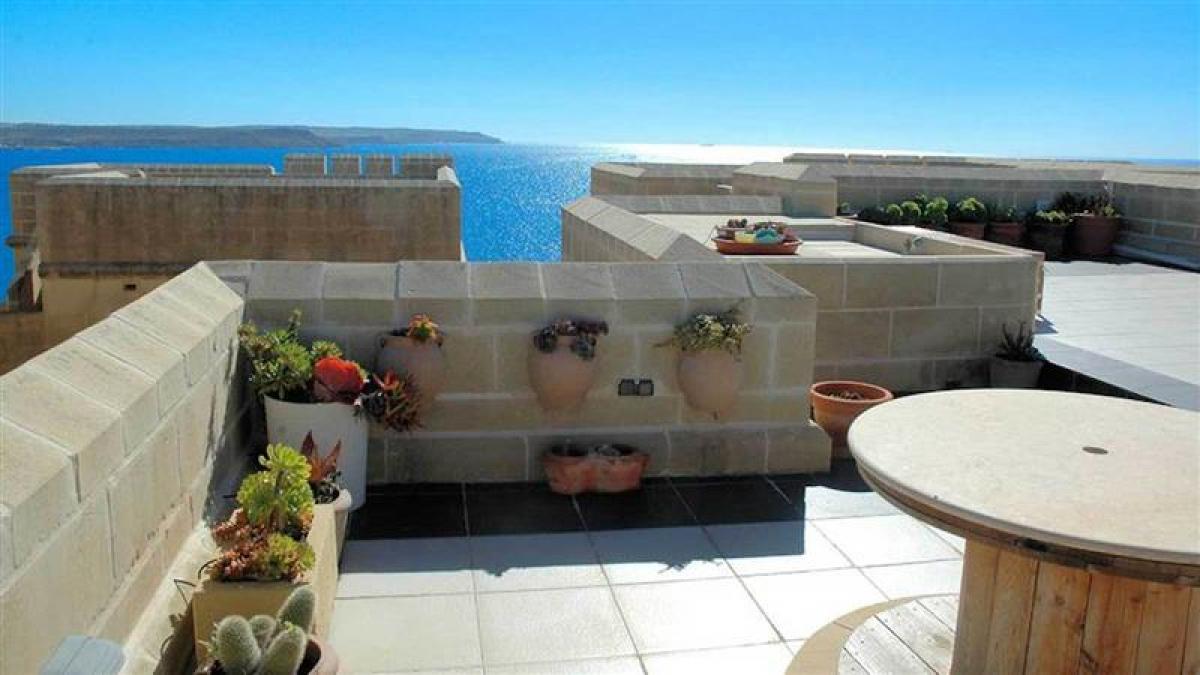 A doorway opens onto a sheltered terrace with attractive planting and stairs take you up to the roof terrace complete with bath (not Jacuzzi!) to enable you to relax while taking in the stunning panoramic views of the Mediterranean and Malta.