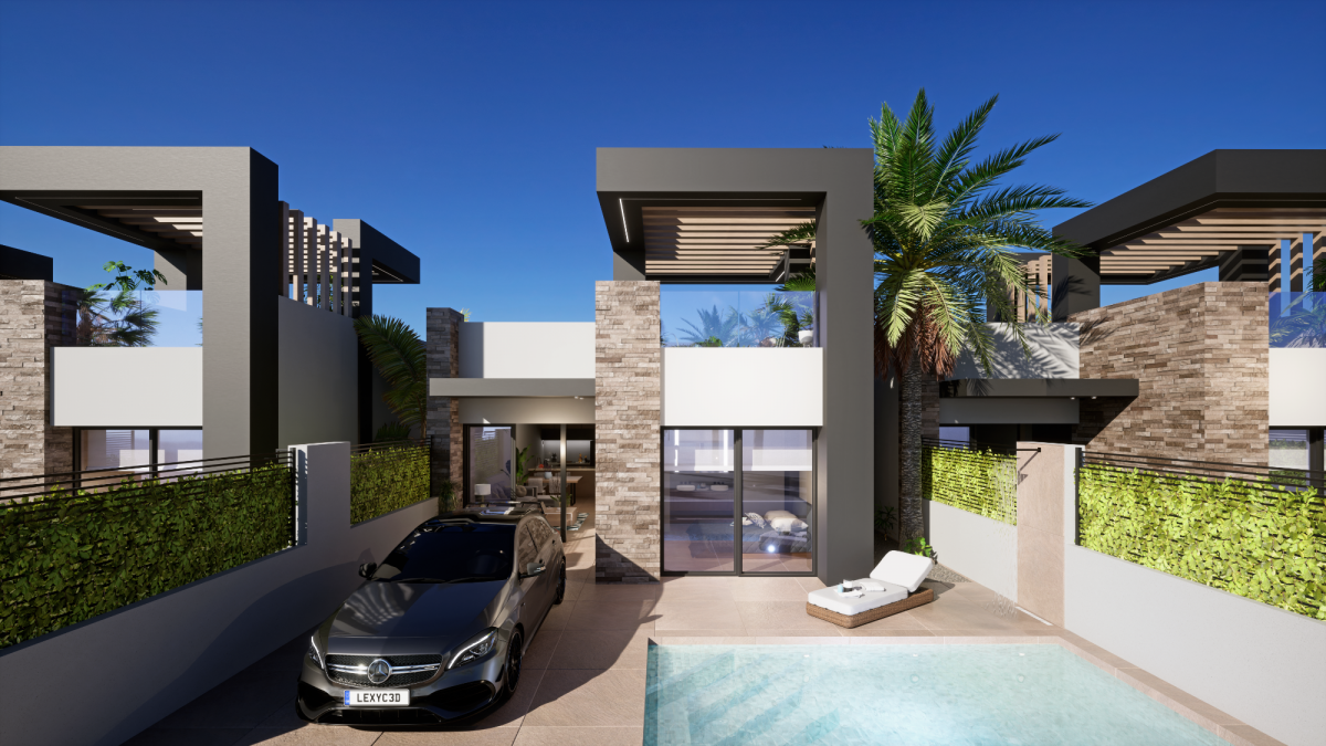 This new developmentin San Fulgencio is a jewel close to the spectacular beaches of Guardamar. These modern-style homes, with 3 bedrooms and 2 bathrooms, are located a stone's throw from the city center and all the amenities you could want. Imagine living in a place where contemporary design merges with proximity to beaches and the convenience of the city center. Saito Villas are the answer to that dream. With carefully designed architecture and modern style that will appeal to those seeking the ultimate in comfort and elegance. Every corner of these homes has been designed to provide a unique living experience. The 3 bedrooms offer you more than enough space for your family, and the 2 bathrooms are equipped with high-quality finishes that will make you feel in a true oasis of well-being. The location is just as impressive. You are close to the magnificent beaches of Guardamar, which means you can enjoy the sea and sand in a matter of minutes. Furthermore, the city center and all essential services are just a step away from your door. Contact us for more information.