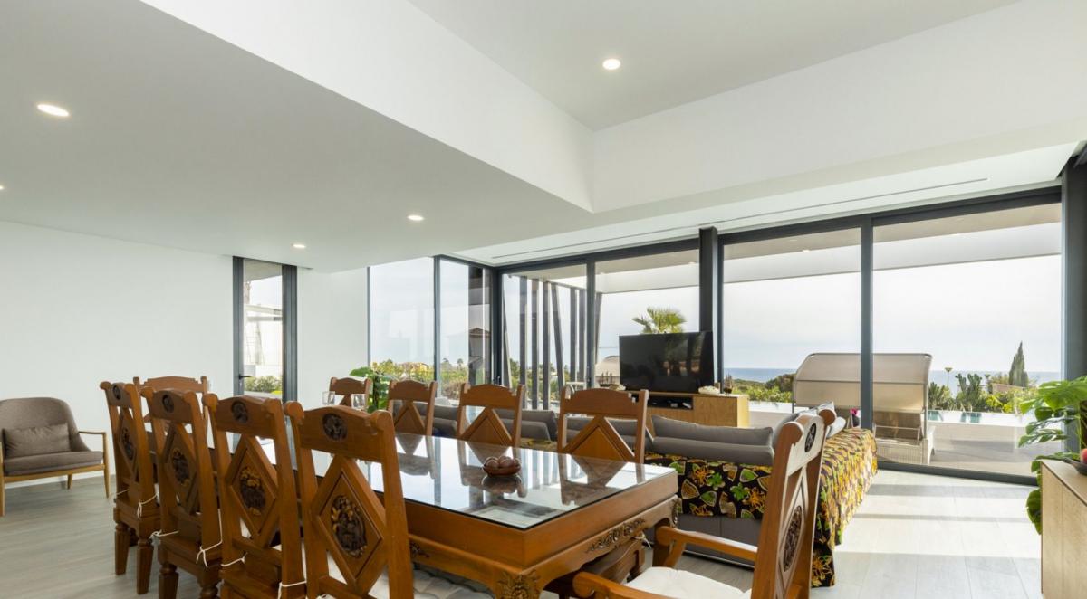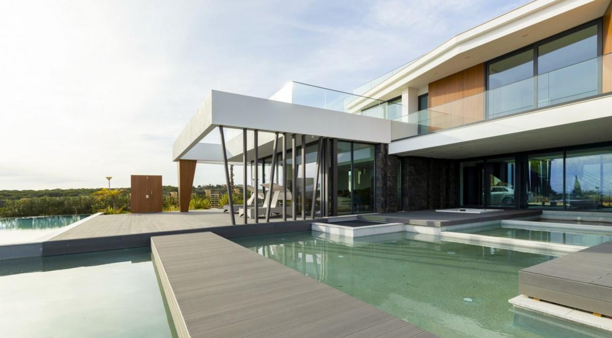 As you approach this luxurious property, you are greeted by custom-designed gates leading you down a picturesque calçada driveway. The entrance of the property is adorned with an enchanting water feature, setting the tone for the elegance that lies within. This contemporary villa is a standout with its unique design, a harmonious blend of colors, textures, and a striking combination of wood and steel. Nestled in a tranquil sea-front urbanization in the heart of Carvoeiro, this villa is situated in a quiet cul-de-sac, offering unobstructed, direct views of the vast ocean. Recently constructed, this villa boasts modern finishes and top-of-the-line equipment, designed to capture the maximum amount of natural light and breathtaking sea views with its floor-to-ceiling windows. The villa spans two levels, in addition to a basement, with all rooms facing south to benefit from the fantastic views. Each room opens onto exterior terraces, offering panoramic sea views. The ground floor comprises an entrance hall that leads to an open-plan living/dining room, a kitchen complete with a pantry, and an en-suite bedroom with a dressing room. All these spaces have direct access to the terraces, garden, and swimming pool. This level also features a service bathroom and a hallway with large windows overlooking the lush garden, accompanied by a water feature and a jacuzzi. The first floor houses three en-suite bedrooms, all opening onto south-facing terraces with fantastic views. A roof terrace provides a leisure area to further enjoy the extended sea views. The basement accommodates a garage with space for more than three vehicles, a technical room, a wine cellar, and additional areas that can be utilized as a gym, cinema room, or for other purposes. The property is equipped with water-based underfloor heating, a central vacuum system, an alarm, domotics, electric shutters, and many other extras, offering the ultimate in comfort and convenience. This villa is not just a home, but a lifestyle.Features: