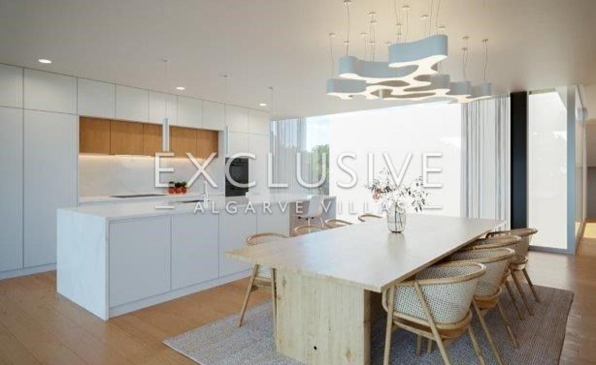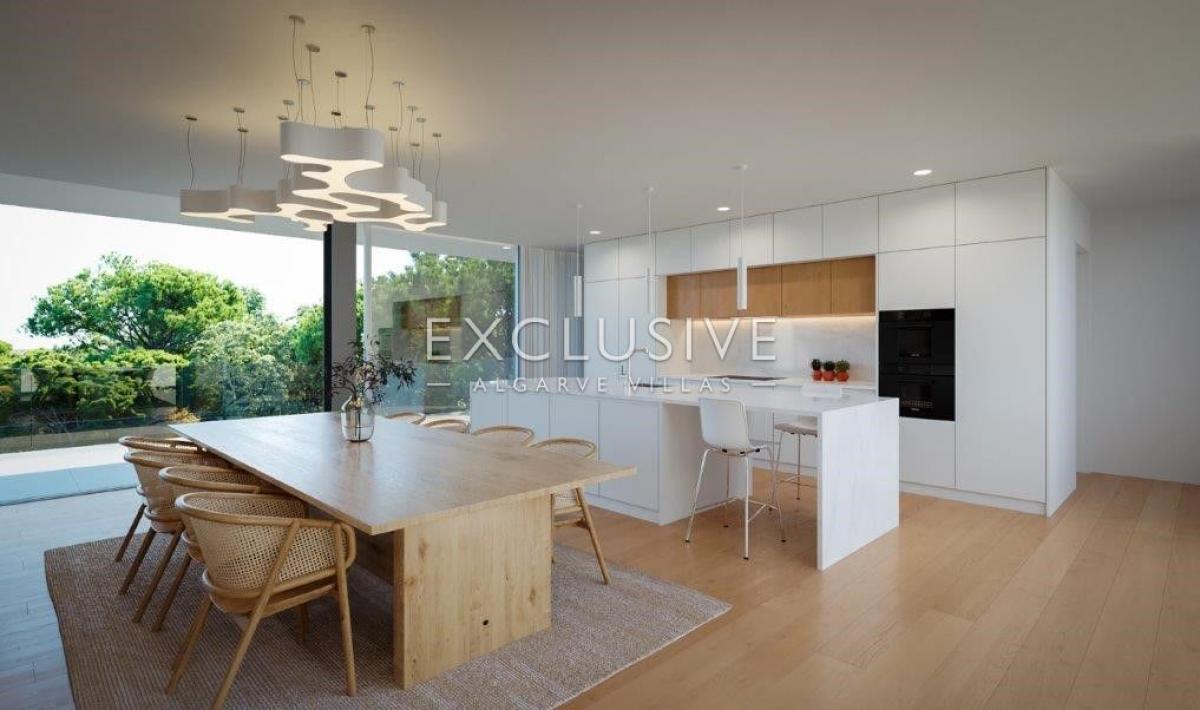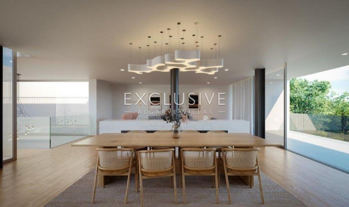 Beautiful contemporary lines, that offer ample living space on a large private plot close to the centre, in a high quality build soon to begin construction. Close to the centre, Porto de Mós, with sea views from the first floor, and the Boavista golf course, this villa consisting of 5 en-suite bedrooms, one of them a spacious master with walk in closet, a large open plan kitchen and living area, and a large parking for multiple cars, a fully equiped laundry room and storage, will make the perfect family home with very high letting potential. Fitted with all the modern equipment, such as under-floor heating associated with solar panels and heat pump, Air conditioning through vent sistem, domotics, etc. All floors acced by elevator. The finishing selected are to the highest standing, such as oak floors and quality tiling (90x90), floor to ceiling doors on pivots, all sanetary equipment by grohe, etc. The pool comes fitted with heat pump and surounded by wooden decking and the garden landscaped with automatic irrigation. At this moment it is still possible to influence the choice of finishing materials.