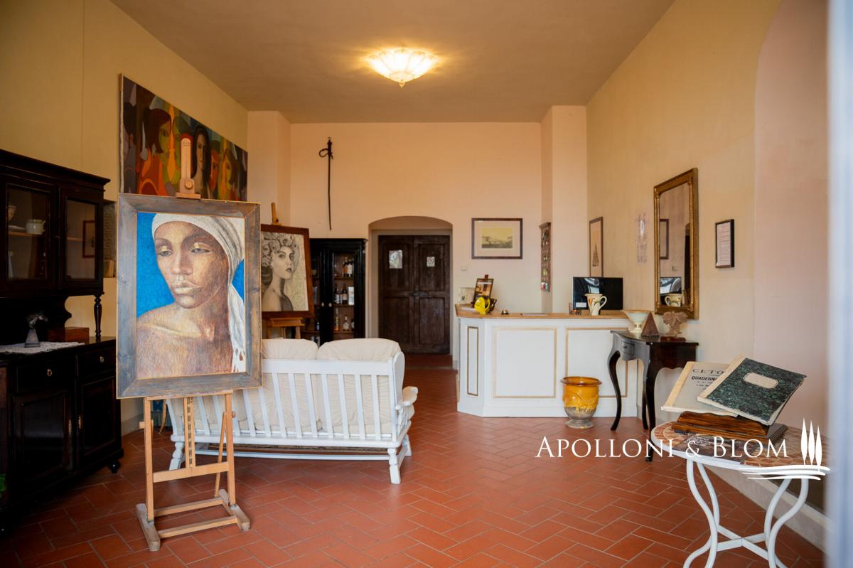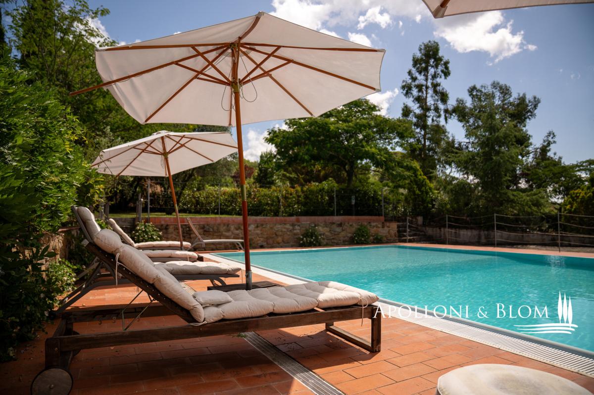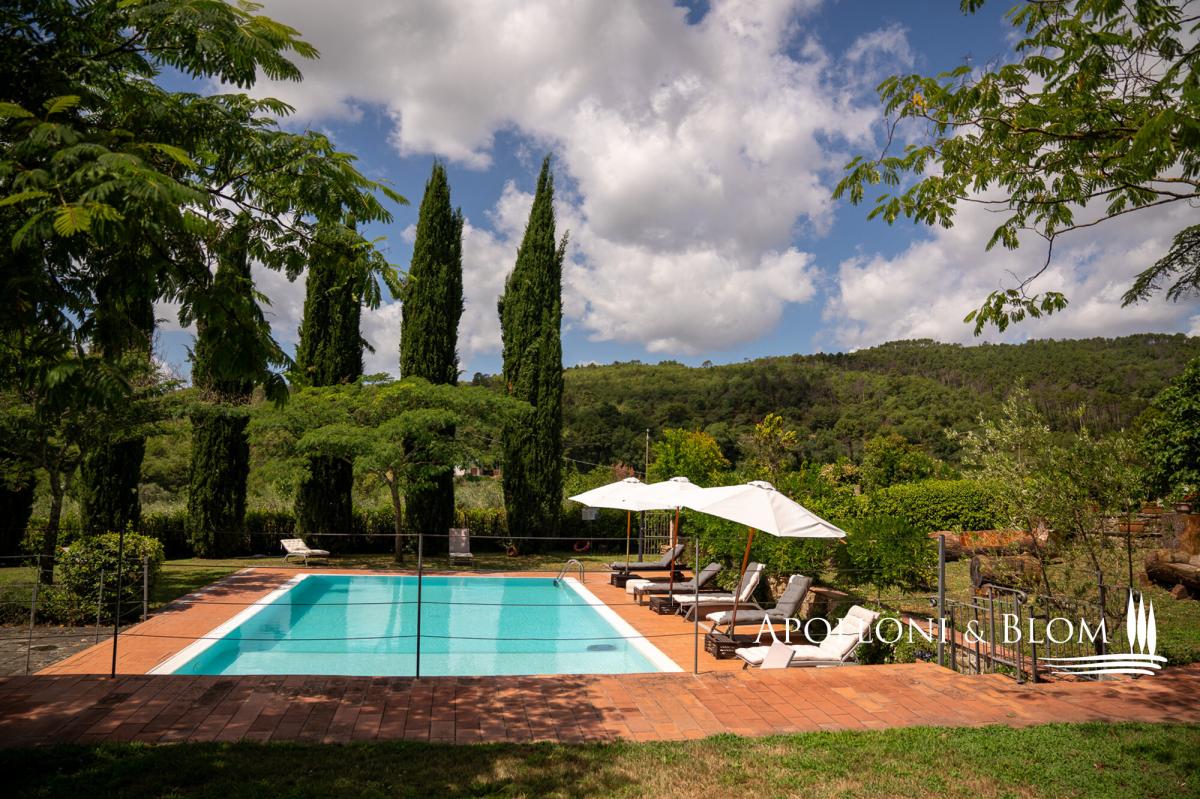Renovated 19th-century villa with infinity pool, country house, and park for sale in Loro Ciuffenna, Arezzo. Perched on a hill in the middle of the verdant Valdarno, along a convenient road connecting to a nearby village, this 19th-century villa is the best-preserved manor house in the area. In a borderland between Guelph Florence and Ghibelline Arezzo, it presents itself in its elegance in a regular quadrangular shape in pastel plaster and with a façade lightened by symmetrical openings and a loggia that shelters the refined entrance while supporting the balcony of one of the suites. The villa, for all its three floors including the attic, is used as a hotel and, among other things, boasts a spa with hydromassage and chromotherapy, a Turkish bath and fireplace, a large screen, and an electronic opening of the roof to admire the starry sky. The ground floor is organized into a reception, breakfast room, and staff rooms; it is rustic with its red brick arches and terracotta floors, while the rooms on the upper floors have been renovated in an essential way to maintain the charm of a stately residence. In the ample outdoor space surrounding the villa is a three-story country house where the workers lived, also used for hospitality, and an infinity pool, the first to be built with this technique. The park is shaded by tall trees and leads, via a path and a few minutes walk, to a pristine river where trout and freshwater crayfish find their place in its natural pools. A project already approved some years ago, to be resubmitted to the municipality, would bring significant improvements to the events and weddings hospitality segment (significantly developed in the area thanks to the presence of the Borro di Ferragamo), allowing for greater internal capacity and additional external spaces. Due to its layout, the incomparable view, and the proximity to the Borro, the property is perfect as an investment for those who want to live there as a primary residence and successfully continue the ten-year hotel business. PROPERTY Ref: ARZ3082 Location: San Giustino Valdarno, hamlet of Loro Ciuffenna, Province: Arezzo, Region: Tuscany Type: four-story manor house, 930 sq m/10010 sq ft with swimming pool and spa, license for tourist accommodation facility; country house of 225 sq m/2421 sq ft; 100 sq m/1076 sq ft of building area, garden and woods Year of construction: 1800. It is one of the so-called "two sisters," together with the Villa del Borro owned by Ferragamo, designed by the same architect Year of renovation: 2023 Land/Garden: 4614 sq m/49664 sq ft including 1000 sq m/10763 sq ft park and 3569 sq m/38416 sq ft woods Terrace/Balcony: balcony on the main facade, supported by a loggia on the ground floor at the entrance Swimming pool: 6 x 12, underground technical room; sand filter; for adults and children, fenced Parking: outdoor - 20 seats Utilities: Fixed telephone network: available Internet: available Heating: the villa and the farmhouse have separate systems; gas + double heating plant Water: mains city supply + 3 tanks for a total of 5000 Lt + salt purifier Electricity: active Water waste: Imhoff tank Alarm system Distance from services: Il Borro 2.9km, San Giustino Valdarno 950m, A1 motorway 18km Distance from main airports: Florence 74km, Pisa 135km, Perugia 111km, Rome 264km Gravel road: 950-m gravel road and a low-traffic asphalted municipal road. The internal roads are private, and there aren't rights of passage Villa: Ground Floor, 240 sq m/2583 sq ft: reception, breakfast room, living room, guest bathrooms, bathroom, and changing room for staff First Floor, 240 sq m/2583 sq ft: Suite 1: double bedroom with fireplace in the villa's historic kitchen, working, en suite bathroom, living room with fireplace, built-in kitchenette Suite 2: double bedroom with en suite bathroom, living room, kitchenette, 55 sq m/592 sq ft panoramic terrace with a view of the pool and the hills Suite 3: living room with kitchenette, double bedroom, bathroom, view of the hills Second Floor, 225 sq m/2421 sq ft: Suite 4, two-story: open space with living room, kitchenette, bed, bathroom; upstairs attic bedroom and bathroom Suite 5: open space with living room, kitchenette, double bedroom, bathroom, view of the hills Suite 6: living room with kitchenette, double bedroom, bathroom, view of the pool 1 Bedroom: double bedroom with fireplace, bathroom, view of the park Attic: 3 bedrooms of 25 sq m/269 sq ft each, en suite bathroom Spa with hydromassage and chromotherapy, Turkish bath and fireplace, large TV screen, and electronic coverage Country house Ground Floor, 90 sq m/968 sq ft:50 sq m/538 sq ft apartment for disabled people, with the removal of internal and external architectural barriers, private roads, and ramps; 40 sq m/430 sq ft utility room First Floor, 90 sq m/968 sq ft: Suite 8: living room with kitchenette, bedroom, bathroom, fireplace, view of the garden Apartment, 80 sq m/861 sq ft, two-story: first, living room with kitchenette and fireplace; second: double bedroom, twin bedroom, bathroom, garden view 1 Bedroom: double bedroom with en suite bathroom, park view Some of these units are connected- garden
