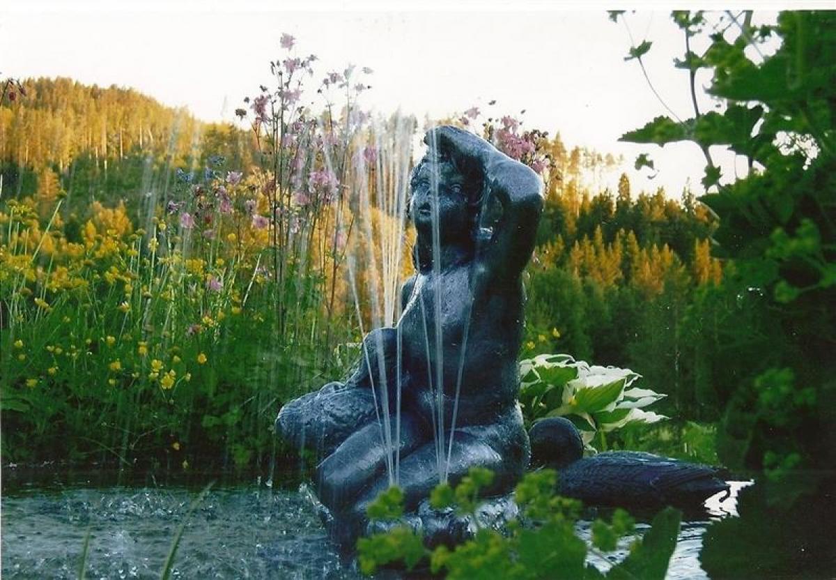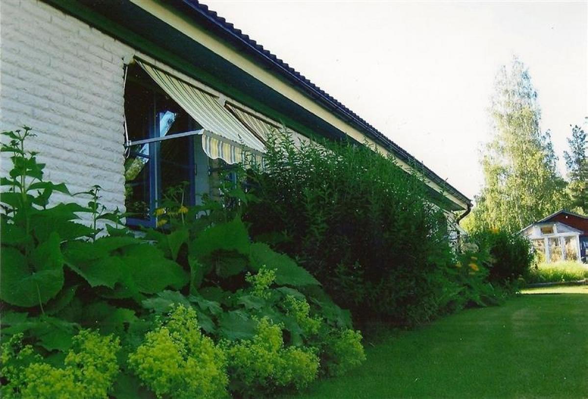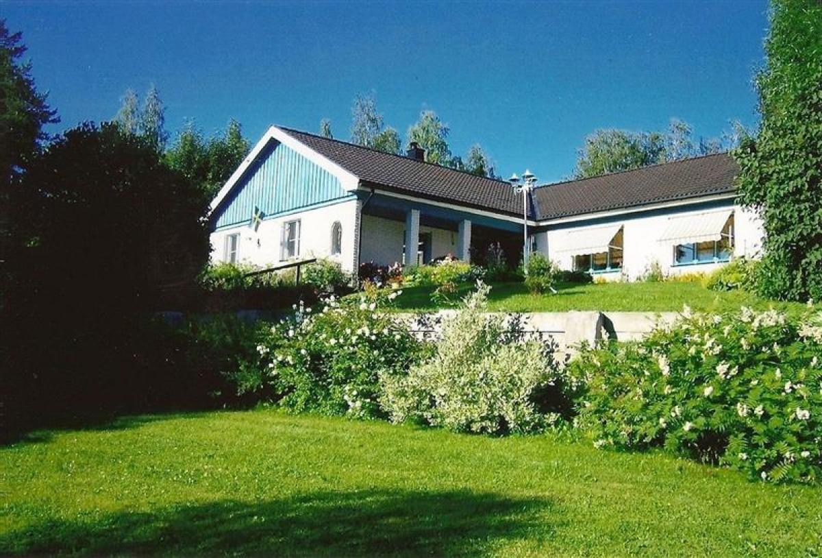 The surrounding land has lots of mature Gardens, flowers, trees, plants and beautiful green lawns, all located by a lake on a hill, aprox 200 metres from the lake with surrounding mountains. it's located in the beautiful Älvsby County, with its beautiful nature reserve and Storforsen waterfalls.