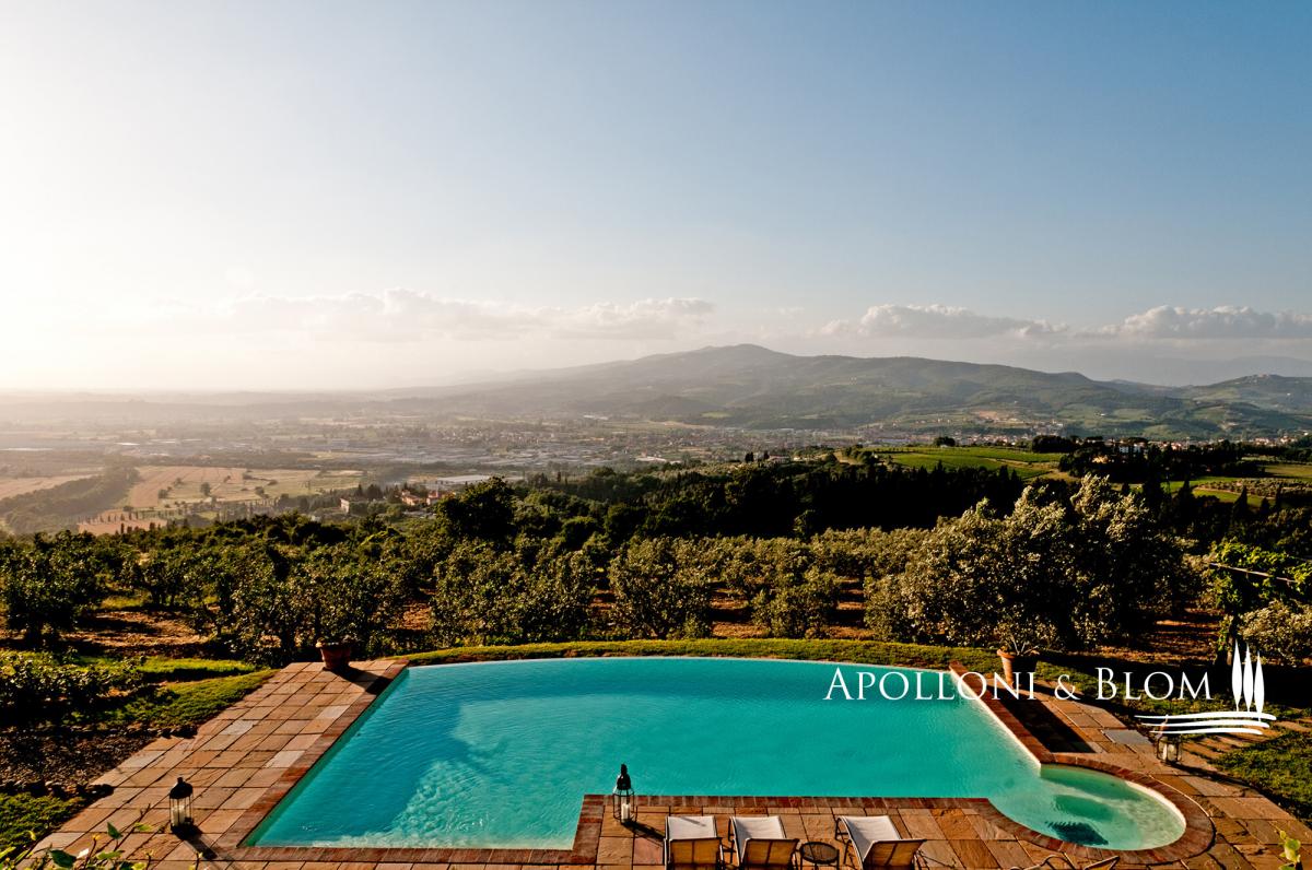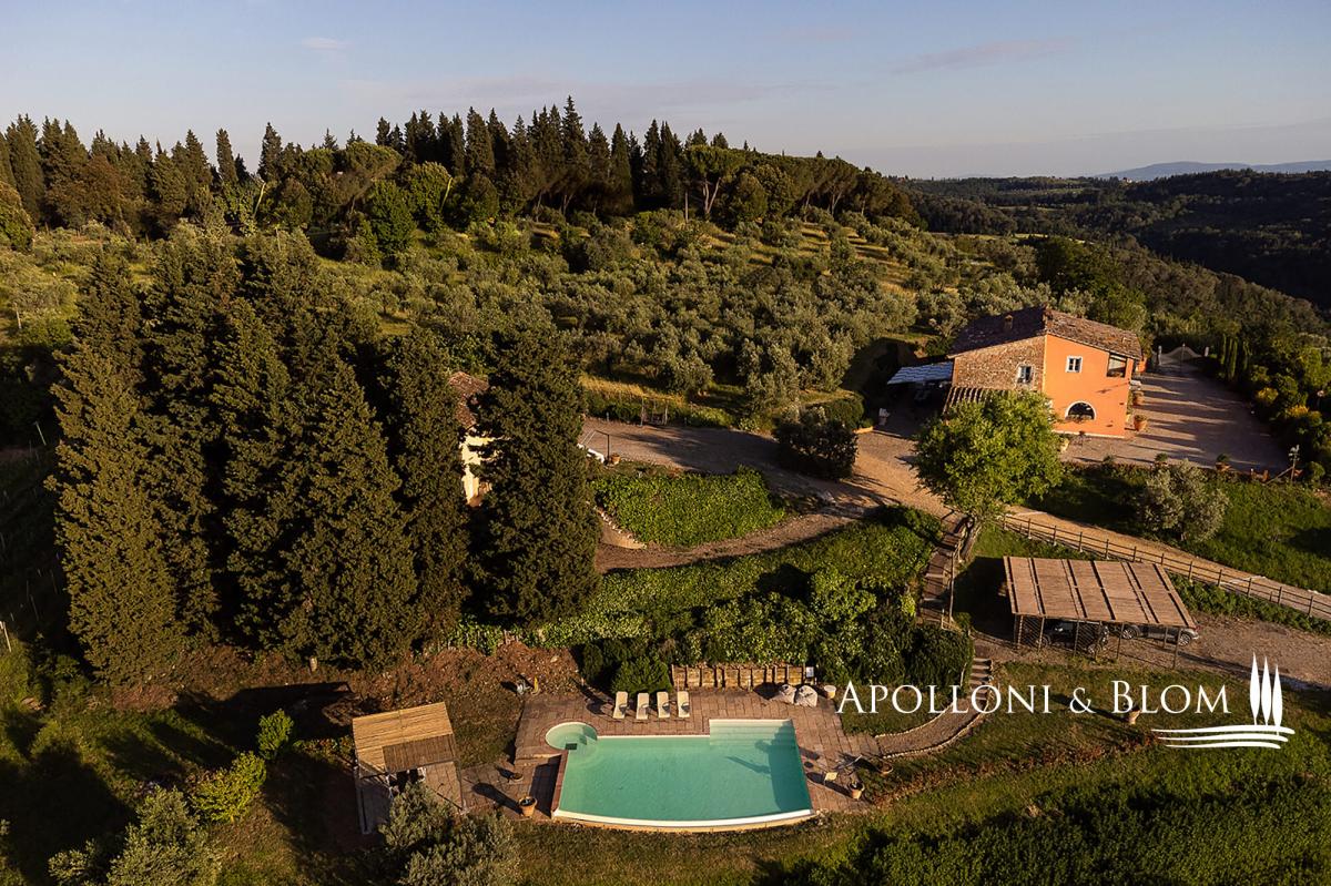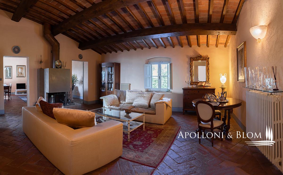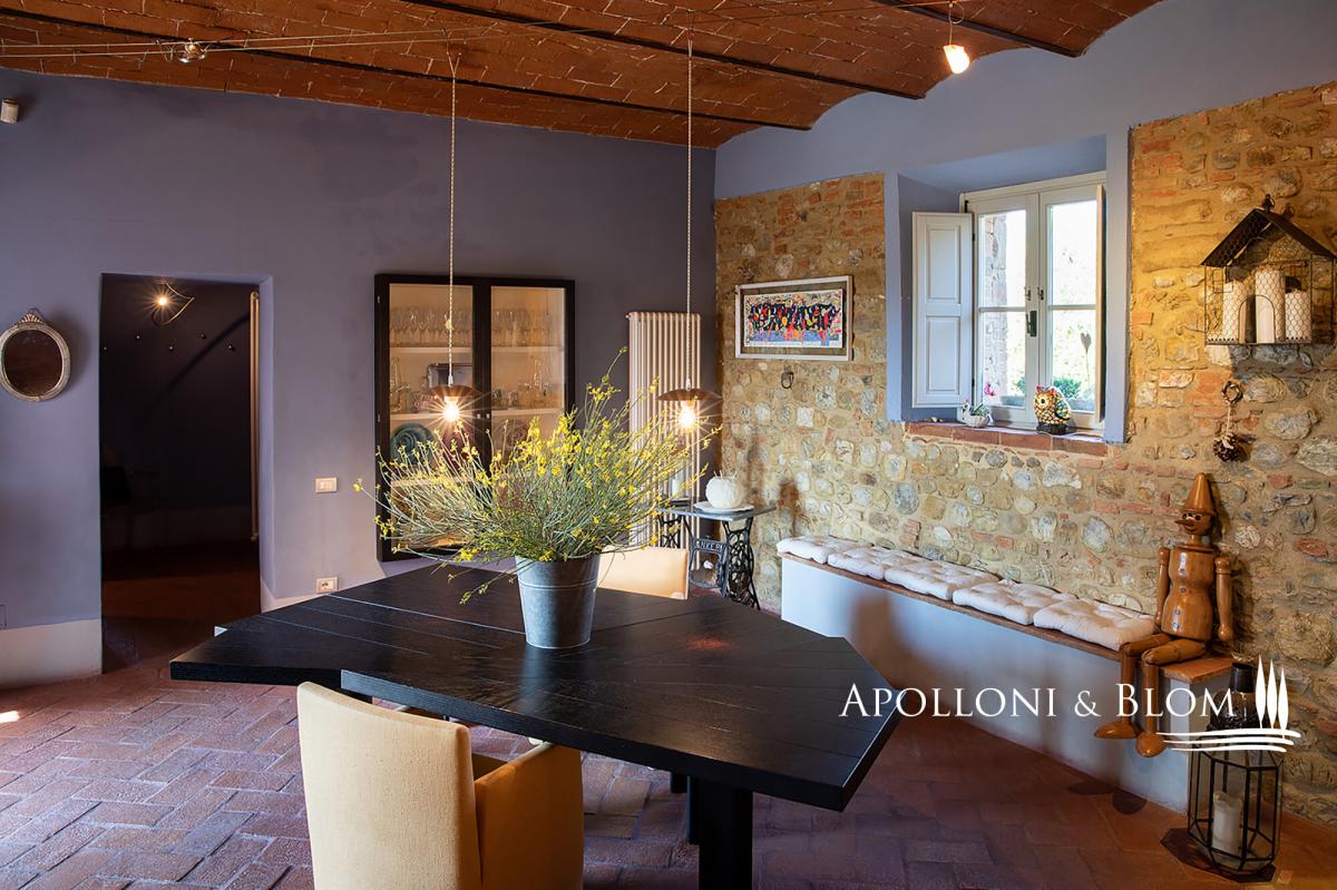 Prestigious villa with two swimming pools, guest house, panoramic garden and fine interiors for sale in Montelupo Fiorentino, near Florence. In the heart of Tuscany, among the enchanting hills of Montelupo Fiorentino, this extraordinary property embodies the most exclusive Tuscan lifestyle. A private oasis surrounded by peace and quiet, just a few kilometres from Florence, where contemporary design and rural charm blend in perfect harmony. With a total area of 743 square metres (7997 sq ft), the villa consists of two independent units, easily reconfigured into a single representative residence, and includes a splendid 100 square metres (1,076 sq ft) guest house, a panoramic garden of over 2,400 sqm/0.59 acres and two swimming pools overlooking the surrounding countryside. The interiors of the main residence offer bright and open environments, embellished with refined finishes and generous spaces: eight bedrooms, eight bathrooms, elegant living rooms, convivial dining rooms and fully equipped kitchens, ideal for a large family or to welcome guests in an exclusive context. The separate guest house, a tastefully restored former barn, preserves original details and features a cozy living area with fireplace, two double bedrooms with ensuite and a warm and authentic atmosphere. The perfectly manicured Mediterranean garden surrounds the property with corners of peace and privacy, while the two panoramic pools and large outdoor dining area offer ideal spaces for events, sunset dinners and moments of pure relaxation. The property is completed by a functional covered parking area and versatile outdoor environments, perfect for both residential and high-profile activities. An unrepeatable opportunity to live — or invest — in one of the most desired places in Tuscany, where comfort, authenticity and elegance meet. PROPERTY Ref: FIR3286 Location: Montelupo Fiorentino, Province: Florence, Region: Tuscany Type: 743 sqm/7997 sq ft historic villa with guest house, garden and 2 swimming pools Conditions: excellent – ready to live Garden: 2,450 sqm/0.59 acres of panoramic Mediterranean garden Terrace/Balcony: paved dining area Swimming Pool: 2 separate pools Parking/Garage: outdoor parking area, covered and uncovered, 40 sqm/430 sq ft covered Utilities: Fixed telephone network: available Internet: available Heating: methane Water: mains city supply Electricity: available Water waste: mains city connection Distance from services: approx. 2 km/1.2 miles, from the town Distance from main airports: Florence 30 km/18 miles, Pisa 65 km/40 miles- garden