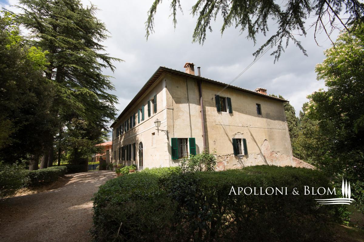 17th-century villa to be updated and tailored, two levels plus rustic basement cellar, with Italian-style garden, for sale in Montepulciano, Siena. A very short distance from the historical centre of Montepulciano, on a hilltop and surrounded by a park with Aleppo pines, holm oaks, cypresses, chestnuts and hedges creating an Italian-style garden. In the lawn areas, to the side and rear of the building, there are some olive trees, fruit trees and a romantic wood of centuries-old holm oaks. A project for the construction of an underground swimming pool, spa with sauna and jacuzzi has recently been approved. The villa was built in 1600 as the country residence of a noble Polizian family, features a rectangular shape, a pavilion roof covered in terracotta tiles, and façades plastered in a soft ochre colour. The two residential floors consist of a main residence with stunning reception rooms and a staff/guest house with separate access from the rear of the building. Renovated in the 1990s by the current owners, it retains valuable features and each room, elegant and full of charm, leads back to the old noble times. The ceilings boast exposed wooden beams, in particular six large beams carved with sober wavy lines and simple floral motifs that create a delicate decorative effect. The original basement cellars conserve important brick vaulted ceilings, terracotta flooring and tuff rooms. Perfect as a private villa, ideal as a historical holiday home to host travelers with great potential thanks to Montepulciano year-round tourism. PROPERTY Ref: MTP2661 Location: Montepulciano, Province: Siena, Region: Tuscany Type: 1150 sq m/ 12378 sq ft 17th-century noble villa featuring 275 sq m/ 2960 sq ft ancient basement cellars, an Italian-style garden and a building with garage Year of construction: 1600 Year of restoration: 1900 Conditions: good Garden: 8000 sq m/ 1.9 acres Italian-style garden Swimming pool: permit released for the construction of an in-ground pool,spa with sauna and jacuzzi Parking: 35 sq m/ 86 sq ft garage Utilities: Fixed telephone network: available Internet: available Heating: methane and LPG Water: mains city supply + 1 well for rainwater collection Electricity: available Distance from services: 500 meters Distance from main airports: Perugia 75 km, Florence 120 km, Rome 200 km Main Residence Ground floor: entrance hall, reception hall with fireplace, living room with fireplace, two rooms used as studies, 1 bedroom, 2 bathrooms, storage room First floor: hallway, kitchen, 5 rooms, 1 bathroom, 66.22 sq m/ 163 sq ft attic area Residence 2 Ground floor: living room, kitchen, 2 bedrooms, 2 bathrooms Basement: cellars- garden