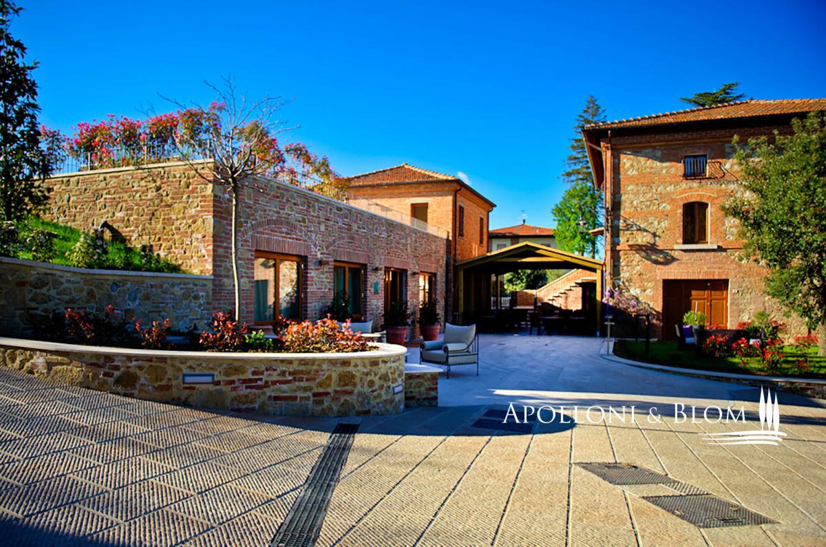 Elegant estate finely restored with spa, elevator, guest houses, three pools, solar energy, air conditioned for sale with views of Montepulciano. In the heart of the most authentic Tuscany, a few minutes from the historic centre of Montepulciano and in one of the most sought-after areas between Val di Chiana and Val d 'Orcia, is this splendid estate consisting of a nineteenth-century historic villa with a wellness centre and two renovated farmhouses. The complex is surrounded by a private park with centuries-old trees, Italian gardens and two swimming pools. The property, completely renovated in 2011, was born as a charming resort and covers over one and a half hectares of land with olive groves, well-kept gardens and large outdoor spaces. The main villa retains its period charm: parquet floors, ceilings with wooden beams, stone walls and long corridors leading to thirty rooms, all soundproofed and equipped with modern amenities. An underground tunnel connects the manor house to the wellness centre, developed in ancient, vaulted cellars now transformed into an exclusive environment with an indoor pool, osmotic salt bath, hydromassage, sauna, Turkish bath, salt cave, emotional showers, gym and relaxation areas. All this is supported by advanced technological systems and an underground technical centre. Adjacent to the villa, the two farmhouses – La Pergola and Il Granaio – have been finely renovated for tourist accommodation and house a total of twenty-three rooms with private bathrooms, independent apartments, equipped kitchens, living rooms, porches and terraces. Outside, a terraced garden opens onto a pool with an original shape, set among Mediterranean plants and private corners, ideal for relax. The location is strategic and easily accessible, a short walk from the centre of Montepulciano, with all services within walking distance. The entire estate is ready to be experienced or started as a high-level accommodation facility, thanks to its excellent state of maintenance, efficient plant engineering and the perfect integration of nature, architecture and hospitality. A unique opportunity for those looking for a representative residence, a consolidated tourist investment or a refined retreat in the heart of Tuscany. PROPERTY Ref: MTP2779 Location: Montepulciano, Province: Siena, Region: Tuscany Type: historic villa with spa and outbuilding for over 3,200 sq m/34767 sq ft covered, 53 bedrooms, park and 2 swimming pools. The complex consists of: 1800's villa of 1,150 sq m/12378 sq ft + wellness center of 1,230 sq m/13239,61 sq ft, complete with indoor pool, equipped gym, relaxation area, massage rooms and conference room + the former caretaker house of 620 sq m/6673,62 sq ft + underground tunnel of 230 sq m/2475 sq ft that comfortably connects the main buildings + 2 separate country houses of 740 sq m/7965,29sq ft + 420 sq m/4520,84sq ft serviced by a panoramic swimming pool Year of construction: 1800 Year of restoration: 2011 Land/Garden: about 2.8 ha of park with centuries-old trees, secret garden designed in nineteenth-century style, olive grove Swimming Pool: L-shaped outdoor pool of about 160 sq m/1722,23sq ft (about 7x18), with a maximum depth of 140 cm, built on a terrace near the wellness centre with Roman staircase, 1 indoor pool of 3.3 x13 m. Parking/Garage: uncovered parking Utilities: Fixed telephone network: available; Internet: available; Heating: methane; Water: municipal water network + drinking water source; Electricity: active Plant with solar panels with underground technical room, Air conditioning The property is owned by a private individual. The location, for privacy, is approximate. Please note all measurements cited are approximate Energy Efficiency Rating: D Distance from services: downtown Distance from main airports: Perugia 72km/44 miles, Florence 122km/75 miles, Rome 210km/130 miles The main villa (approx. 1,150 sqm) is arranged over five levels, all connected by an internal staircase and lift, and features 22 en-suite bedrooms. The lower floors host technical rooms, changing areas, and storage. A newly built underground passageway (230 sqm) connects the villa with the wellness centre and adjacent structures. The former caretaker’s house (approx. 620 sqm) has been converted into a restaurant and guest accommodation. It includes a 170 sqm dining hall with professional kitchen and facilities, as well as 8 en-suite bedrooms across the upper floors. The building is also linked to the main villa via a tunnel. The wellness centre (approx. 1,230 sqm), spread over three levels, blends modern design with original features, such as a vaulted brick cellar. On the ground floor: a 210 sqm pool area, sauna, Turkish bath, salt grotto, hydromassage pools, Kneipp path, treatment rooms, and relaxation zones. The lower levels include a reception hall, spa suites, conference room, bar, laundry, staff facilities, and various technical areas. A 40 sqm gym with pitched roof and exposed beams completes the wellness offering. La Pergola (approx. 740 sqm), a restored farmhouse within the park, offers independent rooms and apartments, charming porticos, a pool, and underground technical rooms. It includes 7 bedrooms and 10 bathrooms. Il Granaio (approx. 420 sqm) is arranged over four floors and comprises 16 en-suite rooms, suites with private living areas, garden-access rooms, and two storage outbuildings.- terrace