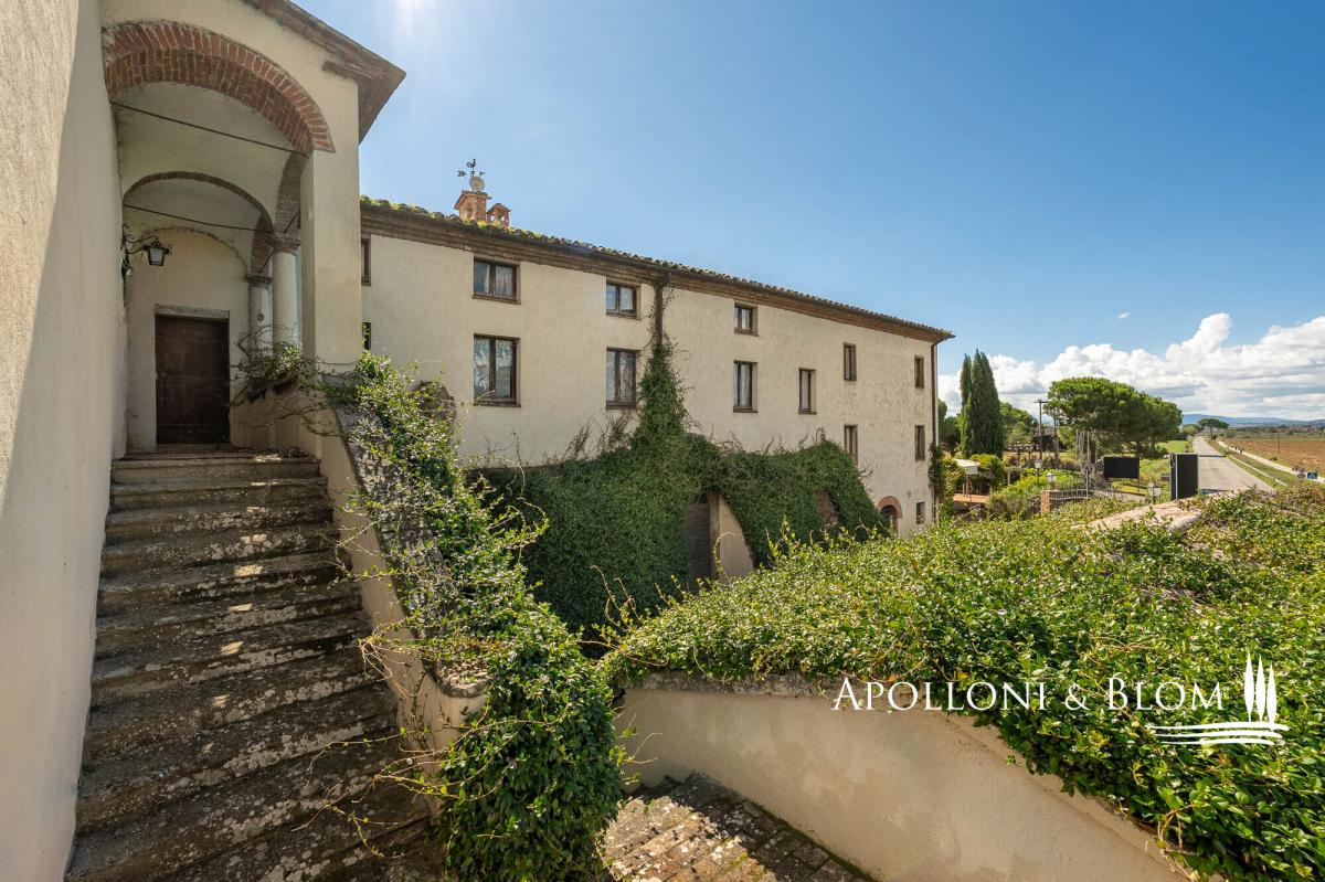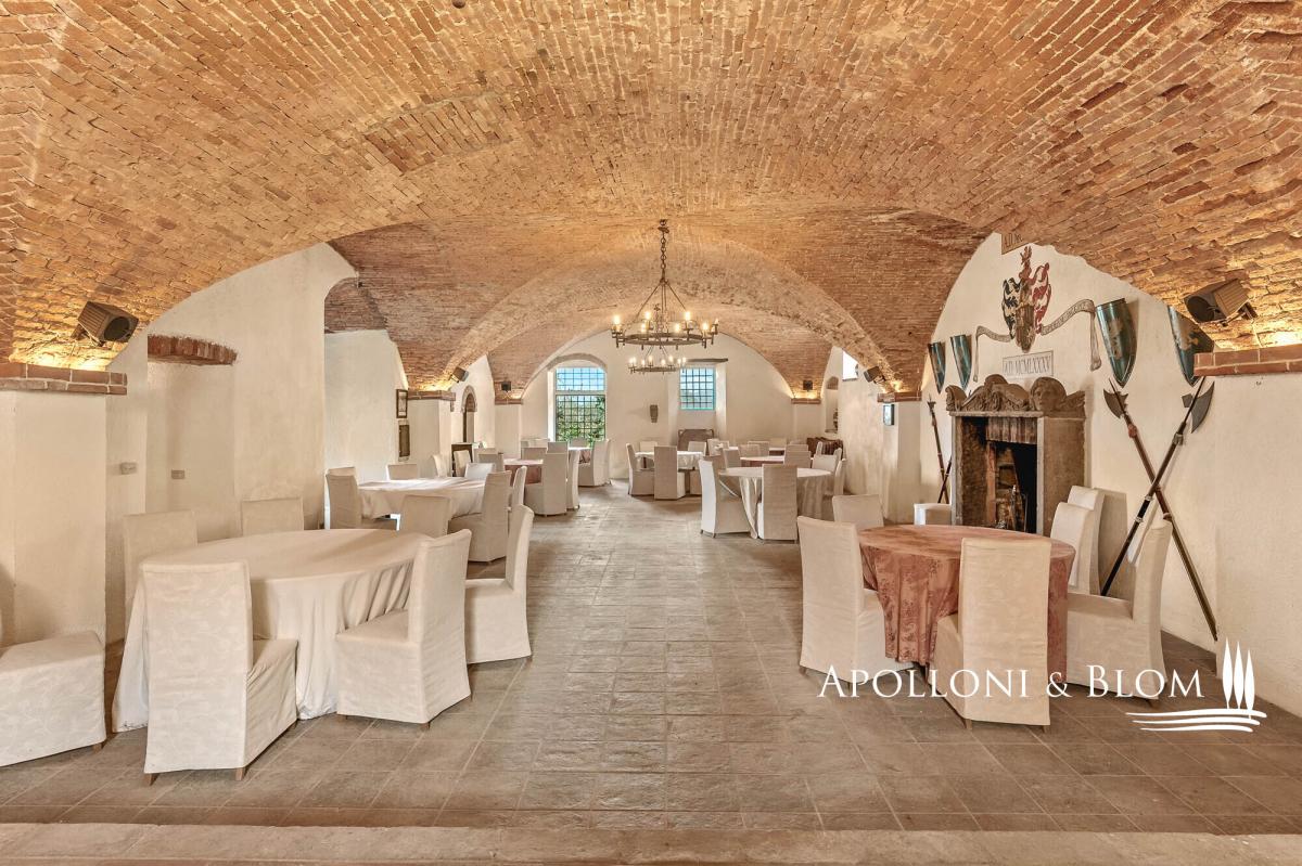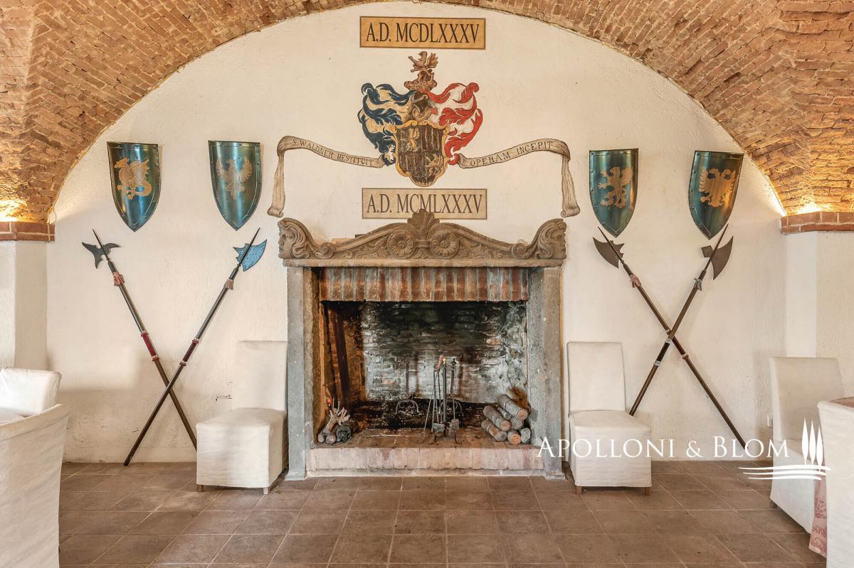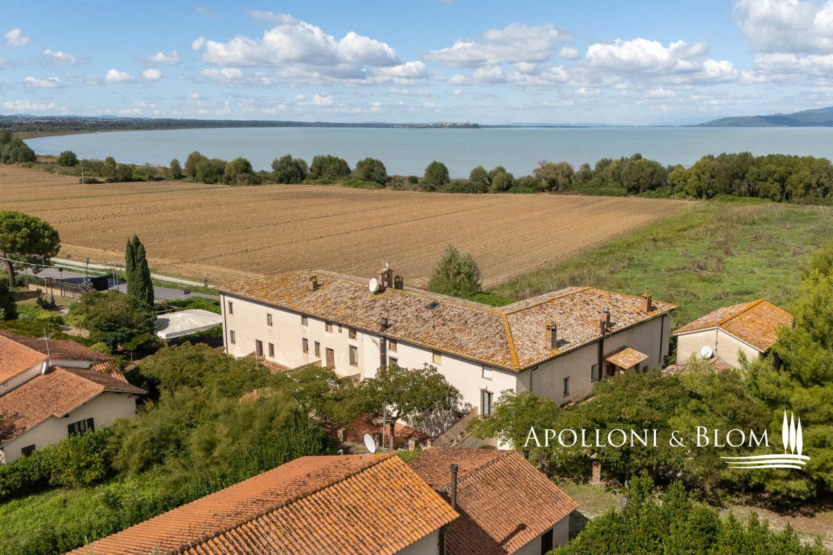Lake-front 15th-century complex with scenic palace and country borgo, with a total of 25 apartments, and a designer pool for sale in Panicale. Set in an area of remarkable natural beauty on the shores of Lake Trasimeno, this distinguished estate is a rare example of historical architecture, featuring the only Renaissance palazzo directly overlooking the lake, originally commissioned by Pope Gregory XIII, included in the famed Galleria delle Carte Geografiche at the Vatican. The palazzo still bears the noble coat of arms of the family who resided here for centuries. Surrounded by ancient olive groves, the estate comprises over 3,000 square meters of marvellous living areas nestled within 4.4 hectares of land, half of which enjoys direct frontage onto the lake and connects seamlessly with the renowned Trasimeno cycle path. At the heart of the estate lies a majestic 15th-century palazzo, formerly owned by the historic Baglioni family, extending over four floors and approximately 2,100 sq m. The interiors feature original frescoes, vaulted ceilings, and timeless architectural details. A portion of the building — around 800 sq m — is ready for completion, with an approved project for a luxury spa and elegant guest suites. The grand halls on the ground floor, with their vaulted ceilings and generous volumes, can accommodate up to 300 seated guests, suited for hosting exclusive events. Surrounding the main palazzo is a restored rustic hamlet, consisting of four buildings totalling approx. 1,050 sqm, thoughtfully converted into 22 holiday apartments, offering 29 bedrooms and accommodation for up to 70 guests. This configuration provides an already established, high-end hospitality business with substantial potential for further development. The design swimming pool is a standout feature, created by the set designer of the Festival dei Due Mondi in Spoleto. Built into the rock, it boasts an infinity edge, waterfall, hydromassage area, and a cave bar, all framed by dramatic natural surroundings and lake views. The estate’s grounds include manicured gardens, ancient olive groves, ample parking, and an approved project for additional sports facilities, including a multi-purpose court, outdoor fitness trail, and bocce court. The catering and restaurant area is designed to accommodate both indoor and outdoor service. It includes two professional kitchens: one internal, equipped with walk-in refrigeration and service rooms, and one external with a wood-fired oven and wine bar, ideal for lakeside banquets and al fresco entertaining. Located within the municipality of Panicale, listed among the Most Beautiful Villages in Italy, and boasting an exclusive position with direct lake frontage, this remarkable estate offers a unique investment opportunity, an extraordinary canvas on which to create a world-class destination in the true heart of Central Italy. PROPERTY Ref.: PAN3155 Location: Panicale, Province of Perugia, Region: Umbria – Lake Trasimeno Type: on a private park of 4.4 hectares/10.87 acres, lake-view estete featuring a 2,100 square meters/22,604 sq ft Renaissance building on four levels, a scenographic stone swimming pool with waterfall, a 22 holiday flats within a tourist-accommodation complex with 4 buildings for a total of 1,050 square meters/11,302 sq ft and 30 bedrooms Annexes: 4 renovated buildings (1,050 square meters/11,302 sq ft), organized into 22 apartments: 7 three-room apartments, 13 two-room apartments, 2 studios (70 beds), outdoor kitchen, storage room Year of construction: 1400 Year of restoration: started in the1990s, ongoing Conditions: good Land/garden: 4.4 hectares/10 acres (half lakefront), fenced garden, parking, project for sporf Parking: outdoor parking facility Utilities: Fixed telephone network: available Internet: available Heating: 3 LPG 3.000-liter tanks Water: 3 wells + 1 cistern Electricity: available; Water waste: Imhoff tank Distance from services: 500 mt Distance from main airports: Perugia 37 km Layout: 1. Renaissance palace: Basement: kitchen, washing room, changing rooms and bathrooms dedicated to staff Ground Floor: reception hall, bar, restaurant rooms First Floor: foyer, 2 one-bedroom apartments, 1 one-bedroom apartment plus a portion of the floor to be renovated/converted Second Floor: 800 sqm/8,611 sq ft sq ft gross to be completed (project for SPA or apartments) 2. "Alzata" Building: Ground Floor: 2 one-bedroom apartments; First Floor: 1 studio flat with terrace and pine forest view + 1 attic studio flat 3. "Bellavista" Building: Ground Floor: 2 one-bedroom apartments + 2 one-bedroom apartments overlooking a panoramic porch 4. "Canova" building, near the entrance: 1 one-bedroom apartment with well; Ground floor: 2 one-bedroom apartments with porch and garden; First Floor: 2 one-bedroom apartments with loggia, terrace and lake view 5. "Dimora" Building: Ground Floor: 2 one-bedroom apartments; First Floor: 2 one-bedroom apartments (one with terrace overlooking the lake); Second Floor: 1 one-bedroom apartment with lake view- garden
