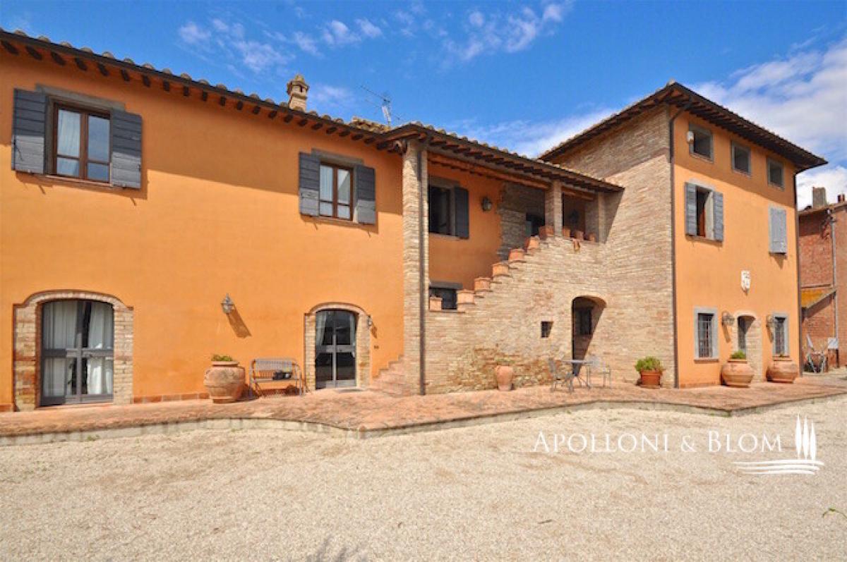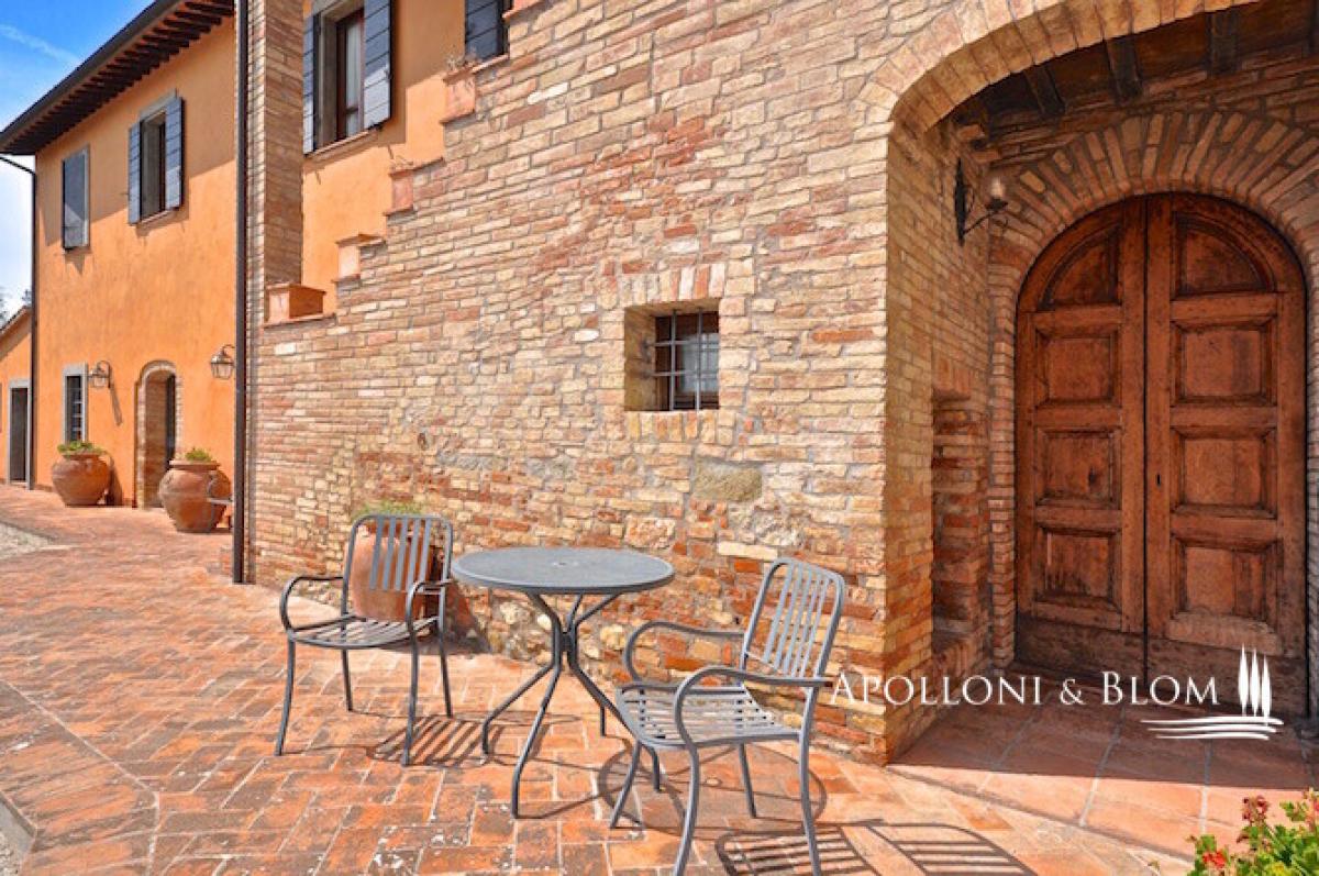 Prestigious country residence with pool, guest house and annexes for sale in the countryside near Perugia and Lake Trasimeno. Surrounded by rows of vineyards and centuries-old olive trees, in a hillside position, with views of Deruta and Assisi, 1800s villa, a marvelous blend of aristocratic style, with plastered facades and serene stone elements, and a rustic character typical of Umbrian country residences with large brick arches connecting the various living areas, wood and vaulted ceilings, brick and stone walls, wood-burning fireplaces and terracotta floors. The driveway and the park are bordered with mature trees, the garden is landscaped with lawn and ornamental plants, and houses a panoramic swimming pool with a circular-shaped Jacuzzi boasting a central jet fountain. Villa De' Cavalieri has been tastefully restored, every corner preserves its ancient charm, every window frames an enchanting landscape, fitted with modern comforts, and close to all services. The ground floor welcomes into a main reception room with a fireplace and an elegant dining area, a second living room houses a central brick fireplace for use as a grill and for cooking traditional Umbrian recipes along with a masonry kitchen fitted with all appliances. A study, a bedroom and a bathroom complete the floor. The first-floor living room connects to the three bedrooms, to a kitchen, and outdoors with a loggia that allows easily a separation to split the property. The master bedroom is very spacious with double windows and a fireplace, a walk-in closet and a retro-style bathroom with double sinks and a freestanding tub. On the attic floor two more rooms for guest use. In the park, one of the outbuildings has already been converted into a guest apartment, while other outbuildings can be transformed and expanded for further residential use. Villa De' Cavalieri is a ready-to-move-in charming mansion to live with family and friends and to host tourists for their vacations, allowing further expansions of both existing buildings and additional building land available under separate negotiation (please contact the agency for further details). PROPERTY Ref: PER1274 Location: Perugia, Province: Perugia, Region: Umbria Type: 643 sq m/6921 sq ft historical mansion with a three-story villa restored with 6 bedrooms, guest cottage, old oven and cellar, swimming pool and park, outbuildings to be converted and expanded, building land to be purchased separately Annexes: 64 sq m/ 688 sq ft guest cottage on one level, 55 sq m/592 sq ft building with cellar and garage and also used as changing room/pool house, 74 sq m/796 sq ft former stables to be converted (with the possibility of extension of additional 100 sq m/1076 sq ft approx.) Year of construction: 1800 Year of renovation: 1998 Condition: excellent villa and cottage - annexes to be restored and transformed Utilities: Fixed telephone network: available Internet: available Heating: LPG, pellets stove, fireplaces Water: mains city supply Electricity: available Building extension allowed for approx. 100 sq m/1076 sq ft + 200 sq m/2152 sq ft paved court/panoramic terrace + 80 sq m/861 sq ft loggia-to-terrace conversion The property is owned by a private individual The location, for privacy, is approximate Please note all measurements cited are approximate Energy Efficiency Rating: G Distance from amenities: 500 m. Distance from main airports: Perugia 16 km,Ancona 125km, Florence 170km, Rome 210km Garden: 7200 sq m/1.77 acres fully fenced, electric gate and private driveway - 3 additional building plots available, to be purchased separately Details on additional building land: approx. 7,700 sq m/1.9 acres in total made of 3 plots where it is possible to build 3 single-family/detached house buildings each with a residential area of approx. 140 sq m/1506 plus basement, with private garden/court on four sides Terrace/Balcony: loggia on the first floor – extension permit available for a 80 sq m/861 sq ft terrace with a portico on the ground floor Swimming pool: panoramic in-ground pool with 6-seat round shape Jacuzzi with central fountain jet, terracotta paved sundeck Layout: Ground floor: living room with fireplace and diner, kitchen with dining and fireplace, study, 1 bedroom, 1 bathroom; with separate entrance from the garden 1 room for laundry and storage use First Floor: stairwell and hallway, living room with second access from an external staircase, kitchen with staircase to the second floor, study, 1 master bedroom with walk-in closet and ensuite bathroom, 2 bedrooms, 1 family bathroom Second Floor: attic with 2 single bedrooms- terrace