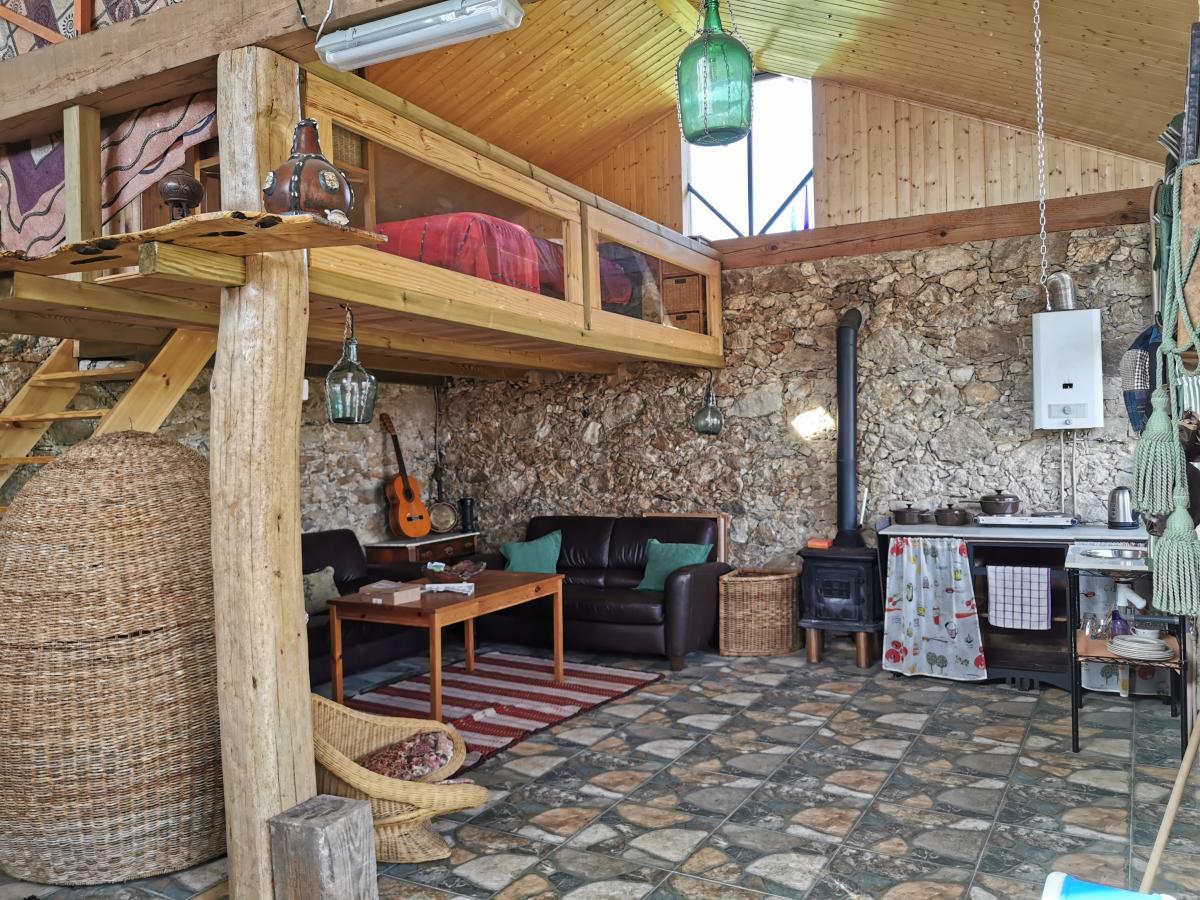 2. A beautifully arranged studio apartment , with mezzanine bedroom and spacious rustic open plan accommodation, including shower, bathroom, kitchenette and comfortable lounge area.