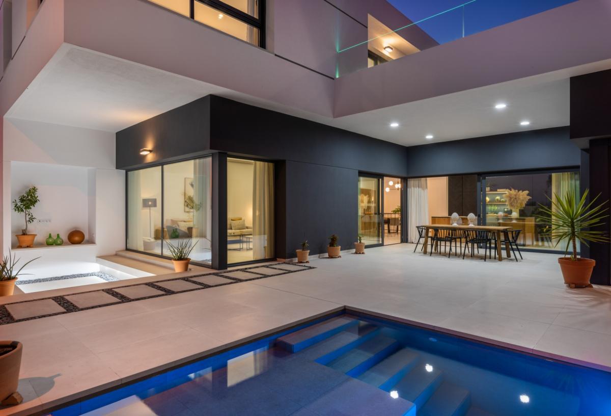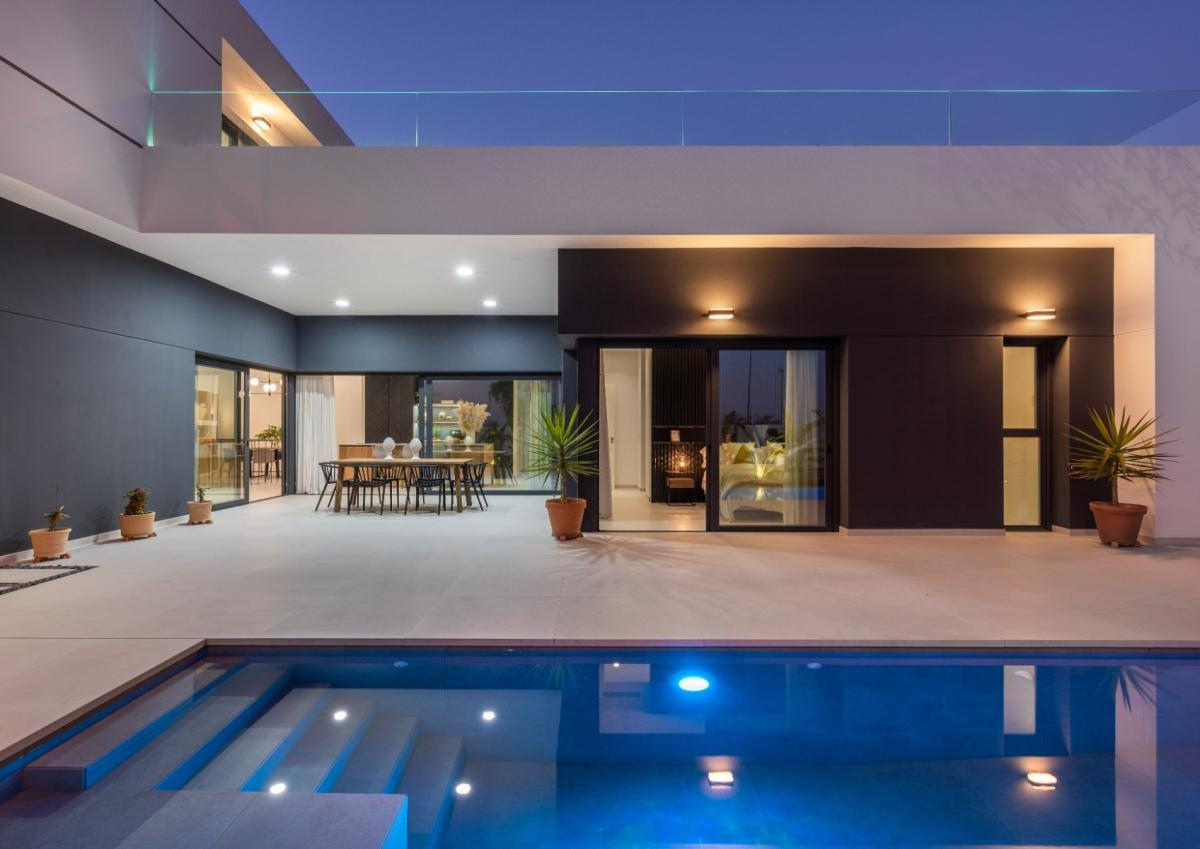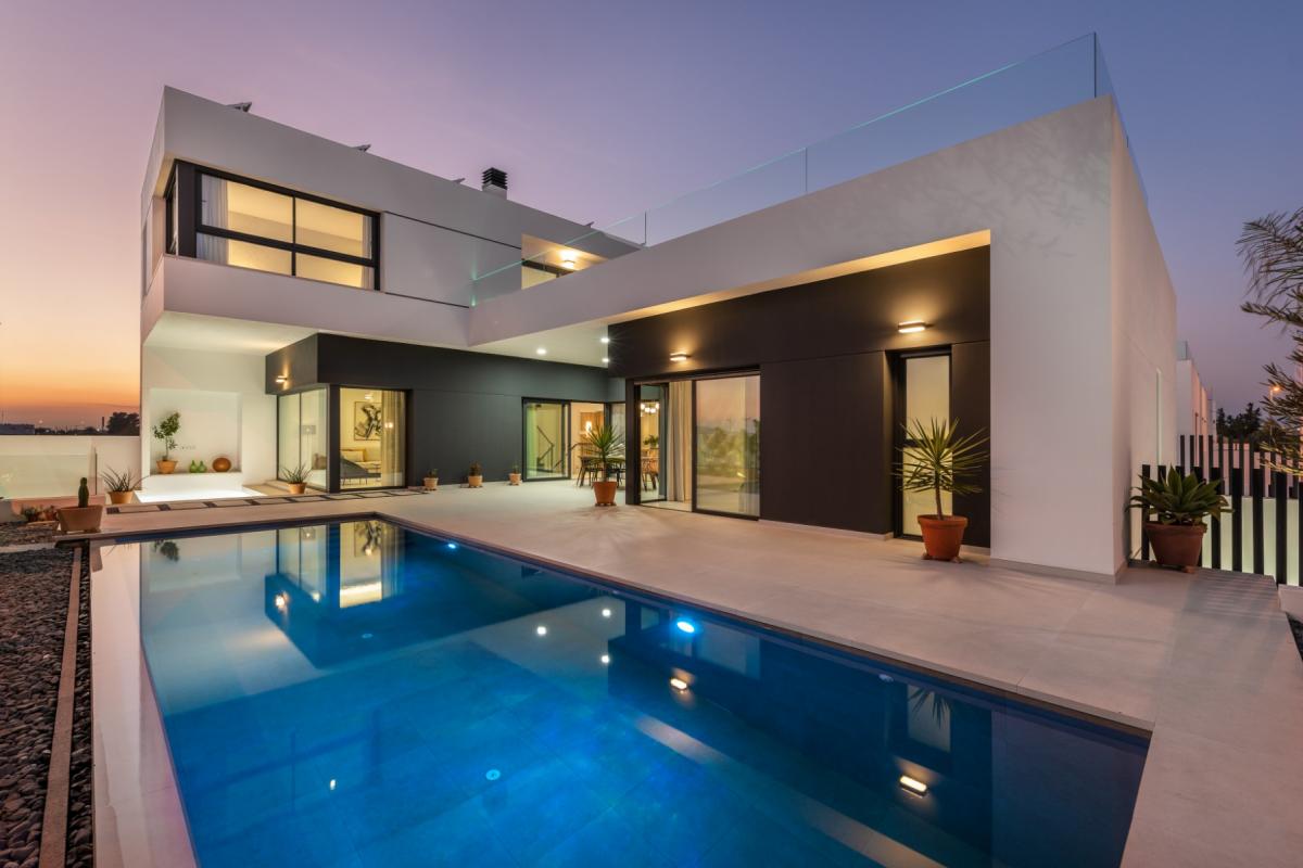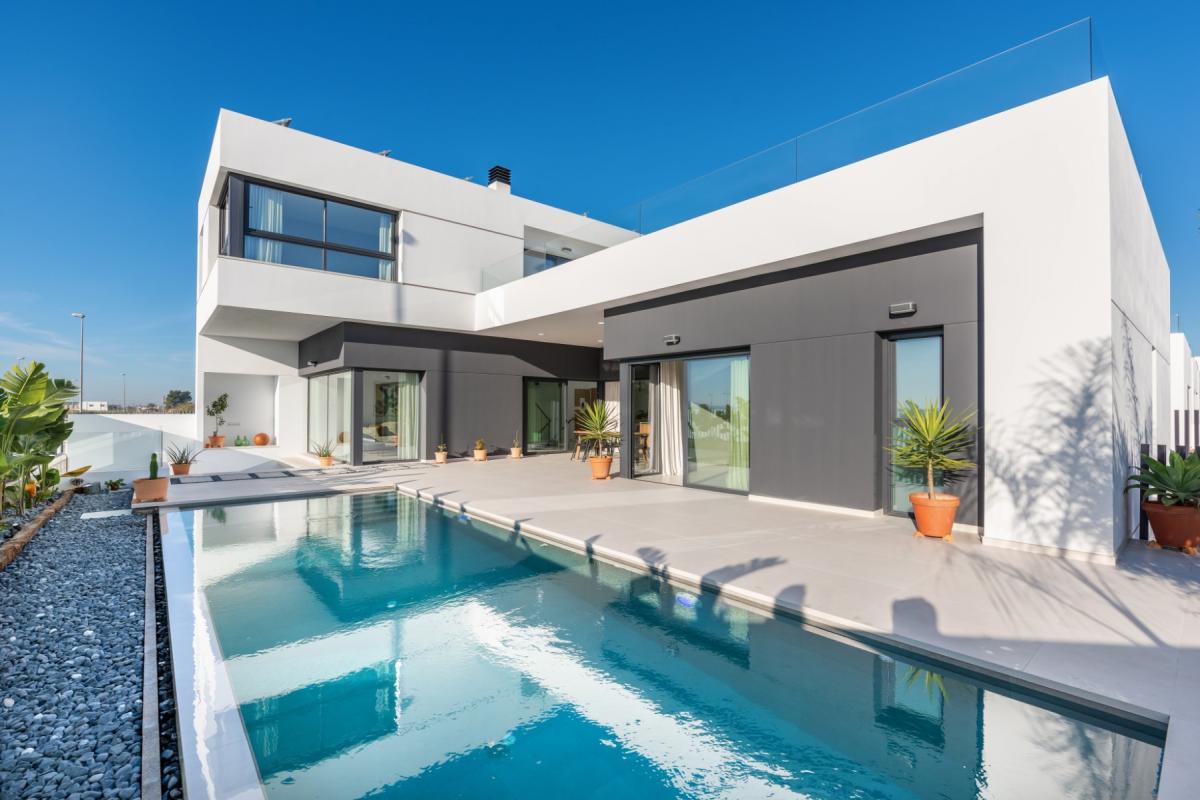 Superb luxury villas, with 4 bedrooms and 4 bathrooms, with private swimming pool, parking for 2 cars and large terrace just 5 minutes from the beaches of Guardarmar and 1 minute from commercial premises.Detached villas with plots of up to 350 m2, a total built area of up to 330 m2 and infinity pools of 8,50 x3 m.35 minutes from Alicante Airport!