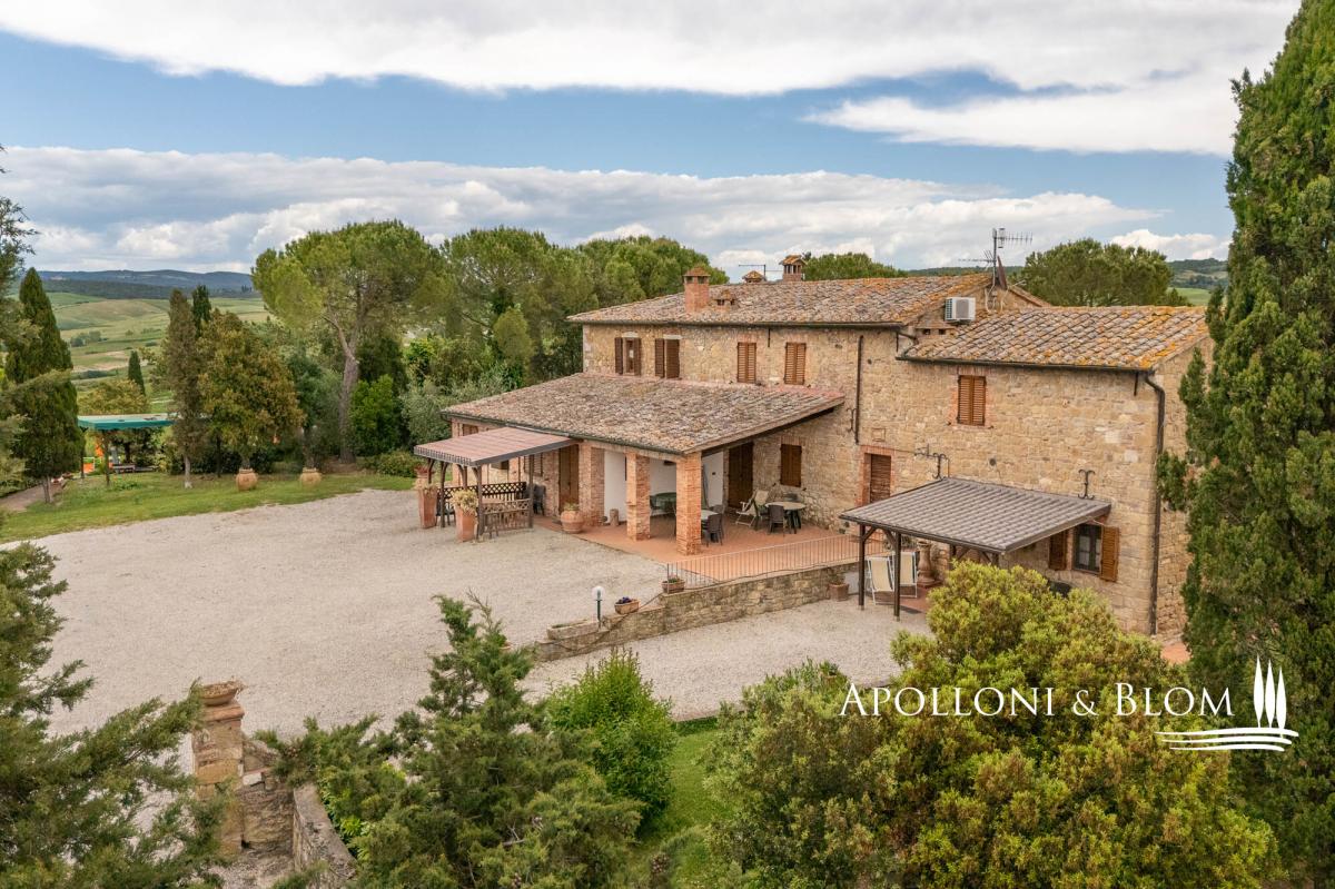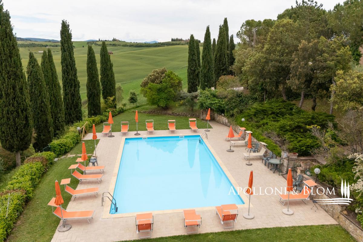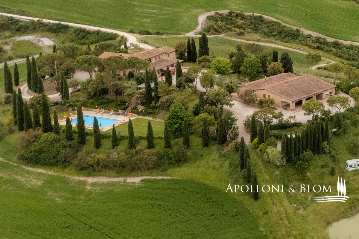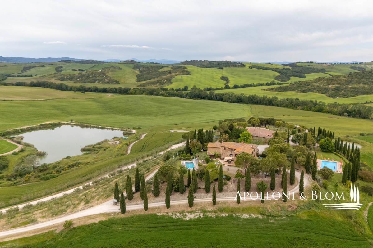 Exclusive sale: within an historic farm, open views, two-story house with portico, pool, and 50 hectares of land for sale in San Quirico d'Orcia. Commanding an enviable position on a gentle hill between Pienza and San Quirico d'Orcia—arguably two of Tuscany’s most celebrated jewels—this distinguished 15th-century stone residence embodies the timeless elegance of the Val d'Orcia landscape. Surrounded by 50 hectares of private arable land and set within an ancient hamlet of three traditional farmhouses, the property presents a rare opportunity to acquire not only a fully restored estate but, if desired, the entire borgo, with an additional 100 hectares available by separate negotiation (more details on request). The main residence spans approximately 600 square metres over two floors and has been sensitively restored to preserve its historic character, while meeting the expectations of refined modern living. Currently arranged as seven self-contained holiday apartments and an eighth unit used as all-year-round home by the actual owner, the interiors radiate Tuscan charm—exposed chestnut beams, hand-made terracotta floors, and original stone fireplaces, all harmoniously combined with air conditioning and contemporary finishes. The stone façade opens onto a manicured garden with a swimming pool and bocce court, offering panoramic views that sweep across the rolling hills and cypress-lined ridges of the Val d'Orcia—a UNESCO World Heritage Site. Each apartment enjoys its own private outdoor area—terraces, patios, or garden spaces—perfect for al fresco dining or quiet relaxation. The ground floor hosts four apartments, including a two-bedroom, two-bathroom unit with a generous kitchen and furnished patio. Three additional apartments each offer a cosy living room with kitchenette, double bedroom, and bathroom. This level also includes four en-suite guest rooms, a welcoming breakfast area, a charming reception space, the private owner’s apartment, and a covered portico ideal for entertaining or lounging. The first floor comprises two one-bedroom units and a two en-suite bedroom- apartment featuring a panoramic terrace for exclusive enjoyment. Access is via a well-maintained country lane, partially shared with only one neighbouring residence, ensuring privacy without isolation. Crucially, the remaining two stone villas of the hamlet can be purchased, allowing for the creation of a prestigious private estate or luxury hospitality project with over 150 hectares of land in total—an exceedingly rare offering in this most iconic of Tuscan settings. Whether envisioned as a boutique retreat, a private family compound, or a strategic investment in the high-end tourism market, this property represents an extraordinary blend of history, beauty, and opportunity. PROPERTY Ref: VAL3246 Location: San Quirico d'Orcia, Province: Siena, Region: Tuscany Type: 600 sqm/6,458 sq ft 15th century stone country house used as agritourism with swimming pool and 50 ha/123 acres of land Year of construction: 1450 Year of renovation: 1998 Conditions: excellent Land/Garden: 50 ha/123 acres of arable land + 614 sqm/0.15 acres of exclusive garden fenced on the pool side Terrace/Balcony: terraces and/or patios for each apartment Swimming Pool: 7x14 m, sundeck and panoramic view Parking/Garage: outdoor parking Utilities: Fixed telephone network: active; Internet: active; Heating: LPG; Water: mains city supply + rainwater collection well + 1.47 ha/3,6 acres lake for irrigation use; Electricity: available; Water waste: Imhoff tank Distance from services: approx. 5-10 minutes from San Quirico d 'Orcia and Pienza Distance from main airports: Perugia 85 km/52 miles, Florence 120 km/74 miles, Pisa 165 km/102 miles, Rome Fiumicino 190 km/118 miles Gravel Road: approx. 700 metres/2,296 ft (partially shared) Layout: Ground floor: 4 apartments (3 two-room apartments with living room/kitchenette + double bedroom + bathroom; 1 three-room apartment with kitchen, patio, 2 double bedrooms with en-suite bathroom); 4 bedrooms with en-suite bathroom; reception, breakfast room; owners' apartment; porch with table tennis and table football First floor: 3 apartments (2 two-room apartments as above; 1 with living room-kitchen, panoramic terrace and 2 double bedrooms with private bathroom)- garden