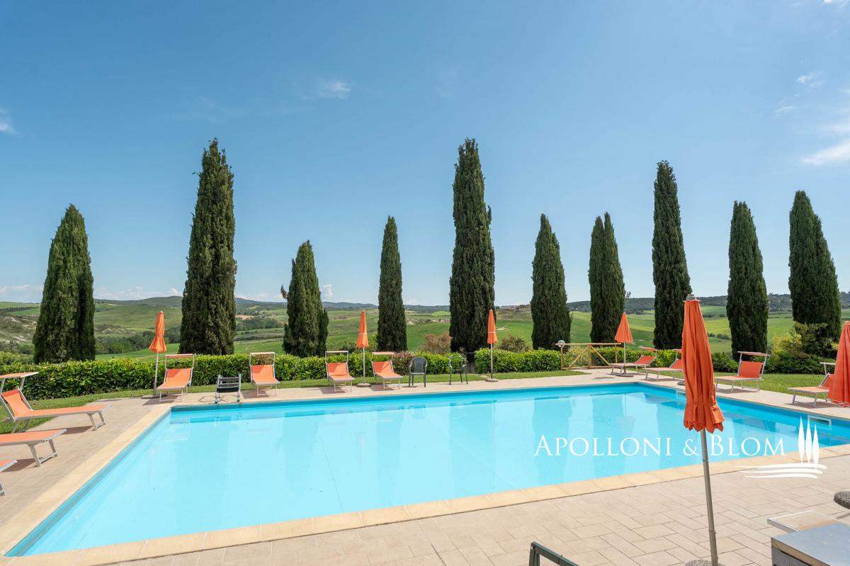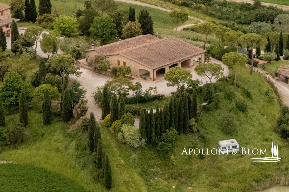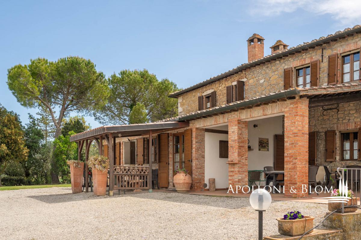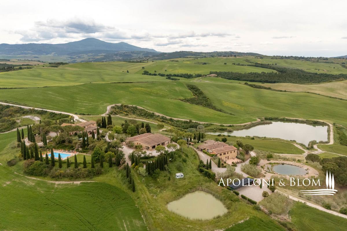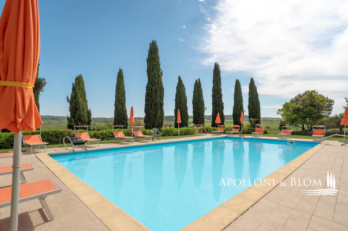 Exclusive sale: within an historic farm, open views, two-story house with portico, pool, and 50 hectares of land for sale in San Quirico d'Orcia. Commanding an enviable position on a gentle hill between Pienza and San Quirico d'Orcia—arguably two of Tuscany’s most celebrated jewels—this distinguished 15th-century stone residence embodies the timeless elegance of the Val d'Orcia landscape. Surrounded by 50 hectares of private arable land and set within an ancient hamlet of three traditional farmhouses, the property presents a rare opportunity to acquire not only a fully restored estate but, if desired, the entire borgo, with an additional 100 hectares available by separate negotiation (more details on request). The main residence spans approximately 600 square metres over two floors and has been sensitively restored to preserve its historic character, while meeting the expectations of refined modern living. Currently arranged as seven self-contained holiday apartments and an eighth unit used as all-year-round home by the actual owner, the interiors radiate Tuscan charm—exposed chestnut beams, hand-made terracotta floors, and original stone fireplaces, all harmoniously combined with air conditioning and contemporary finishes. The stone façade opens onto a manicured garden with a swimming pool and bocce court, offering panoramic views that sweep across the rolling hills and cypress-lined ridges of the Val d'Orcia—a UNESCO World Heritage Site. Each apartment enjoys its own private outdoor area—terraces, patios, or garden spaces—perfect for al fresco dining or quiet relaxation. The ground floor hosts four apartments, including a two-bedroom, two-bathroom unit with a generous kitchen and furnished patio. Three additional apartments each offer a cosy living room with kitchenette, double bedroom, and bathroom. This level also includes four en-suite guest rooms, a welcoming breakfast area, a charming reception space, the private owner’s apartment, and a covered portico ideal for entertaining or lounging. The first floor comprises two one-bedroom units and a two en-suite bedroom- apartment featuring a panoramic terrace for exclusive enjoyment. Access is via a well-maintained country lane, partially shared with only one neighbouring residence, ensuring privacy without isolation. Crucially, the remaining two stone villas of the hamlet can be purchased, allowing for the creation of a prestigious private estate or luxury hospitality project with over 150 hectares of land in total—an exceedingly rare offering in this most iconic of Tuscan settings. Whether envisioned as a boutique retreat, a private family compound, or a strategic investment in the high-end tourism market, this property represents an extraordinary blend of history, beauty, and opportunity. PROPERTY Ref: VAL3246 Location: San Quirico d'Orcia, Province: Siena, Region: Tuscany Type: 600 sqm/6,458 sq ft 15th century stone country house used as agritourism with swimming pool and 50 ha/123 acres of land Year of construction: 1450 Year of renovation: 1998 Conditions: excellent Land/Garden: 50 ha/123 acres of arable land + 614 sqm/0.15 acres of exclusive garden fenced on the pool side Terrace/Balcony: terraces and/or patios for each apartment Swimming Pool: 7x14 m, sundeck and panoramic view Parking/Garage: outdoor parking Utilities: Fixed telephone network: active; Internet: active; Heating: LPG; Water: mains city supply + rainwater collection well + 1.47 ha/3,6 acres lake for irrigation use; Electricity: available; Water waste: Imhoff tank Distance from services: approx. 5-10 minutes from San Quirico d 'Orcia and Pienza Distance from main airports: Perugia 85 km/52 miles, Florence 120 km/74 miles, Pisa 165 km/102 miles, Rome Fiumicino 190 km/118 miles Gravel Road: approx. 700 metres/2,296 ft (partially shared) Layout: Ground floor: 4 apartments (3 two-room apartments with living room/kitchenette + double bedroom + bathroom; 1 three-room apartment with kitchen, patio, 2 double bedrooms with en-suite bathroom); 4 bedrooms with en-suite bathroom; reception, breakfast room; owners' apartment; porch with table tennis and table football First floor: 3 apartments (2 two-room apartments as above; 1 with living room-kitchen, panoramic terrace and 2 double bedrooms with private bathroom)- garden