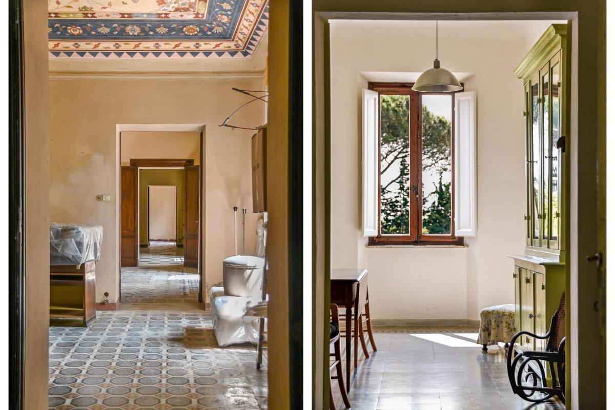 Authentic estate with private chapel, cellars, centuries-old park, olive grove, Merlot vineyards for sale with a spectacular view of Siena and the Tower of Mangia. On the gentle outskirts of Siena, commanding sweeping views across the undulating Tuscan hills, lies Villa Casin de’ Nobili, an aristocratic estate steeped in history and elegance. Originally erected in the 17th century as the hunting lodge of a noble Sienese family, the villa is today enveloped by approximately 36 hectares (90 acres) of private land, encompassing a manicured park, centuries-old oak woods, an olive grove of some 400 trees, and a 2.3-hectare Merlot vineyard within the prestigious IGT Toscana appellation. A cypress-lined driveway leads gracefully away from the main road to the villa’s south-facing entrance, opening onto a grand courtyard with a classical belvedere. The residence itself, rising across four stately storeys and spanning over 1,700 sq m (18,300 sq ft), is built in stone with traditional terracotta roof tiles, a timeless testament to Tuscan architecture. The ground floor is introduced by a distinguished entrance hall, where a colonnade frames a majestic staircase of stone and wrought iron, illuminated by a vast skylight and rising elegantly through the heart of the villa. The piano nobile offers four impressive reception rooms with soaring ceilings adorned with early 20th-century decorative motifs, each flowing directly into the gardens. Beyond lies a long gallery leading to the traditional kitchen with its open fireplace and to the atmospheric underground cellars – vaulted chambers hewn in stone, ideal for private tastings or intimate gatherings. Above, a mezzanine level accommodates six bedrooms, a study and ancillary rooms, awaiting sympathetic restoration. The second floor, bathed in natural light and with direct access to the rear gardens, has already been refurbished to create a refined apartment with four bedrooms and three salons, each framing captivating vistas over Siena and its countryside. The attic floor, with generous ceiling heights and exposed beams, offers remarkable potential for conversion into further suites. A guardian’s house with adjoining greenhouse enjoys glorious sunsets over the hills, while the ancient granary, an imposing two-storey structure with soaring five-metre ceilings, lends itself to a multitude of future uses. The estate is complemented by a private chapel, still consecrated and in use for weddings, baptisms and family ceremonies. Ideally situated just a few miles from Siena’s historic centre, it combines tranquillity and convenience, seclusion yet accessibility. Whether preserved as a magnificent private residence or envisioned as a boutique hotel or exclusive hospitality retreat, with potential for more than 20 suites, the estate offers a rare opportunity to own a property that embodies the very soul of Tuscany: history, prestige and enduring beauty. PROPERTY Ref: SIE2619 Location: Siena, Province: Siena, Region: Tuscany Type: 1600s noble estate consisting of a 1700 sq m/18298 sq ft four-story listed manor villa with park, plus a guardian's house and a former granary, over 88 acres of land with vineyard and olive grove, in the outskirt of Siena Year of construction: 1600 Conditions: intact main historical features, in need of updating Garden: 2 hectares/4.94 acres consisting of a spacious courtyard and a two-level garden, century-old oaks Swimming pool: possibility to build an inground pool Land: approx. 34 hectares/59.3 acres consisting of 3 ha/7.41 acres olive grove with 400 trees, 27 ha/66.71 acres arable land, 2.3 ha/5.6 acres IGT Toscana appellation vineyard cultivated with Merlot vines + planting rights of additional 1.6 ha/3.95 acres Utilities: Fixed telephone network: available Internet: available broadband Heating: methane + 5 fireplaces Water: mains city supply + 2 wells Electricity: available Distance from services: 1,5 km, 4 km from Siena historical city center Distance from main airports: Florence 80 km, Pisa 120 km Layout: Ground floor: entrance hall with central staircase, 4 living rooms, 1 kitchen, antique oven room, evo oil room with ancient terracotta jars and vaulted ceilings, 1 bathroom, basement cellar of over 70 sq m/ 753 sq ft surface on two levels underground Mezzanine Floor: 325 sq m/ 3498 sq ft of living area including a central hallway, 5 bedrooms, 1 living room, 1 study, 1 checkroom, various storage rooms and bathrooms Second Floor: second access also from the back garden, apartment with foyer and hallway with a central corridor, 2 living rooms, 1 dining room, 1 kitchen, 4 double bedrooms, 3 bathrooms, a private chapel with two storage rooms Attic floor: more than 260 sq m/ 2690 sq ft living space consisting of 9 spacious rooms with a ceiling height of max 3.55 mt / min. 1.60 mt Annexes: a two-level guardian's house of approx. 200 sq m/2152 sq ft; a 350 sq m/3767 sq ft former granary on two levels featuring 5-meter height ceilings- garage