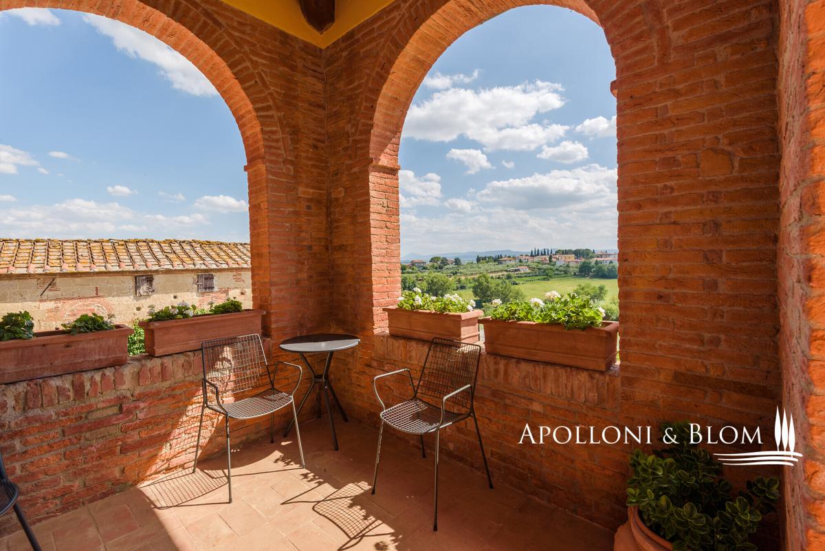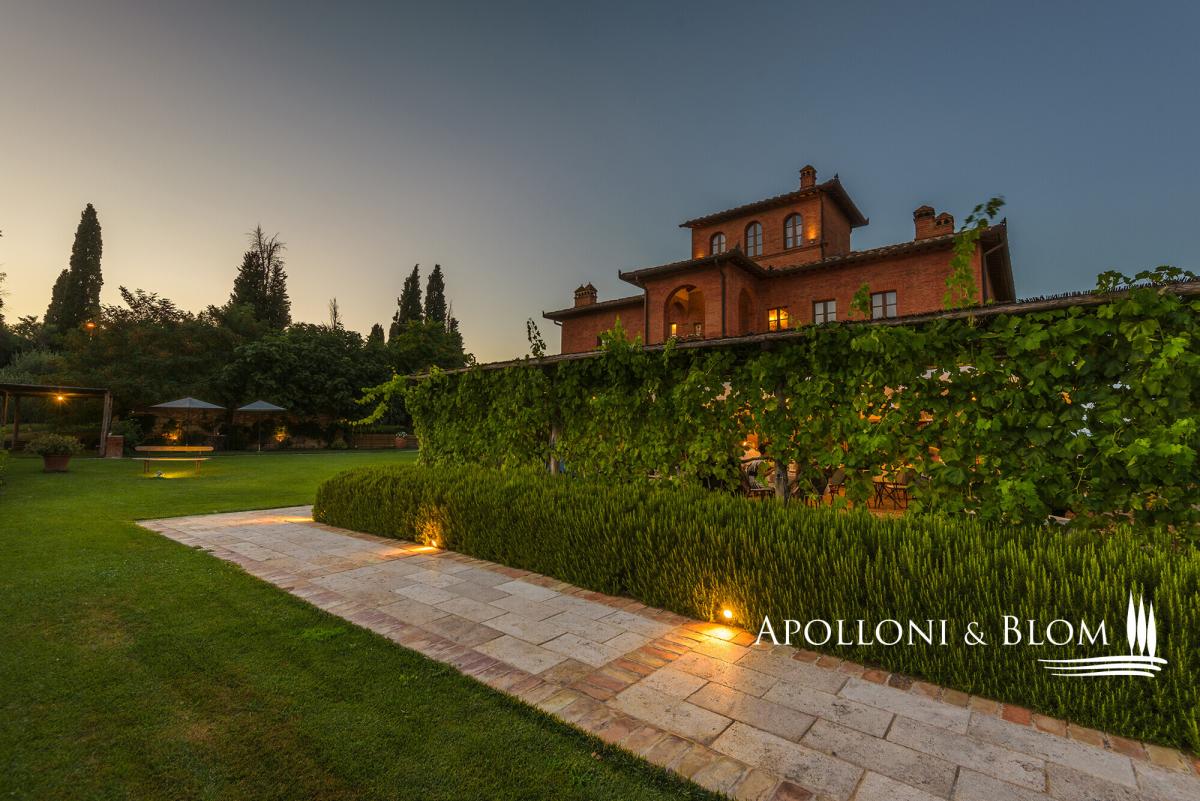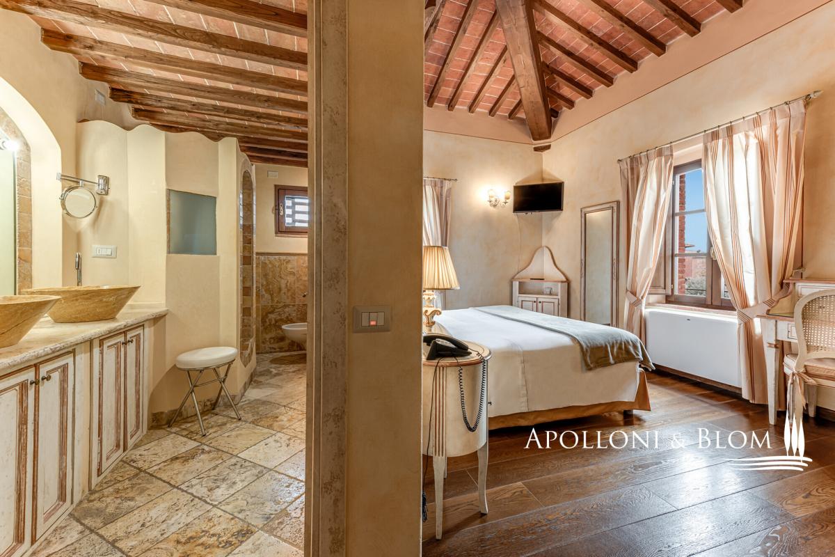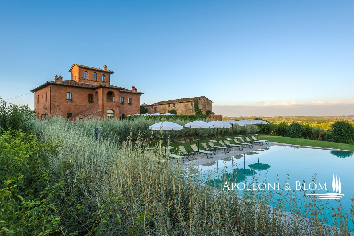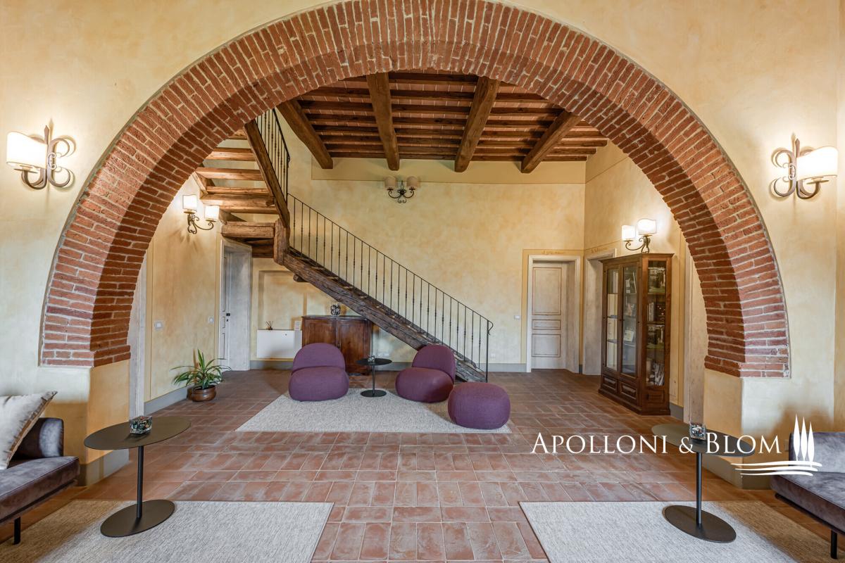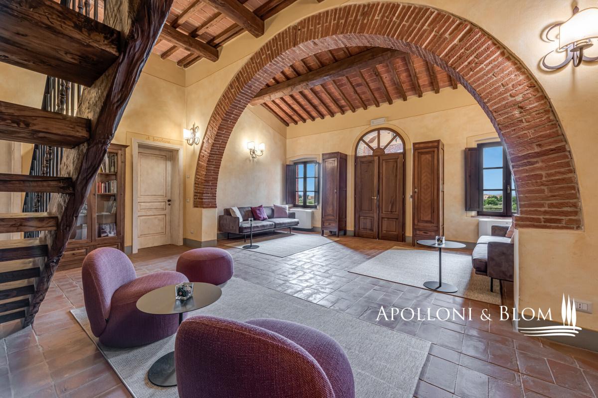 Tuscan estate with restored villa, pool, restaurant and annexes for conversion, for sale east of Siena near the Umbrian border. Among the ancient routes that connect Montepulciano and Cortona, in the heart of the Tuscan countryside yet close to all amenities, this distinguished Leopoldine country estate embodies the timeless charm of the region’s noble villas. Dating back to the XVIII century, the villa crowns its 4.2-acre grounds with an air of elegance and quiet authority, while its sweeping views and ancient stone façades speak to centuries of heritage. The estate is enriched by several evocative agricultural buildings, awaiting transformation into refined guest quarters or stylish living spaces. Together, they present a rare opportunity for those seeking either a private retreat to enjoy with family and friends or a hospitality venture. Finely restored in 2009, the villa offers 445 square metres of elegant interiors, framed by brick arches, exposed beams, and a harmonious blend of tradition and comfort, with air conditioning throughout. Its landscaped gardens and a stone pool create an atmosphere designed for both leisure and entertaining. The villa’s layout has been thoughtfully preserved for convivial living, with spacious halls, a professional kitchen, and staff quarters on the ground floor, while the piano nobile hosts five ensuite bedrooms opening from a classic central hall. Crowning the residence, a turret double bedroom commands uninterrupted 360° views across the Tuscan countryside, a statement of prestige and romance in perfect harmony with its surroundings. Beyond the villa, the estate encompasses an additional 531 square metres within its historic agricultural buildings, each poised for conversion. Most remarkable among them is the former tobacco barn, with soaring interiors reaching eight metres in height, offering the potential to craft dramatic living spaces or an exclusive cluster of guest apartments. These annexes represent a unique development opportunity, enabling an expansion of the estate’s hospitality capacity to as many as 14–15 suites, a scale ideally suited to a luxury boutique retreat. The land offers a rare combination of lifestyle pleasure and agricultural opportunity, with an established olive grove of 100 trees already producing the region’s prized oil, while fertile arable land invites the creation of new vineyards. An estate where history, beauty, and opportunity converge, this villa stands as a rare jewel in Tuscany’s golden hills, a sanctuary of luxury and refinement in a location of timeless prestige. PROPERTY Ref: SIN3335 Location: Bettolle, Province: Siena, Region: Tuscany Type: a 4.2-acres Tuscan estate featuring a 445 sq m/4789 sq ft classic Leopoldine Country villa with turret finely restored with swimming pool, 4 former agricultural buildings totaling 531 sq m/5715 sq ft to be restored and converted into living quarters, either for private use or hospitality venture Year of construction: 1700 Year of restoration: 2008 Land/Garden: 3200 sq m/0.8 acres of landscaped garden, 2 parking areas, and 1.7 hectares/4.2 acres of agricultural land including a 100-plant olive grove and arable land suitable for new vineyards Swimming pool: 14x7m featuring a Roman-style step, a paved sundeck and shaded corners Parking: 2 outdoor parking areas Utilities: Fixed telephone network: available Internet: available Heating: LPG Water: mains city supply + 1 well Electricity: available Water waste: Imhoff tank Air conditioning Licenses Held: accommodation facilities (professional guesthouses, holiday homes and apartments, historic residences); Catering, Food and beverage service; Online and retail trade Urban Planning Notes: Possibility for renovation, demolition, and faithful reconstruction of the annexes with a 30% increase in volume (max 100 m³ per annex). Permitted uses: residential, hotel, commercial. Distance from services: 400m - the property is in an extremely convenient location, with services only a few hundred meters away and the A1 motorway junction at few minutes drive Distance from main airports: Perugia 70km, Florence 115km, Rome 200km Layout: Building A Main Villa - 445 sq m/4789 sq ft: Ground Floor: entrance hall, 2 living rooms, 1 dining room, 1 professional kitchen, 2 toilets, 1 staff room with 1 bathroom First Floor: entrance from a loggia into a living room, 1 double bedroom with ensuite, 4 double bedrooms all ensuite and fitted with open loft/mezzanine Turret Floor: 1 bedroom, 1 bathroom Annexes: Building B 290 sq m/3,121 sq ft Former tobacco barn, located on the right side of the villa, and the main level features a double volume of over 8 meters in height suitable for conversion into residential or hospitality use, up to 4 self-contained apartments and a total of 6 bedrooms and 6 bathrooms Building C 31 sq m/333 sq ft Former shed, on one level, to be re-built or the volume used/added for reconstruction of other buildings Building D 51 sq m/548 sq ft Deposit for agricultural machinery Building E 95 sq m/1022 sq ft Former Pigsty building, on one level, located on the left of the villa, to be restored and converted into a guest cottage with 2 bedrooms and 2 bathrooms Underground 64 sq m/688 sq ft technical rooms located on the rear of the main villa- garden