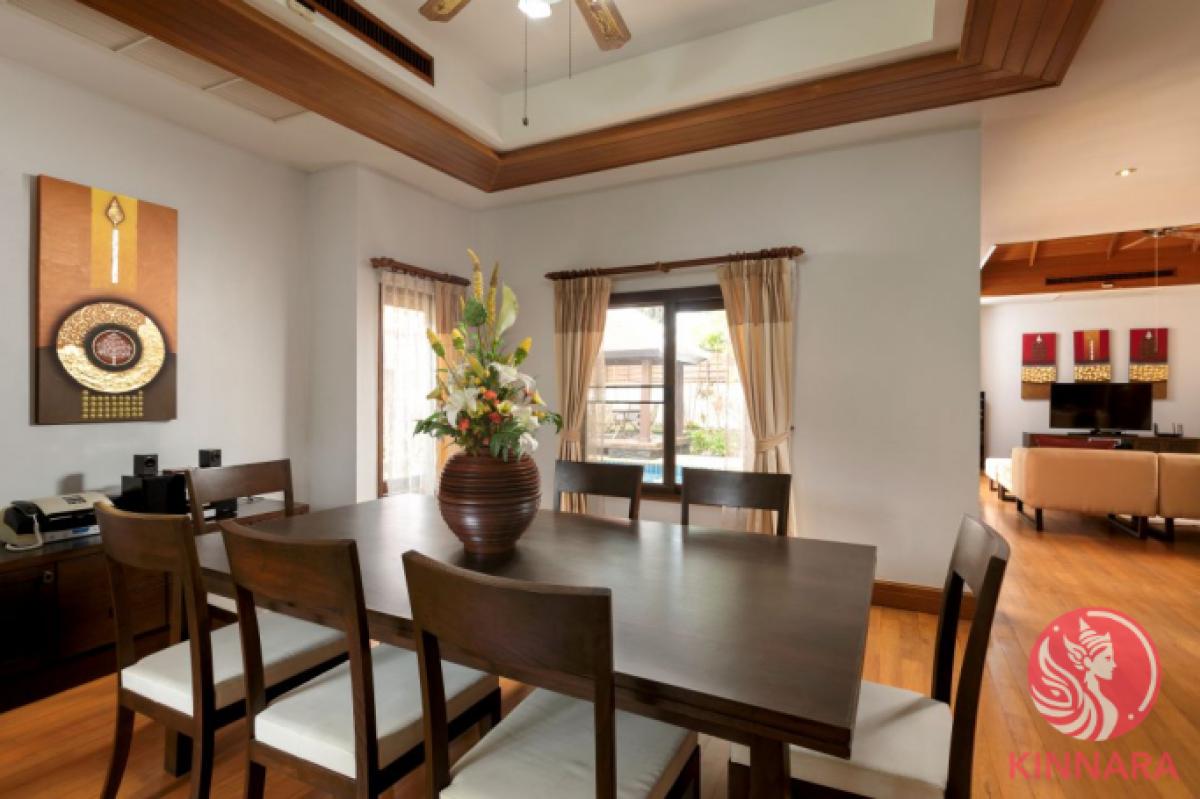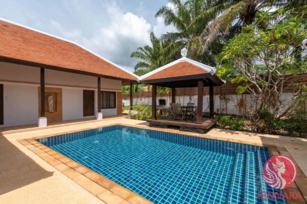 Revel in Tranquility Elegant 4-Bed Villa with Private Pool Timeless SophisticationNestled in a tranquil and secure residential estate, this enchanting four-bedroom villa has undergone a complete renovation, exuding timeless elegance and modern sophistication. The heart of this U-shaped villa is its expansive 5m x 9m swimming pool, elegantly framed by the surrounding living spaces. The open-plan layout effortlessly integrates the kitchen, dining area, and spacious living room, adorned with a striking vaulted wood ceiling and wooden flooring. The fully equipped kitchen boasts a 4-burner gas stovetop, grill, oven, microwave, refrigerator, ample counter space, and a generous breakfast bar. For added convenience, a washing machine and dryer are also included. The inviting master bedroom offers serene views of the private pool and features wood flooring, a vaulted wood ceiling, and a sizable walk-in wardrobe. The luxurious ensuite bathroom is appointed with double vanity sinks and a relaxing jacuzzi bathtub. Two guest bedrooms each offer ensuite facilities, while the fourth bedroom stands alone from the main villa, ideal for use as a maids room, office space, or an additional bedroom. Stepping outside, the expansive terrace surrounds the pool and leads to a spacious sala with comfortable seating and dining areas - perfect for outdoor entertaining. A gas Weber BBQ enhances the alfresco dining experience. Previously occupied by owners, this villa has been meticulously maintained and is in pristine condition following its 2022 renovation. Discover unparalleled comfort and luxury in this exquisite sanctuary.