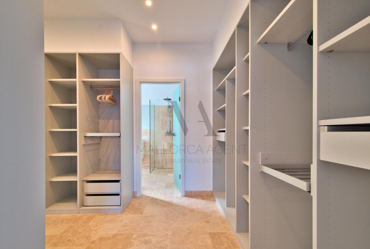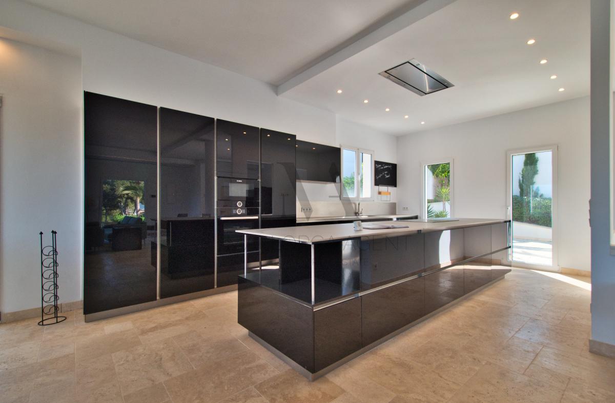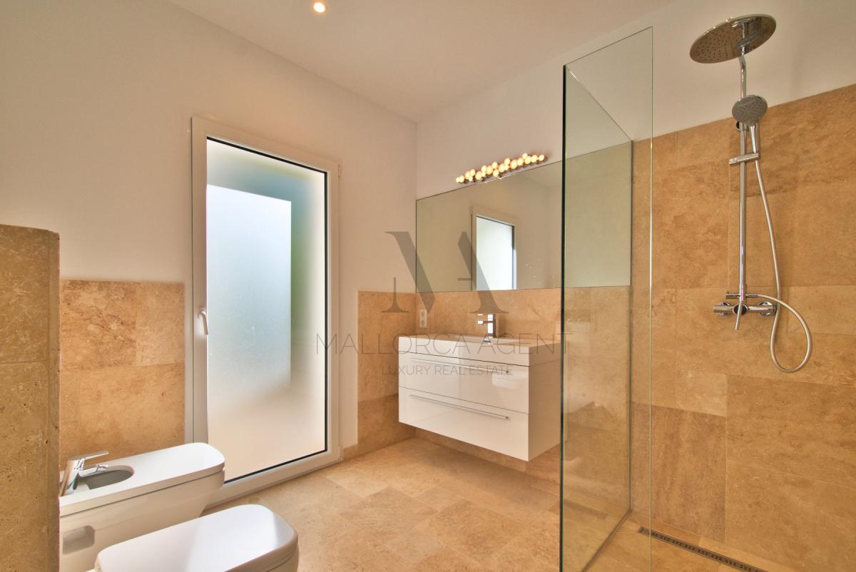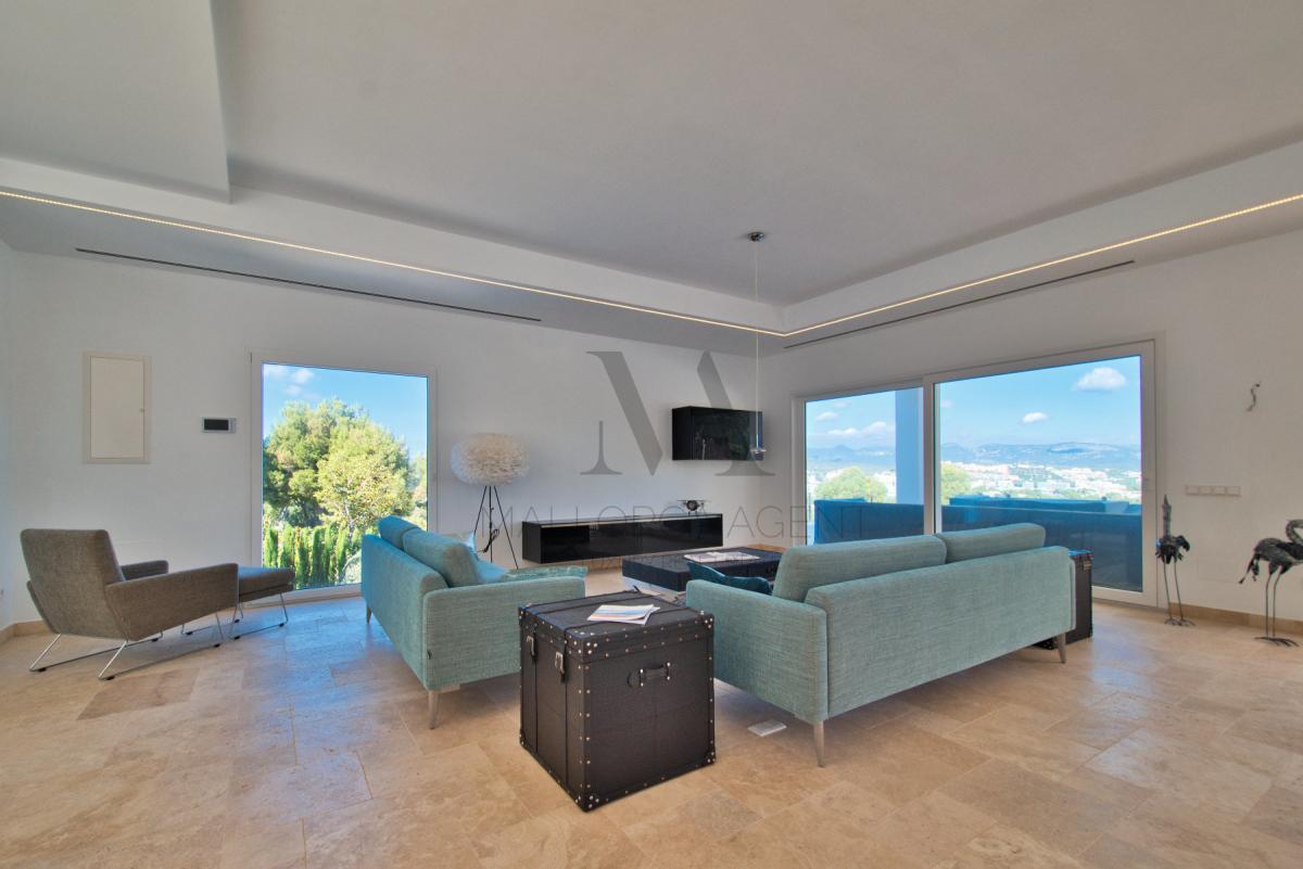 Diese schone, moderne Villa wurde komplett renoviert und mit den neuesten technischen Geraten ausgestattet. Die Villa befindet sich in einer ruhigen Strasse auf dem Hugel Nova Santa Ponsa, genannt ''Ensaimada'', im Sudwesten Mallorcas. Die Villa bietet ihnen folgenden Grundriss: im Erdgeschoss befinden sich drei geraumige Schlafzimmer-Suiten mit eigenem Bad. Daruber hinaus verfugt das Hauptschlafzimmer uber einen grosszugigen Ankleideraum. Alle Schlafzimmer haben direkten Zugang zur Poolterrasse mit einem 13m x 3,4m grossen Pool und sonnigen Terrassen. Das Obergeschoss der Villa ist offen gestaltet. Hier beeindruckt der moderne Wohn- und Kuchenbereich. Die Kuchenelemente aus schwarzem Glas verleihen dem gesamten Raum eine hohe Eleganz. Schiebeturen ermoglichen den Zugang zur Aussenterrasse mit Blick auf das Meer und die Umgebung. Über eine Treppe gelangt man auf die 120m2 grosse Dachterrasse, die zum Sonnenbaden einladt. Die beruhmten Yachthafen Puerto Portals und Port Adriano sind nur wenige Autominuten entfernt, ebenso wie Sandstrande, Golfplatze und internationale Schulen in unmittelbarer Nahe des Anwesens. Allgemeine Ausstattung: Klimaanlage w/k, Fussbodenheizung, Luft/Wasser-Warmepumpe, Marmorboden, Parkplatze, Doppelverglasung. Mietbedingungen: 8250,- € pro Monat, zahlbar 1 Jahr im Voraus. Nebenkosten: Wasser, Strom. Kaution: 2 Monate. Gebuhren der Agentur: 1,5 Monate + Mehrwertsteuer vom ursprunglichen Angebotspreis.