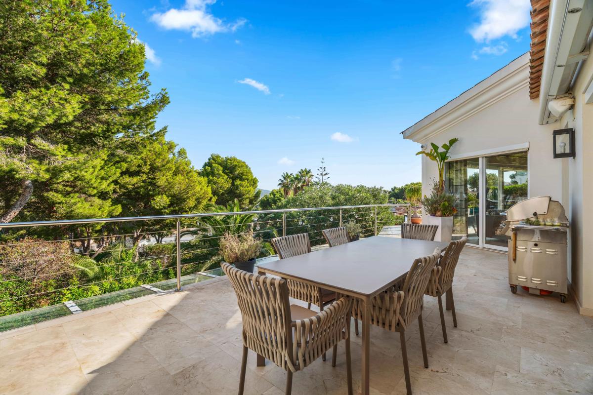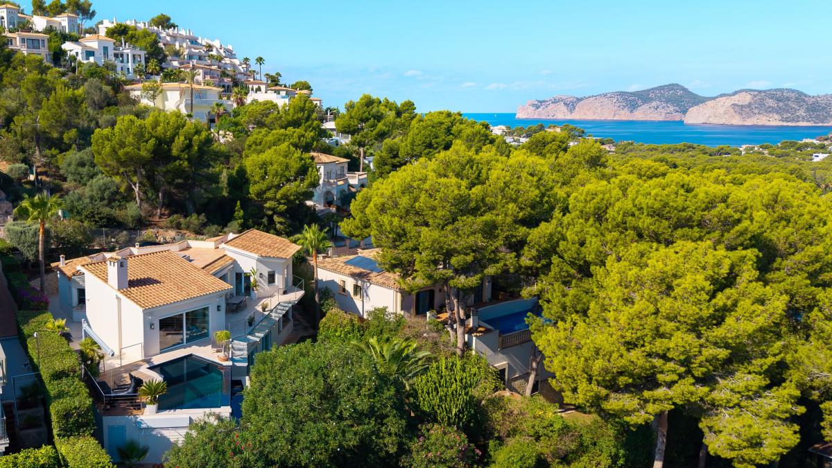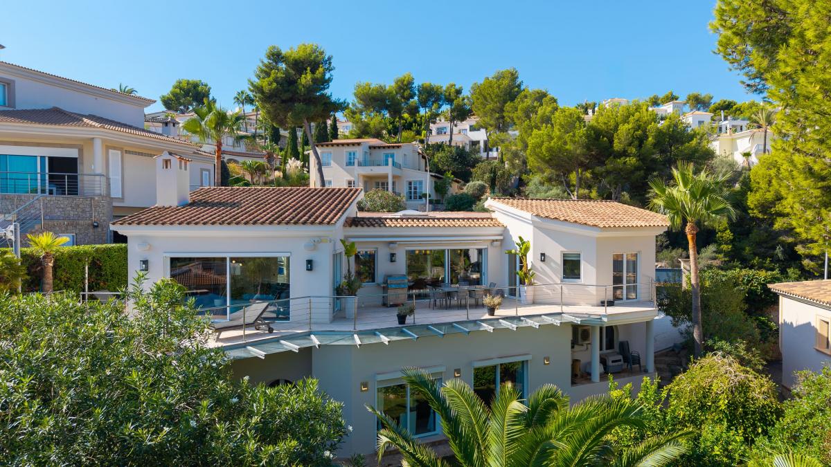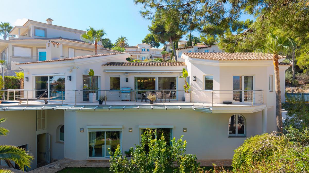 Diese moderne Villa verbindet zeitlose Architektur mit exklusivem Wohnkomfort und einer privilegierten Lage in Santa Ponsa, nahe dem Yachthafen Port Adriano und mehreren Golfplatzen. Grosszugige Glasfronten, klare Linien und der traumhafte Blick auf Meer, Berge und Hafen verleihen der immobilie eine besondere Atmosphare.