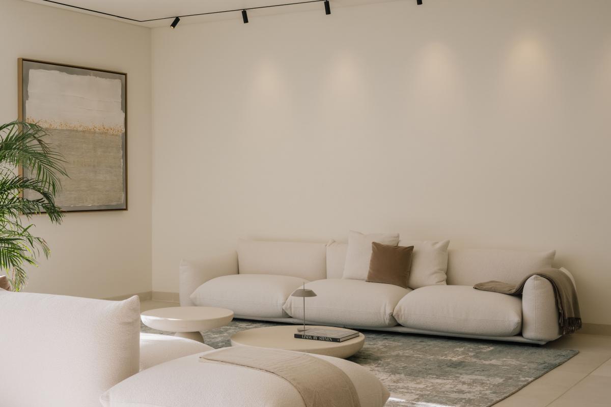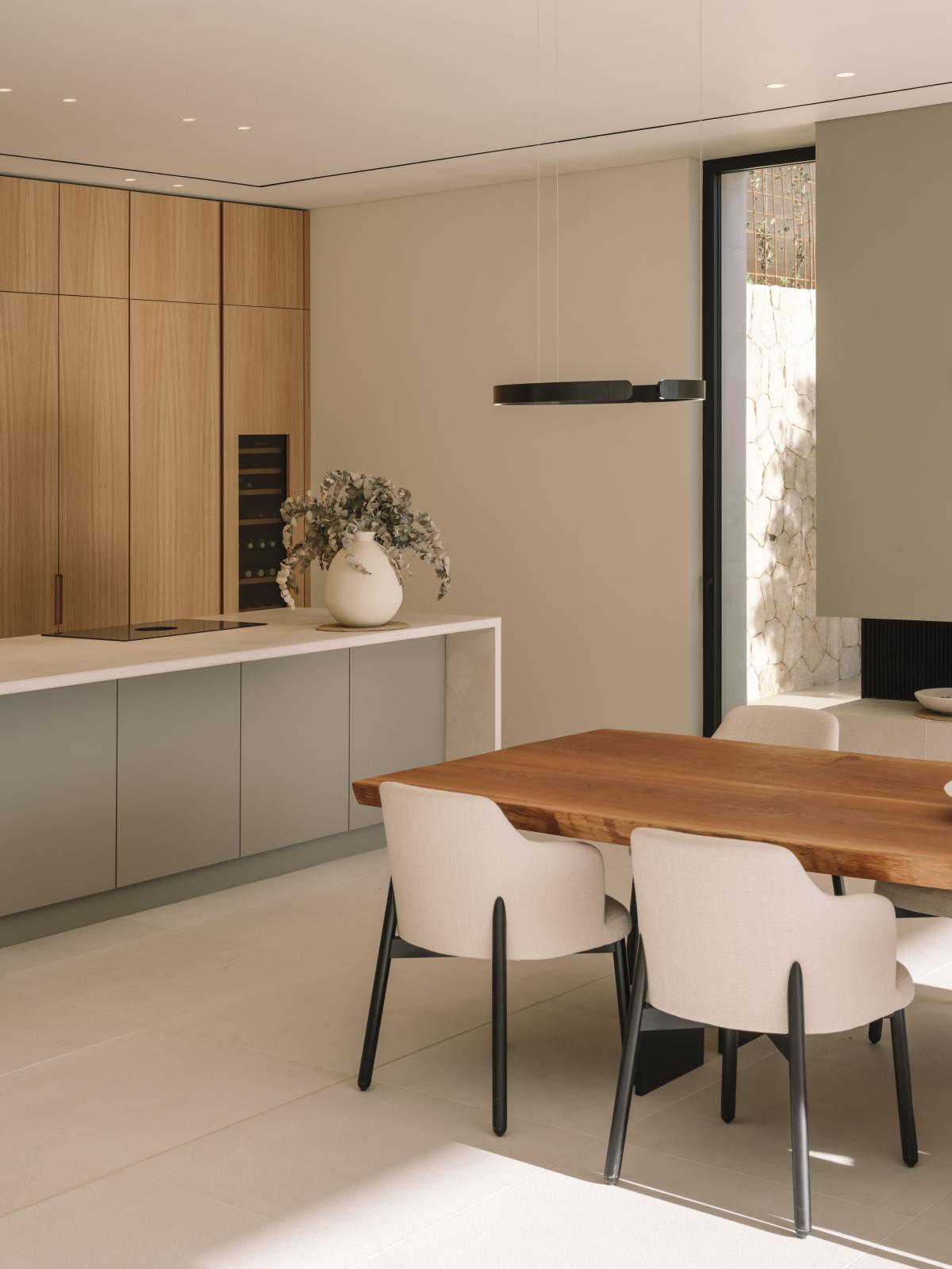 im Erdgeschoss besticht das lichtdurchflutete Wohnzimmer, das sich nahtlos zur weitlaufigen Sonnenterrasse und dem 19 Meter langen infinity-Pool hin offnet. Die offene Mobalco-Kuche mit separater Vorbereitungskuche erfullt hochste Anspruche. Erganzt wird das Erdgeschoss durch ein Gaste-WC und einen vielseitigen Multifunktionsraum, der sich ideal als Heimkino eignet.