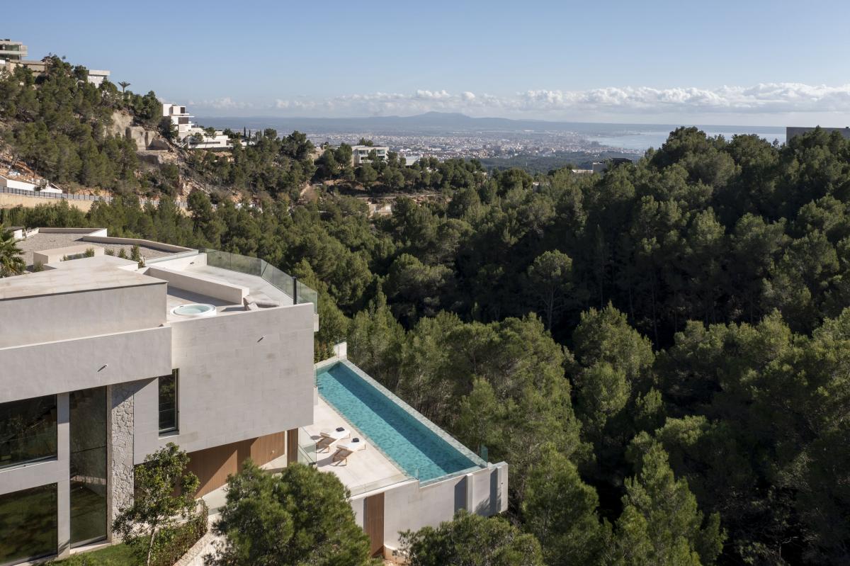 Diese exklusive Neubau-Villa befindet sich auf einem rund 2.018 m2 grossen, privaten Grundstuck und bietet eine beeindruckende bebaute Flache von 921,3 m2. Sie liegt an einem unbebaubaren Grundstuck, was zusatzliche Privatsphare garantiert. in der ersten Etage empfangt Sie ein weitlaufiges Masterschlafzimmer mit spektakularem Blick auf das Meer und die Kathedrale, ausgestattet mit einem begehbaren Kleiderschrank, einem Badezimmer en Suite und einem grosszugigen Balkon. Zudem befinden sich auf dieser Ebene drei weitere grosse Doppelschlafzimmer, jedes mit eigenem Bad en Suite.