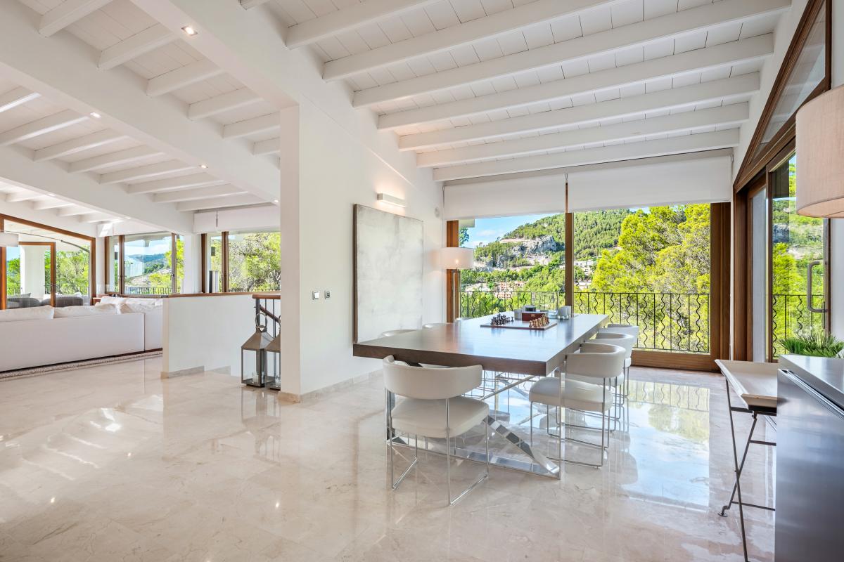 Diese perfekte Familienvilla besticht durch einen beeindruckend Blick uber Son Vida bis zur Buch von Palma und auf das Meer.