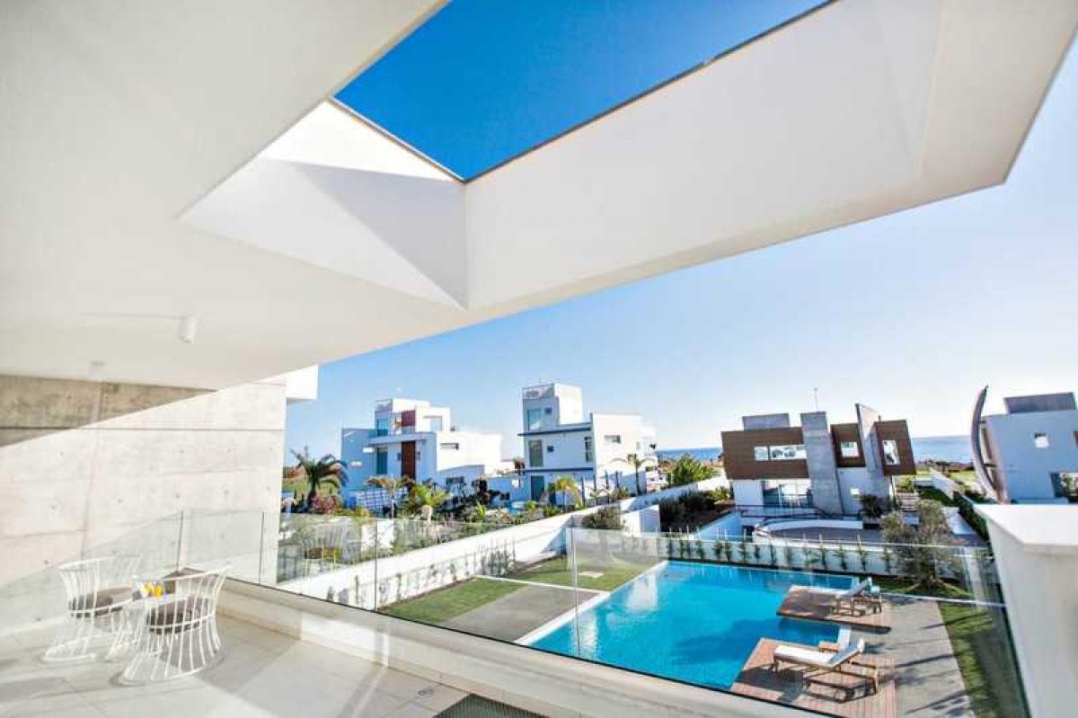 If you are seeking for a home by the sea where space and solitude coexist with comfort and elegance, this three-level five-bedroom villa is the solution.One of the 9 villas in an exclusive modern development in an unspoiled seafront setting, the villa is separated from the turquoise sea by only the front row of the development's villas. In this upscale environment you are only a few steps from the untouched Mediterranean Sea, and a few minutes by car from the nearest sandy beach with organized bathing and other leisure facilities.With its lovely grass, sparkling pool, and jacuzzi surrounded by a roomy deck and patio, the villa itself will enchant you. Luxurious, high-quality interiors with elegant design set the mood for a relaxation. The living and dining spaces are roomy and contemporary, each bedroom has its own bathroom, the kitchen is fully equipped with high-quality appliances, and French windows let the lovely sunlight brighten your days every day.In addition to enjoying frequent trips to Ayia Napa, the well-known and vibrant summer resort, which is only 3KM down the road, you may enjoy this peaceful hideaway overlooking the pedestrian route along the sea as the recipe for the ideal house.Reference number: 82275