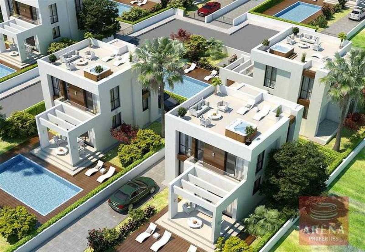 New Villa in Ayia TheklaIt will be an exclusive gated community of seven boutique villas located within walking distance of the picturesque Potamos, Ayia Thekla Beach and the Marina. With large plots of up to 473 m2 each property affords a feeling of privacy and space. The contemporary design with clean architectural lines explores the dynamics of space to produce a seamless blend of indoor and outdoor living. The open-plan layout of the ground floor, with plenty of glass which allows an abundance of natural light to enter, creates a light and bright feel. On the first floor, there is an en-suite master bedroom, two spacious guest bedrooms, the main bathroom and a balcony.