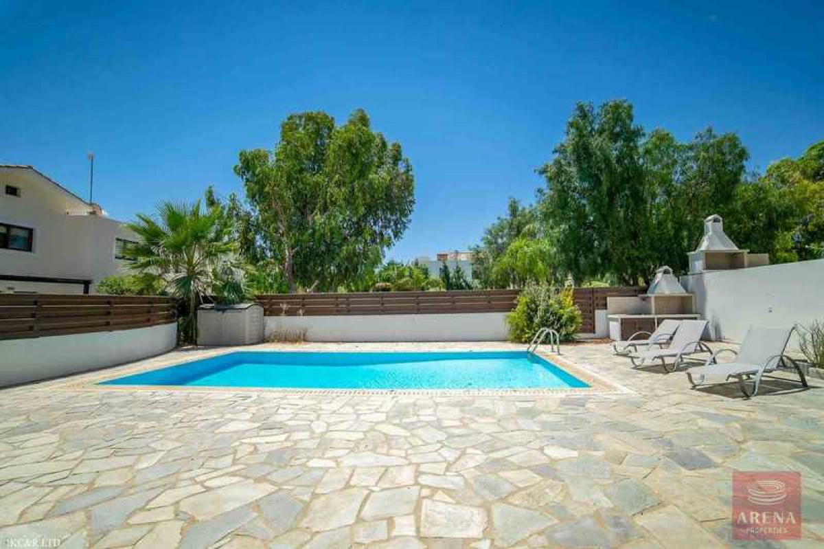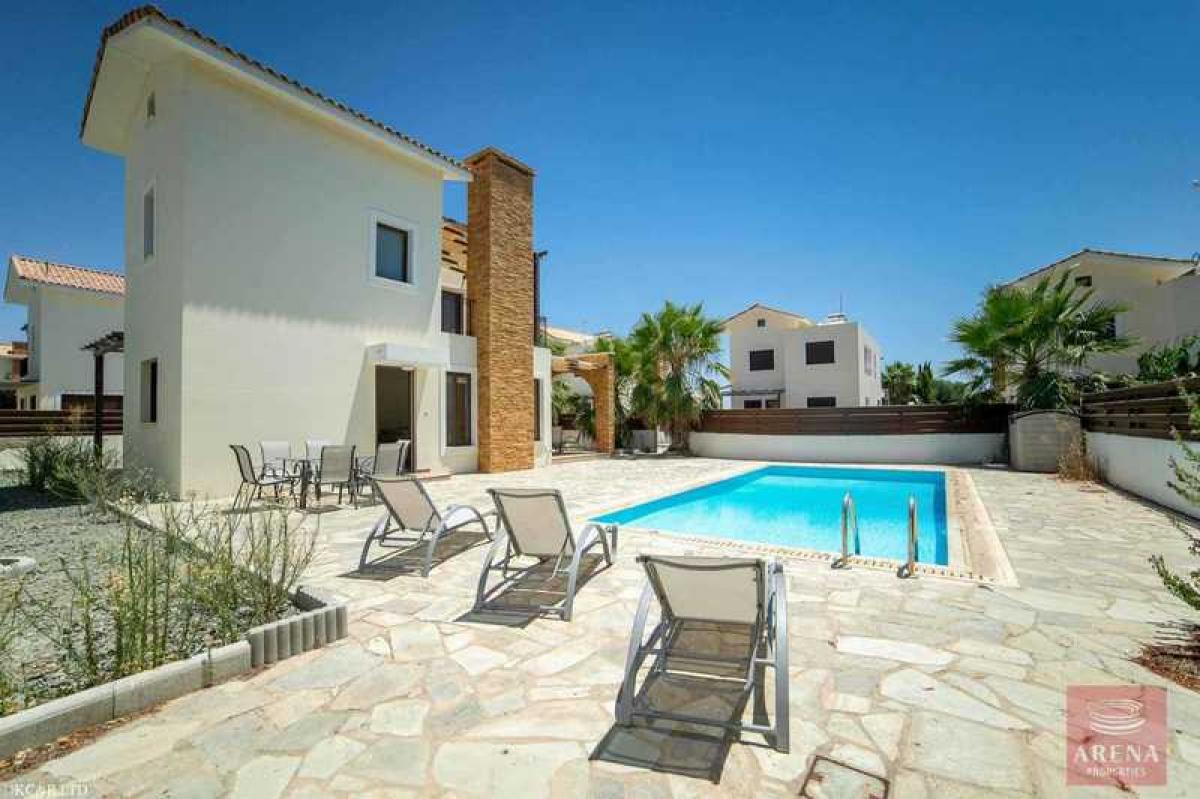 Villa in Ayia TheklaLocated on the pristine southern coast of the Famagusta district, this gorgeous 3 bedroom villa is only moments away from the sparkling Mediterranean. Situated in a gated community, next to a manicured green area, the 430 m2 plot has more than enough room for a large overflow pool, a built-in barbecue, sunbeds and al fresco dining. The villa also has 3 verandas with shade pergolas to eat comfortably any time of the year.