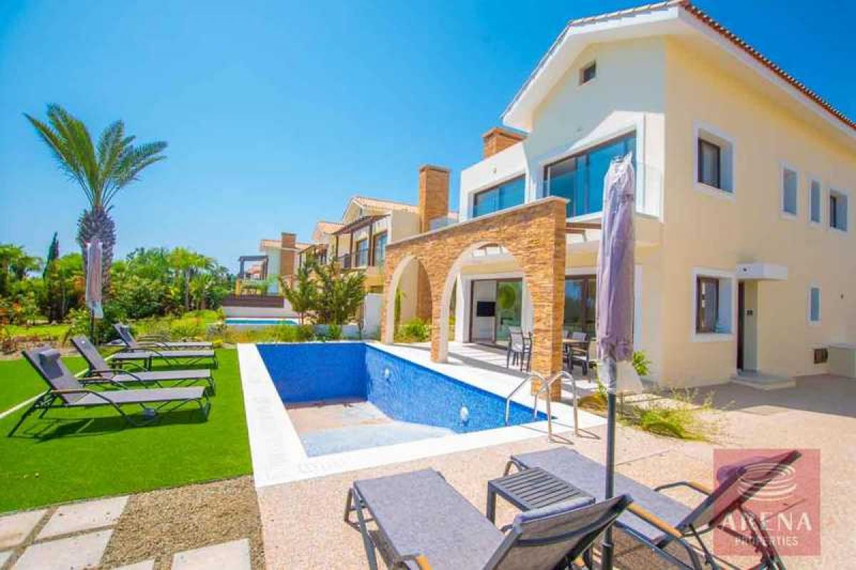 Villa in Ayia Thekla for saleLocated in a peaceful private community on the seashore west of Ayia Napa, this beautiful frontline villa has an expansive lush garden plot and sea views. Intelligently designed to mirror traditional architecture while bringing full modern amenities, the villa has large interior and exterior living areas, bright bedrooms with sea views, and a private pool in a garden and green area directly to the sea. The villa is sold fully furnished with appliances.