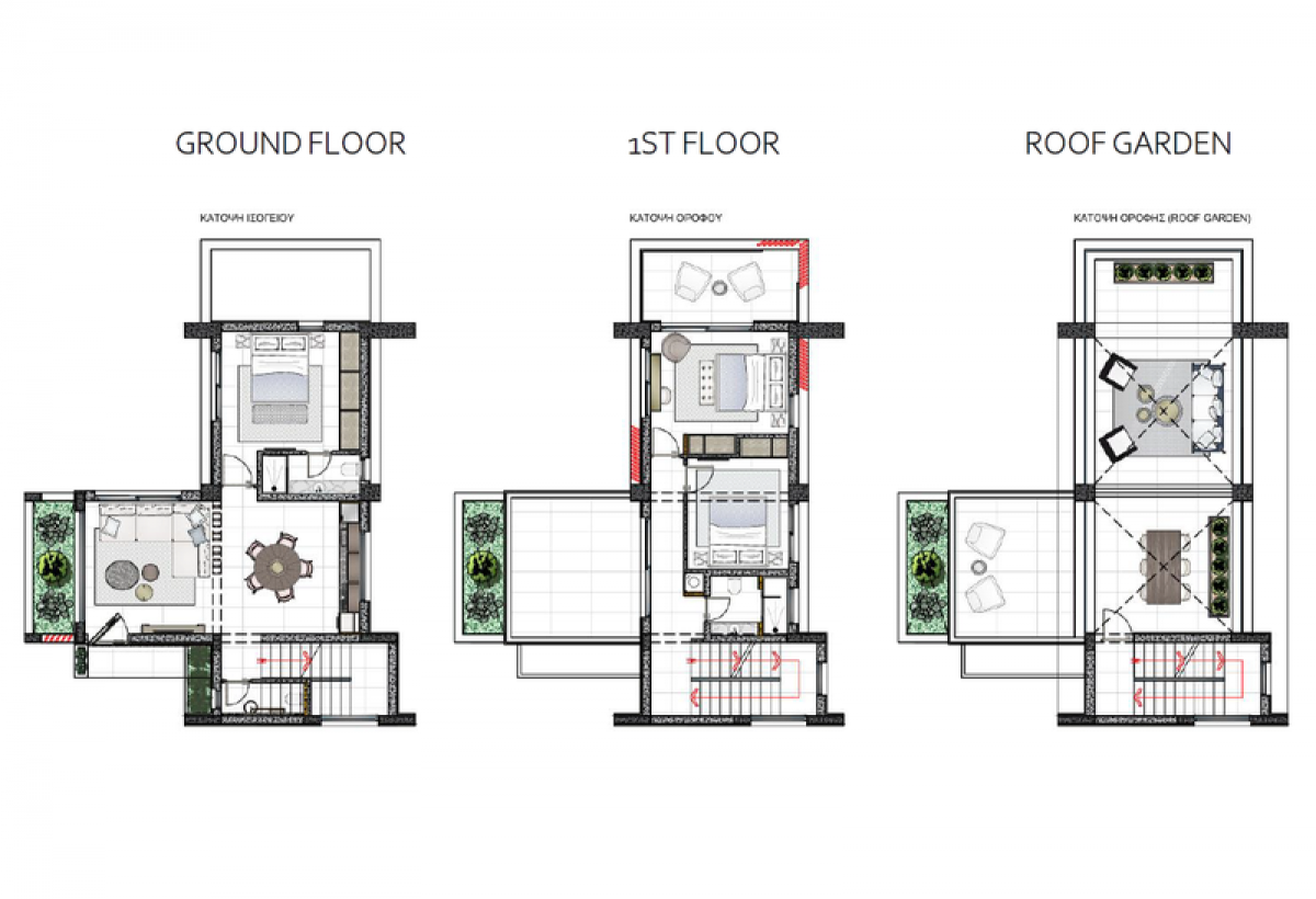 For sale 3 bedroom villa in Agia Triada, Famagusta with sea view in a gated complex. The house is fully furnished and equipped with household appliances. All rooms are equipped with air conditioning. There is a parking space and a separate storage room. A large courtyard with a private pool. The complex is located next to all necessary amenities.Reference number: 112011