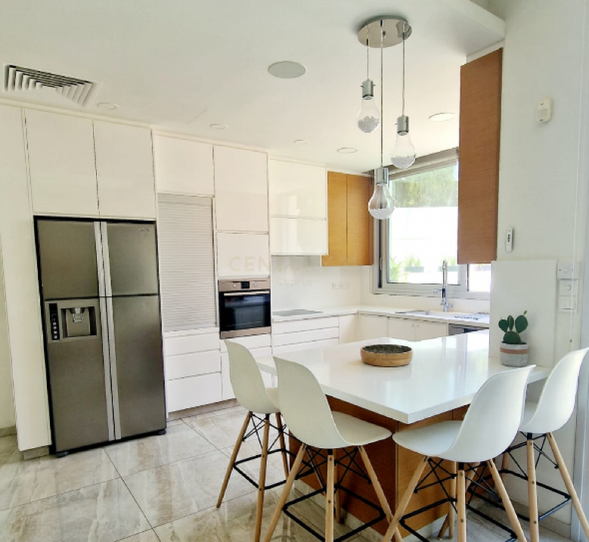 A unique residence is for sale in a prime area of Agios Athanasios. The house combines modern and timeless elements to provide a high-quality living experience. Located in a quiet area, it is close to a school and supermarket, with easy access to the highway. Covered area 252 square meters and a plot 560 square meters.Features: 4 ensuite bedrooms, master bedroom with walk-in closet, attic. Main living room and a sitting room with a double-sided fireplace. Modern spacious kitchen with plenty of storage space. Laundry room and a separate room with wardrobes and storage spaces. 2 garages, storage room, service room in the back yard of the house.