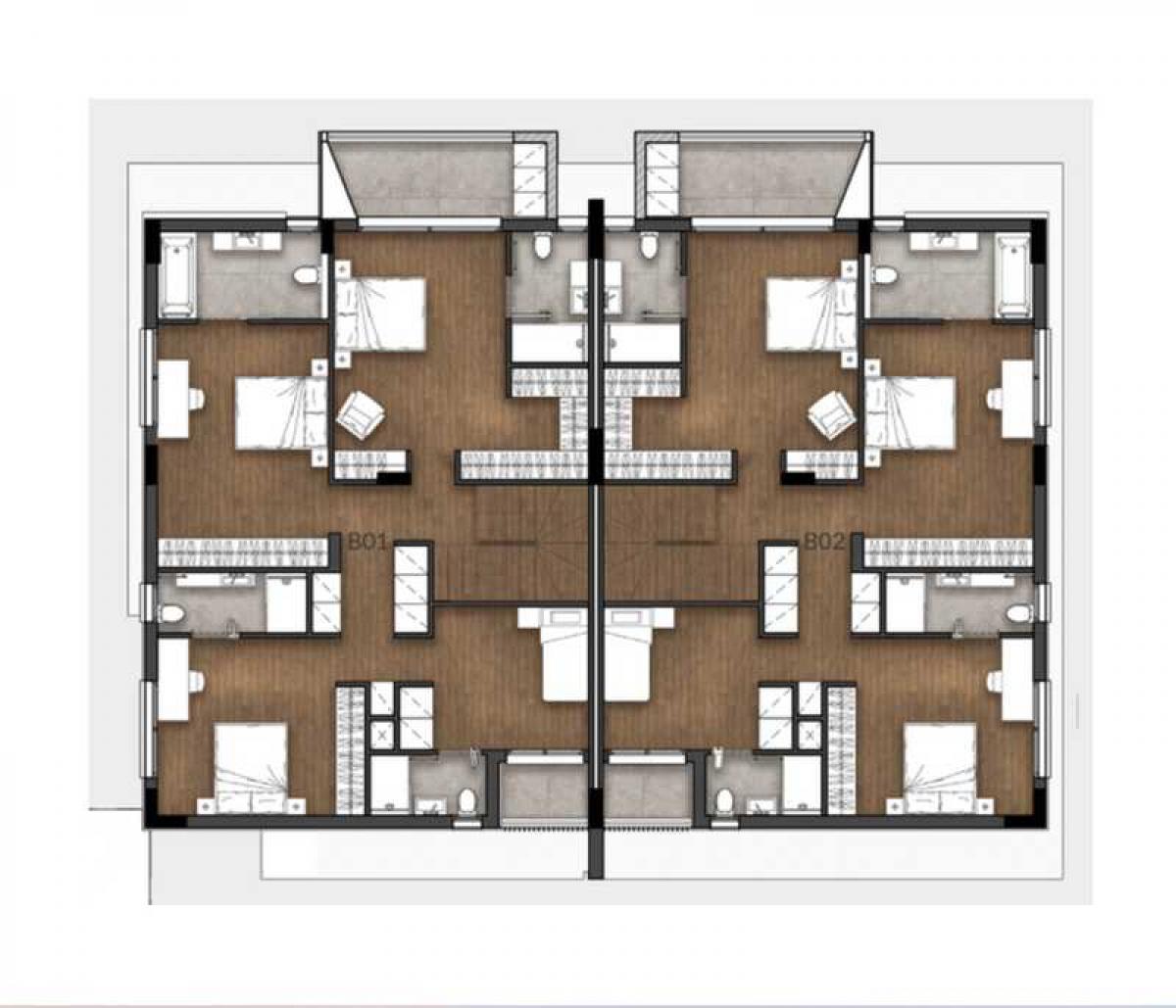The new project, consisting of four two-storey villas on a plot of 1,387 m2, is located in one of the most attractive areas of Limassol, Agios Athanasios. Each villa consists of a spacious living room with a veranda overlooking the garden, a kitchen and a guest toilet on the ground floor, as well as four bedrooms on the second floor, each with its own bathroom. Each house is characterized by high energy efficiency, high-quality materials, modern design and thoughtful layout. The advantage of the location is the proximity to the highway, the city center, schools, hospitals and a busy tourist area. Indoor covered area: 202 m2, Covered terraces: 37 m2, Covered Parking: 48 m2, Total covered area: 287 m2, Private plot area: 256 m2, Common areas: 63m2, Total land area: 319 m2.Reference number: 102197