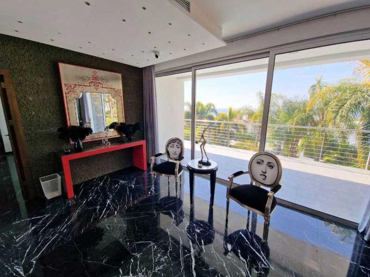 Sale of a 5 bedrooms house with sea view in Agios Tychonas, Limassol. The house consits of 3 levels: first level has open plan kitchen and living area, cinema, sauna wine room, one bedroom, studio and 2 bathrooms. The second level - living area, kitchen and guest toilet, the third level - 3 bedrooms, office and 2 wardrobes. The house has smarthome system, underfloor heating, big pool, garage and garden.Reference number: 83967