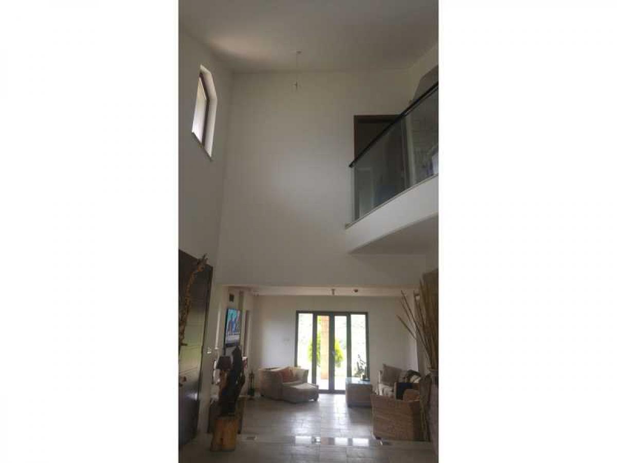 On the ground floor there is a spacious fully equipped kitchen, a pantry leading to a garage, a dining area with garden views, a family room with a fire place and with direct view and access to the main porch and garden. Also on this level is the living Room with full size patio windows facing East as well as North. The living area ceilings are vaulted type reaching up to 8 meters high.