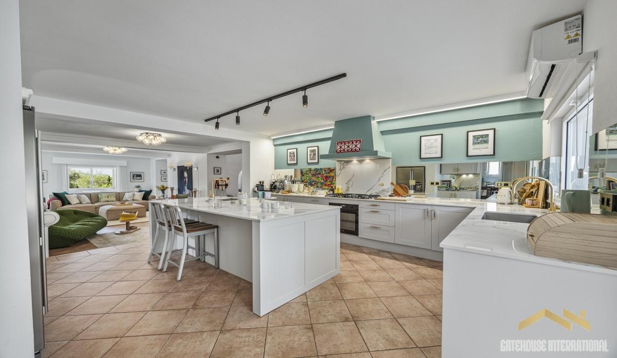 5 Bed Villa in Alfontes Boliqueime Algarve With Views - this traditional villa measures 295m2 in a plot of 2,700m2 with distant sea views and offers 5 bedrooms and versatile downstairs accommodation plus a heated swimming pool. The accommodation offers an entrance, an open plan diner, lounge and kitchen which features a central island, pantry and direct access to an outdoor dining terrace. This level also includes a guest suite, office, playroom, cinema room and guest bathroom, plus a private stairway to an additional bedroom. Upstairs, the master suite enjoys a walk-in wardrobe, luxury bathroom and south-facing terrace with panoramic views of the sea and countryside. Two further bedrooms share a family bathroom. Outside, landscaped gardens with fruit trees, a heated pool, automatic gates, and solar panels complete this elegant family retreat in one of the Algarve's most desirable locations. in brief: - entrance - lounge - diner - kitchen and breakfast room - office - playroom - cinema room - 5 Bedrooms - 5 Bathrooms - heated swimming pool Set in the quiet area of Alfontes, this villa offers easy access to both Vilamoura, Almancil, Loule and the local beaches.Features