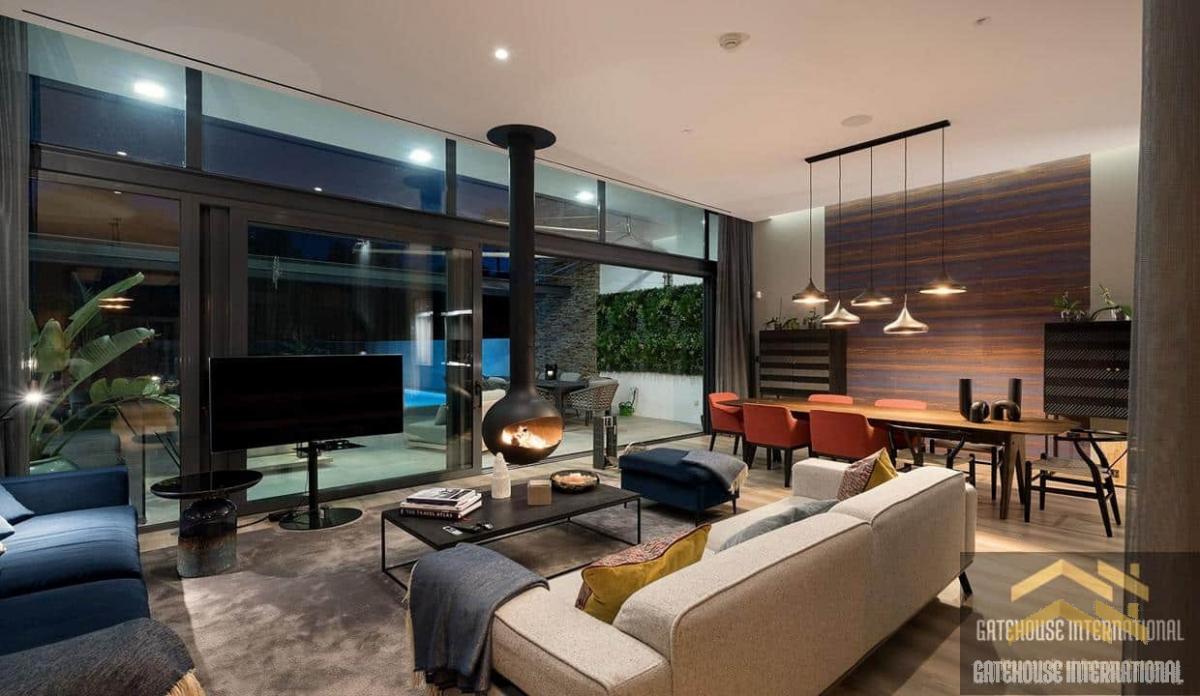 Brand New Contemporary 4 Bed Villa With Plunge Pool in Almancil Algarve is a 300m2 modern linked villa situated in the heart of the Golden Triangle area. This townhouse consists of an open plan living room with dining space and fireplace, a fitted and equipped kitchen with pantry, 3 bedrooms and 3 bathrooms. The lower level has a 4th bedroom, a shower room, a high-end fully equipped cinema room, a gym and a garage. Outside is a swimming pool, BBQ and Al fresco dining areas, terraces, Jacuzzi, lounge area with firepit ad garden. interior: - open plan living room with fireplace - dining space - fitted and equipped kitchen - pantry - 3 bedrooms - 3 bathrooms Basement: - 4th bedroom - shower room - high-end cinema room - gym - garage Exterior: - swimming pool - BBQ and Al fresco dining areas - terraces - Jacuzzi - lounge area with firepit - garden Almancil is a working town and parish in the Loule Municipality within the area of the affluent Algarve Golden Triangle region. Almancil is known for its three Michelin-star restaurants (the most in any town in the Algarve) having a Karting fun park, the Sao Lourenco church known for its traditional blue and white tiles, with local supermarkets like Apolonia, Pingo Doce, Aldi, bank and pharmacies, and located 12minutes away from the shopping mall Mar Shopping & Outlet Center. Almancil is just a 20-minute drive from Faro international Airport.