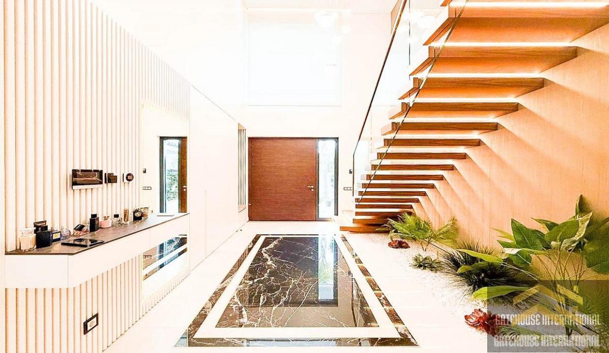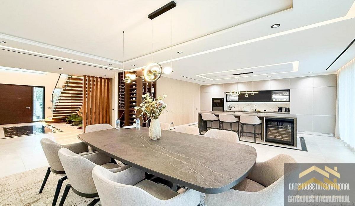 4 Bed Modern Linked Villa For Sale in Almancil Algarve - this ultra modern and new 287m2 villa has 4 large bedroom suites with open plan living accommodation with a garage, gated parking plus a swimming pool. The villa comprises of an entrance with modern staircase, opening to the open plan living, dining and kitchen breakfast area with high quality finishes. There is a laundry room, visitors cloakroom plus access to the garage. There is a ground floor bedroom suite with 3 further bedrooms and bathrooms. The villa benefits from central heating, ducted air conditioning, electric shutters, solar panels and a saltwater swimming pool. in brief: - entrance - visitors cloakroom - lounge, diner, kitchen - 4 bedrooms - 4 bathrooms - garage - swimming pool Almancil is a charming town in the Algarve region of southern Portugal, known for its blend of traditional Portuguese character and modern amenities. Situated just a short drive from the coastline, Almancil serves as a gateway to the prestigious Golden Triangle, which includes luxury destinations like Quinta do Lago and Vale do Lobo. The town is renowned for its culinary scene, with numerous fine dining establishments and local eateries offering a taste of authentic Portuguese and international cuisine. it is also celebrated for its rich cultural heritage, including the beautiful Sao Lourenco Church, famous for its exquisite 18th-century blue and white azulejo tiles. Almancil boasts excellent infrastructure, with shops, schools, and healthcare facilities, making it an attractive destination for both residents and visitors. its proximity to Faro international Airport, just 15 minutes away by car, adds to its convenience.Features