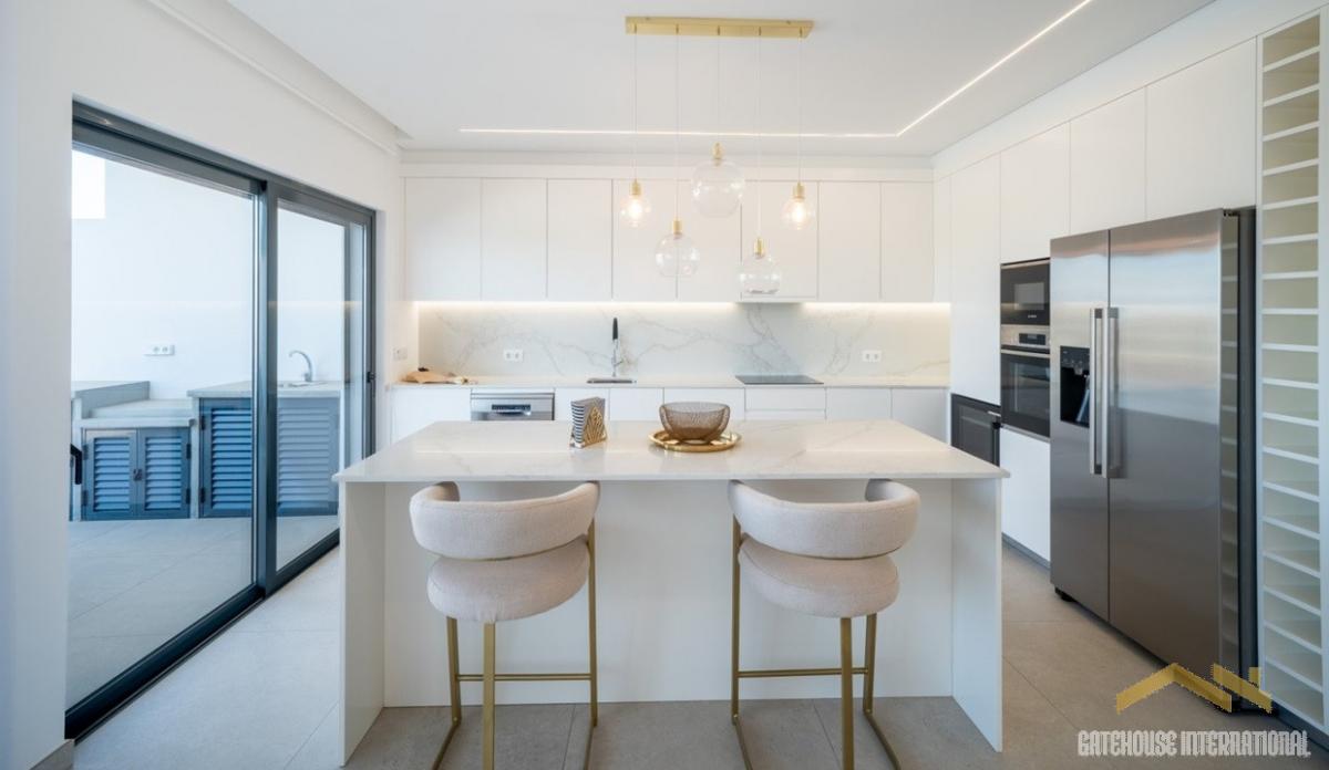 Brand New 3 Bed Linked Villa in Almancil Algarve - A 205 m2 contemporary style property situated within a short driving distance from town amenities. The townhouse consists of an open plan living room with dining space and a modern fitted kitchen with breakfast island, 2 bedrooms, an office (3rd bedroom) and 3 bathrooms. There is also a basement with garage space, a laundry room and a multipurpose space. Outside is a private pool, terraces, BBQ and Al fresco dining areas and a small garden. interior: - open plan living room with dining space - modern fitted kitchen with breakfast island - 2 bedrooms - an office (3rd bedroom) - 3 bathrooms Basement: - garage space - laundry room - multipurpose space Exterior: - private pool - terraces - BBQ and Al fresco dining areas - small garden Almancil - Situated in the charming town of Almancil, amidst the breathtaking landscape of the Algarve region, this picturesque village offers a blend of traditional charm and contemporary allure. With its relaxed atmosphere and high-quality infrastructure, it's a sought-after destination for residents and visitors alike. Conveniently located just 25 to 30 minutes from Faro international Airport, accessibility to this luxurious retreat is unparalleled.Features