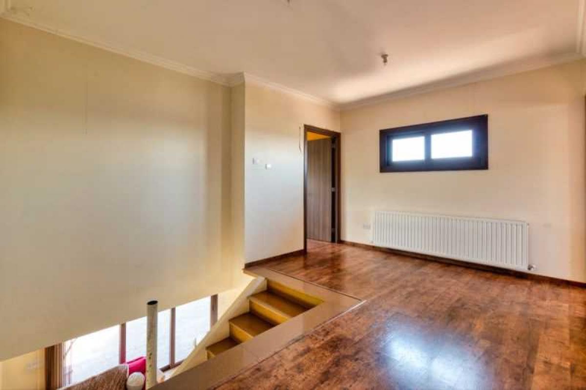 The property is a four-bedroom detached villa, located in the residential area of Anglisides, Larnaca, with views of the sea and mountains.It has 350 sqm of inernal spaces and it is built on a 570 sqm plot. Upon entering the property, you will find a cosy reception area, an office room and guest WC. There is open plan living, dining and kitchen area, with patio doors to a large uncovered veranda. From the kitchen you can access the utility room, which also goes out to the garage and can fit two vehicles.