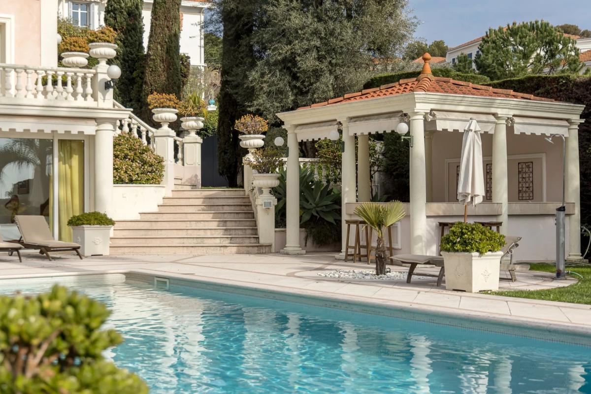 Magnificent Belle epoque style property established in 1901, nestled on the western slope of Cap d'Antibes. This historic residence offers nearly 400 square meters of living space, located on a flat plot of 2,400 square meters.