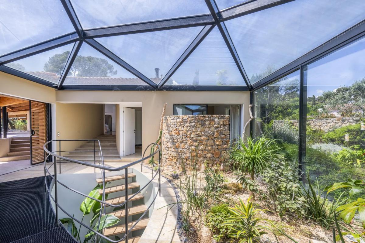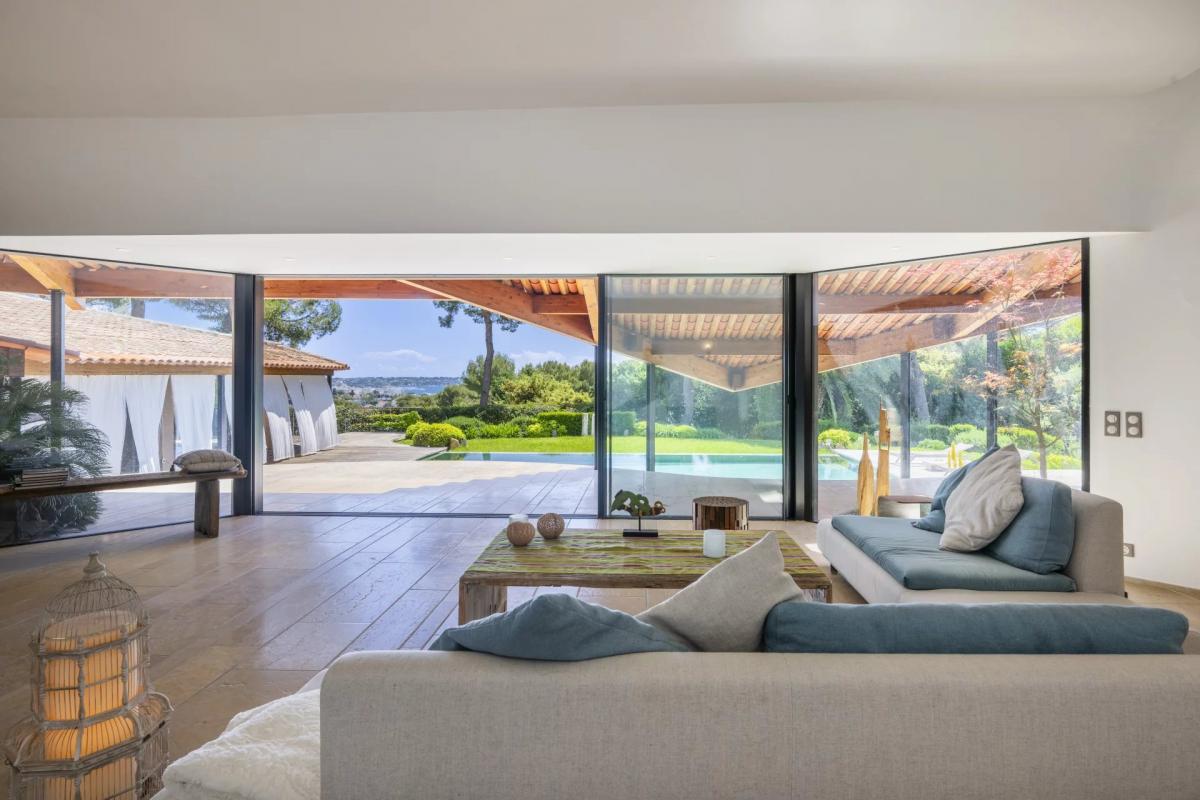 Situated in a confidential residential area of Antibes, in a dominant position at the heart of a 4,400 m2 landscaped garden with 1,400 plantations and 13 century-old olive trees, this property designed by architect Sauzet blends luxury and refinement.