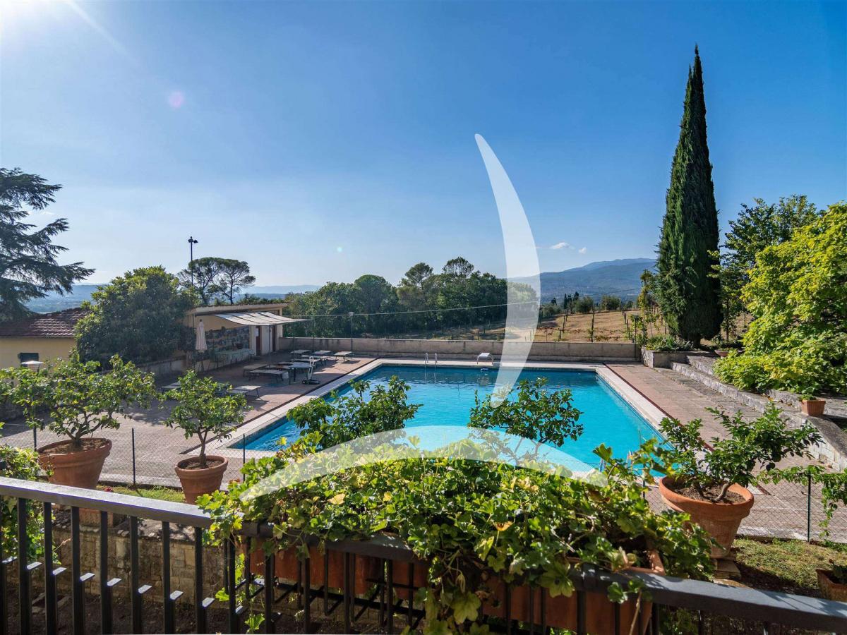 This magnificent historic villa, dating back to the early 1900s, is located in the countryside of Arezzo, just 10 minutes from the city center. Perched on a hill at the edge of a valley that stretches between Casentino, Valdarno, and Val di Chiana, the property boasts breathtaking views and an exclusive location.