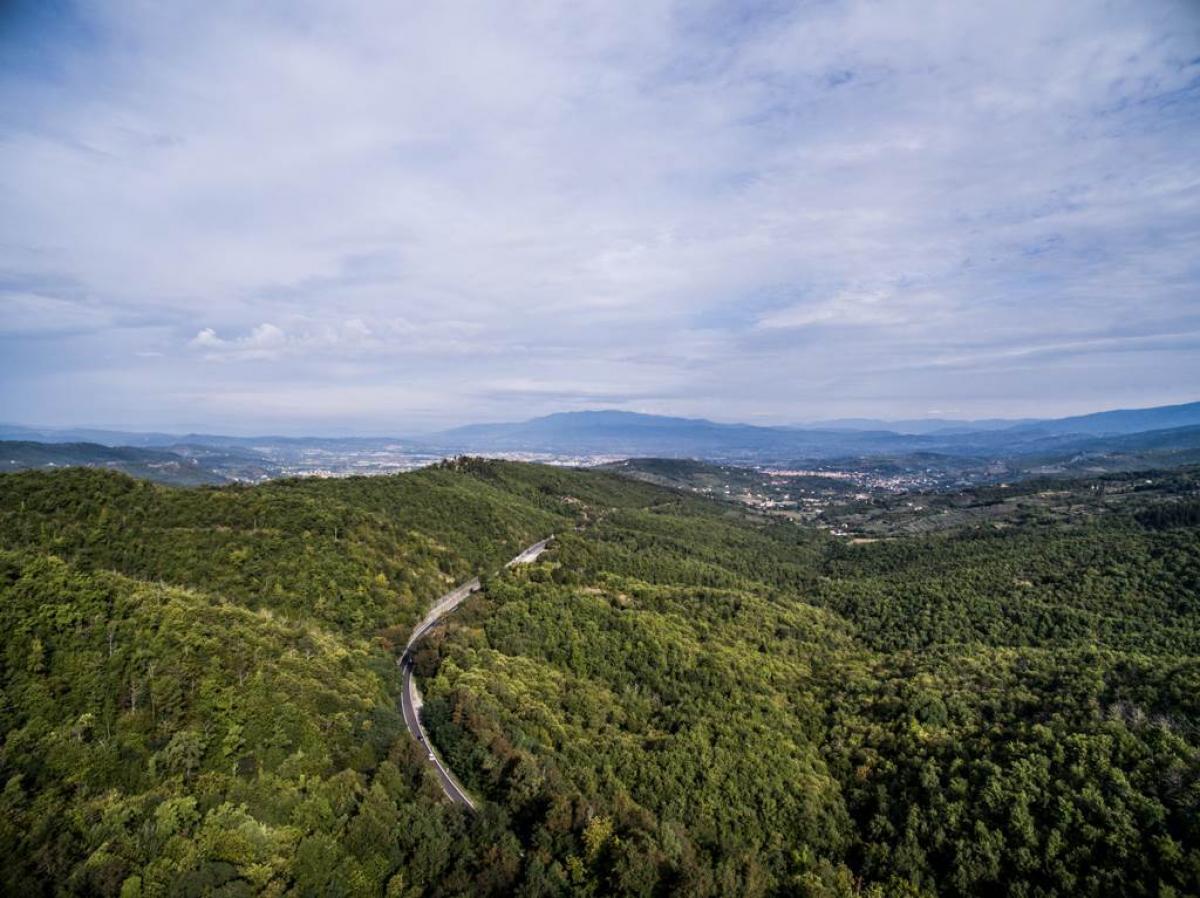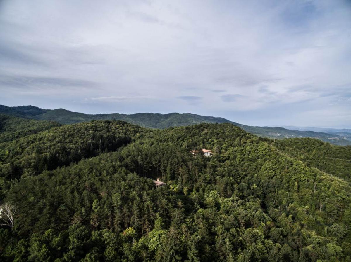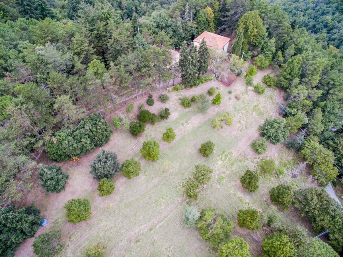For sale is an exclusive real estate complex located in the charming Tuscan hills, just 6 km from the historic center of Arezzo. The property includes a main villa of approximately 380 sqm, an independent dependance of 160 sqm, as well as accessory buildings such as a double garage, cellar, woodshed, and tool storage. it is surrounded by a 10-hectare park and woodland, with various high trees, hedges, paths, and internal walkways.