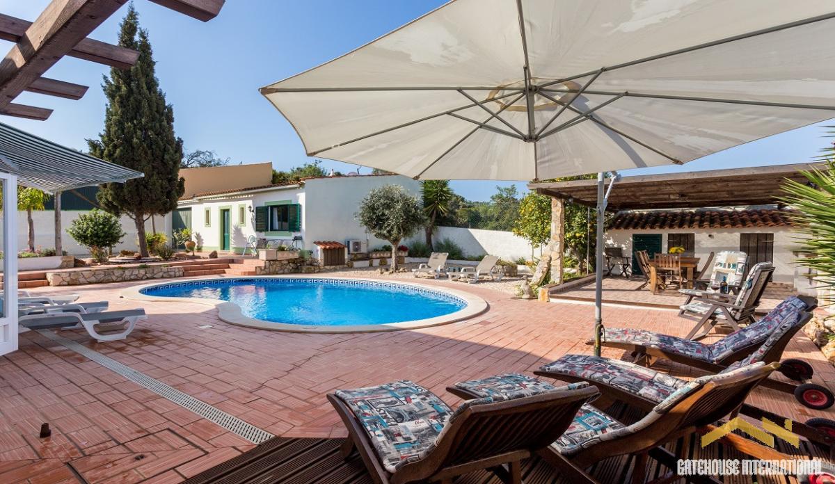 4 Bed Single Storey Villa With A Studio Apartment in Lagos Algarve - this property has a 3-bedroom 3-bathroom main villa with a separate independent guest studio and is located close to Boavista Golf Resort and Porto de Mos beach. The main villa comprises an entrance hall, large lounge, kitchen and breakfast room, laundry room, 3 bedrooms and 3 bathrooms. Additionally, there is a studio apartment with a lounge, dining area, kitchen area, bedroom, and shower room. The property is fenced and gated, and inside there is a beautiful garden with several terraces, a swimming pool, terraces, storage space, a spacious barbecue area with table and chairs, a pergola and a second outdoor leisure terrace with table and chairs. The property also has a large garage, a large parking area for several cars. The property is also electrically efficient with its own solar system, which produces electricity to power the pool pump. There is also a solar system for hot water. it is sold fully furnished and equipped. in brief: - entrance hall - lounge - kitchen and breakfast room - 3 bedrooms - 3 bathrooms - outside BBQ area plus a 2nd covered dining area - guest studio with lounge, diner, kitchen, bedroom and shower room - swimming pool - garageFeatures