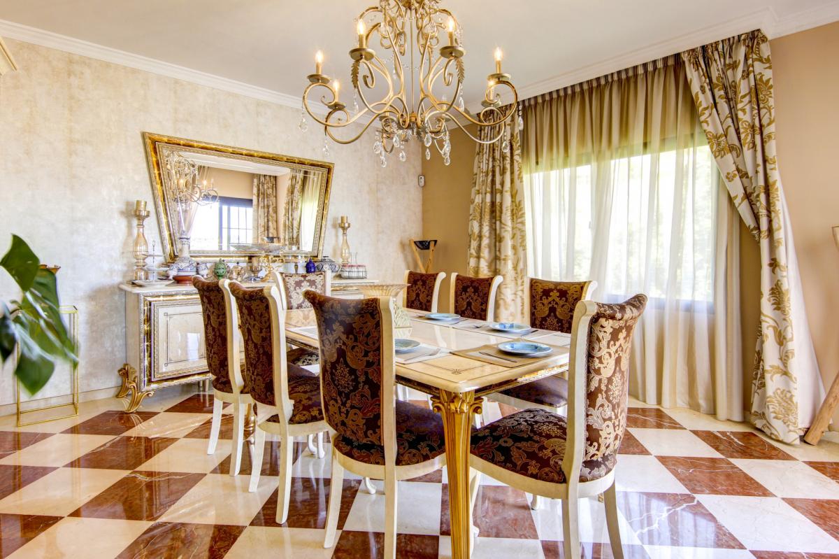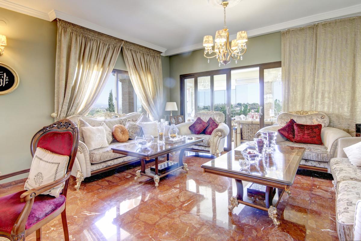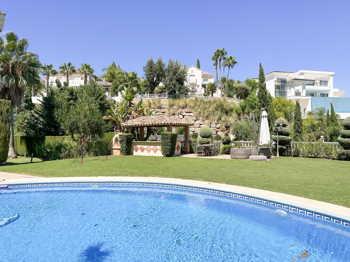 Discover an extraordinary opportunity with this magnificent 6 bedroom villa, a true gem situated within the prestigious Paraiso Alto part of Benahavis, an exclusive residential haven nestled between the charming towns of San Pedro and Estepona. Elevated to perfection, this property offers an awe-inspiring vantage point, revealing sweeping vistas that encompass the azure Mediterranean, verdant golf courses, and majestic mountains in the nearby areas.This villa showcases a timeless Mediterranean elegance, positioned to harness the full splendor of its surroundings. The entire property is securely enveloped by a perimeter fence. As you approach the home, an automated gate smoothly ushers you along, passing the villa's inviting front door and leading directly to a convenient covered carport designed for two vehicles. Upon entering, a landing gracefully connects to all the quarters on this floor.The home is entered on its upper level, a sanctuary of lavish living and sophistication. A capacious and opulent living room, an elegant dining area, and a fully equipped kitchen harmoniously presented in the same levels of comfort and luxury. This level is equipped with three bedroom suites, including dedicated service quarters, each meticulously crafted with the utmost attention to detail. Blending the indoor-outdoor lifestyle, glass curtains are installed in the spacious main terrace on this level which is perfect for admiring the panoramic views of the sea and golfing greens that provide a backdrop to the glistening pool and garden below.Descending to the lower level, an additional trio of bedrooms beckons, highlighted by a master suite that opens gracefully onto an inviting terrace. This level also reveals a modern living room complete with a kitchenette, creating an ideal space for intimate family gatherings. Thoughtful conveniences include a dedicated laundry room, a rejuvenating Turkish bath, and an expansive storage area, currently fashioned into a walk-in wardrobe.Stepping outside, the enchantment continues in the meticulously landscaped garden. Far ranging golf and mountain views can be enjoyed from the garden which centers around its good sized pool surrounded by manicured lawns. An outdoor BBQ and chill-out area offer a haven for both culinary and relaxation pursuits, ensuring year-round enjoyment of the alfresco lifestyle. The garden, a harmonious blend of open and covered spaces, caters to sun worshippers and green-thumbed enthusiasts alike.Paraiso Alto is renowned for its collection of luxury homes and boasts proximity to the area's premier golf courses, making it a haven for aficionados of both luxury living and the fairway. Beyond the oasis of this exceptional home lies a world of convenience and accessibility, making this villa an exceptional choice for either a permanent residence or a cherished holiday escape. Estepona, San Pedro, and Benahavis are a mere 10-minute drive away, while Malaga airport can be reached within a comfortable 45-minute journey.