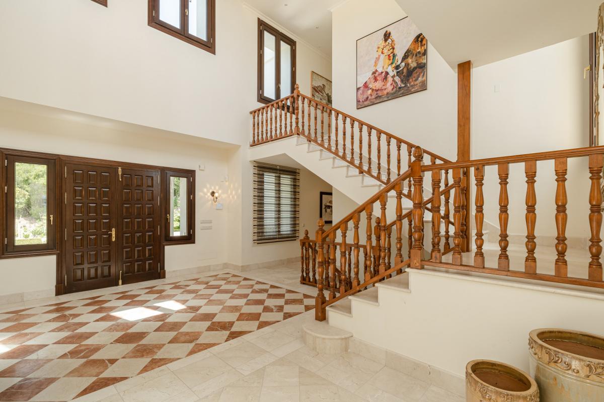 Villa Fairways is a stunning luxury property set within the prestigious gated community of La Zagaleta, located in Benahavs, just a short drive from Marbella. This exceptional residence sits on an elevated 4,666 m plot, offering sweeping views of the golf course and surrounding mountains. This villa combines privacy, tranquility, and proximity to world-class amenities, making it a truly unique home.Access to the villa is via a beautiful driveway that leads to the front of the house, where ample parking is available. Additionally, the property features an underground garage that accommodates up to five cars, providing plenty of space for vehicles while maintaining the homes sleek and elegant exterior.inside, the ground floor opens up to an impressive entrance hall, flooded with natural light from the large windows. in this level, the villa provides direct access to the outdoors, with landscaped gardens and an impressive swimming pool that is the perfect place to unwind and enjoy the incredible surroundings. The spacious living room, with its vaulted wooden ceiling and a striking fireplace, offers a cozy and welcoming ambiance. Adjacent to the living room is the kitchen, which blends seamlessly into a separate breakfast area, both offering exceptional views of the lush golf course. The circular dining room with conservatory-style windows is a highlight, providing a beautiful setting for meals with spectacular views of the green landscape.The upper floor hosts the master suite, featuring a private terrace that further enhances the stunning panoramic views. The master bedroom offers ultimate privacy and comfort, with a luxurious en-suite bathroom and an expansive dressing area. The villa's design focuses on optimizing the natural surroundings and providing serene spaces for relaxation.The residence features top-tier installations including underfloor heating throughout, air conditioning in every room, and a sophisticated home intelligence system, ensuring modern comforts and convenience at every turn.Set in the exclusive La Zagaleta community, this villa offers the highest level of security and privacy. Residents can enjoy access to two golf courses, clubhouses, tennis and padel courts, an equestrian center, and a heliport. Located just a short drive from Marbella, the charming village of Benahavs, and a variety of beaches, this villa combines the best of both worldspeaceful seclusion and easy access to first-class amenities and facilities.