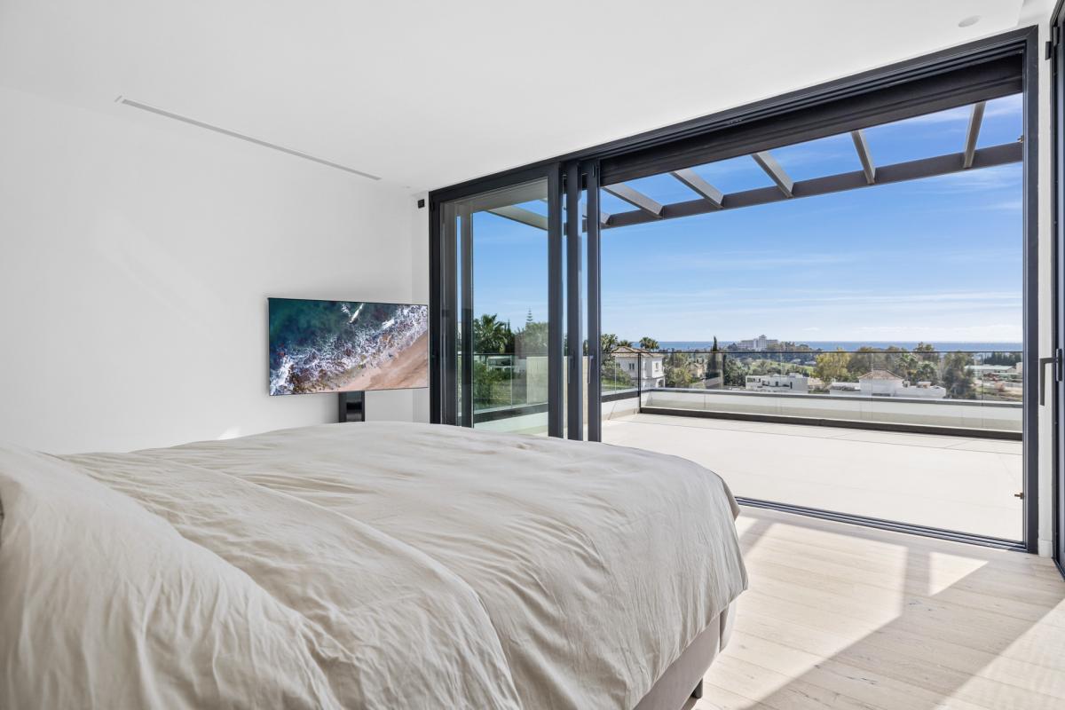 This sleek, modern villa in La Alquera, Benahavis, sits on a generous 1,238-square-meter plot and offers 537 square meters of stylish living space and 120 square meters of terraces. Boasting a southwest orientation and an elevated position, the property enjoys stunning mountain views and partial sea views from the upper level.The bright and open main floor is designed to impress, featuring a welcoming entrance hall that leads into a spacious living and dining area with high ceilings. The open-plan kitchen, by Modul Nova, is equipped with top-of-the-line Miele appliances. A separate laundry room, guest toilet, and a guest bedroom with an en-suite bathroom complete this level. Large glass doors flood the space with natural light and open to both a covered and open terrace, which flows into the heated saltwater pool and beautifully landscaped gardens.The entire first floor is dedicated to sleeping quarters. The luxurious master suite, with its dressing area, is complemented by two additional en-suite bedrooms, each with direct access to a terrace offering partial sea views.The lower floor offers a flexible multipurpose area, perfect for additional living or recreational space. it also includes a guest toilet, storage rooms, and an integrated garage for two cars, along with a covered carport for two more vehicles.This villa has been constructed with energy efficiency in mind, earning an A energy certificate. it features high-end amenities, including airzona climate control, A/C, underfloor heating throughout, 20 solar panels, and an elevator connecting all three floors. The garage also includes an electric car charger.The property is sold unfurnished but offers the option of an additional furniture package at a negotiable price.Located in the prestigious and tranquil neighborhood of La Alquera, Benahavis, this villa offers convenient access to shops, Nueva Andalucia, and Puerto Bans. its also near top golf courses like La Alquera Golf, Atalaya Golf & Country Club, and El Paraso. The area is well-served with private international schools, commercial centers, banks, and more. Mlaga-Costa del Sol Airport is just a 40-minute drive via the AP-7 toll road.