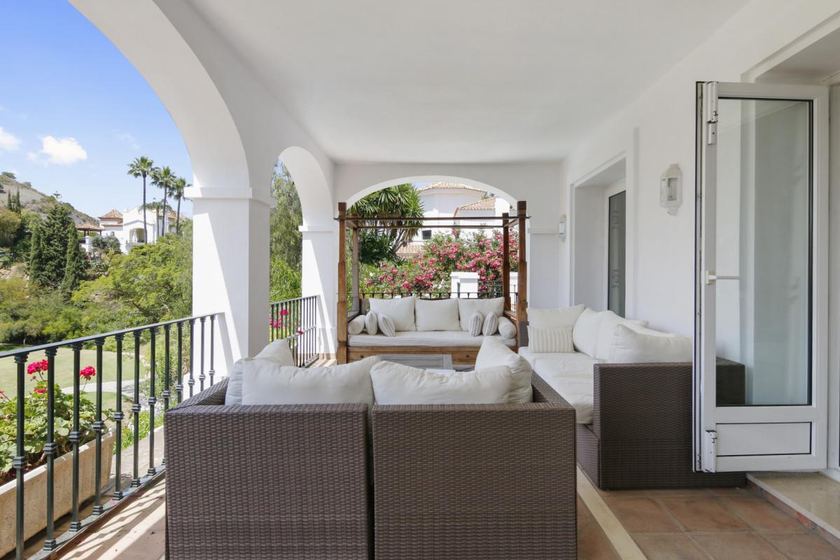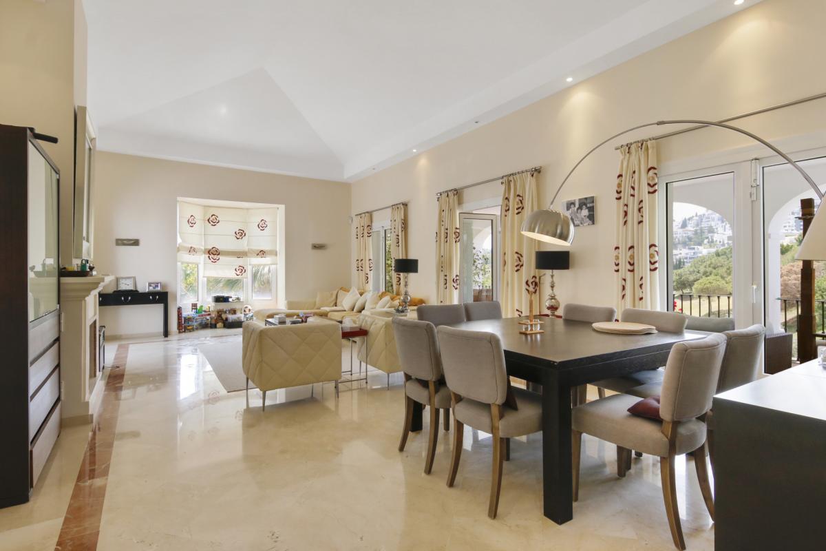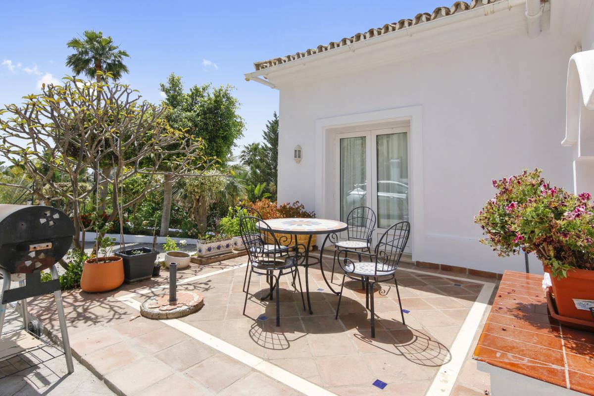 This stunning 5-bedroom villa is your gateway to a life of luxury on the Costa del Sol. ideally situated in La Quinta, Benahavis, the property boasts breathtaking views over the fairways of La Quinta Golf course, offering an unparalleled golfing experience right at your doorstep.Mediterranean elegance defines the home, with spacious living areas designed for entertaining and relaxation. The automated gated entrance reaches the driveway, which leads to the enclosed garage on the lower level and to the main entrance on the upper level.Upon entering, a grand landing welcomes you into the heart of the home. To your right, the spacious master suite features vaulted ceilings and a luxurious bathroom, with large windows framing the golf course vista. On the other side of the entrance lies the fully equipped kitchen, offering access to a charming patio, perfect for al fresco breakfasts.The expansive living room boasts a fireplace and vaulted ceilings and seamlessly connects to the main terrace. Here, you can unwind and enjoy the stunning pool, garden, and golf course views below. A convenient cloakroom completes this floor.Descend to the lower level to discover three inviting guest bedrooms, one with an en-suite bathroom. All rooms boast beautiful golf course views and access to the lower terrace and pool area. On this level, you'll also find a spacious garage and a flexible basement area, perfect for storage or creating additional living space.An added bonus is the guest apartment, conveniently located on the lower level. Featuring an open-plan layout, a kitchen, and a spacious bathroom, it offers complete privacy for your guests. The current owners have also utilized this area for a home gym. Outside the guest apartment, you can indulge in the ultimate relaxation experience with the inviting jacuzzi hot tub.This exceptional property is built to high specifications and is waiting for you to make it your own. La Quinta's prime location provides easy access to everything you desire. Pristine beaches and the vibrant Puerto Banus are just a 10-minute drive away, while Marbella is within a 15-minute reach. Malaga airport is conveniently located 45 minutes away.