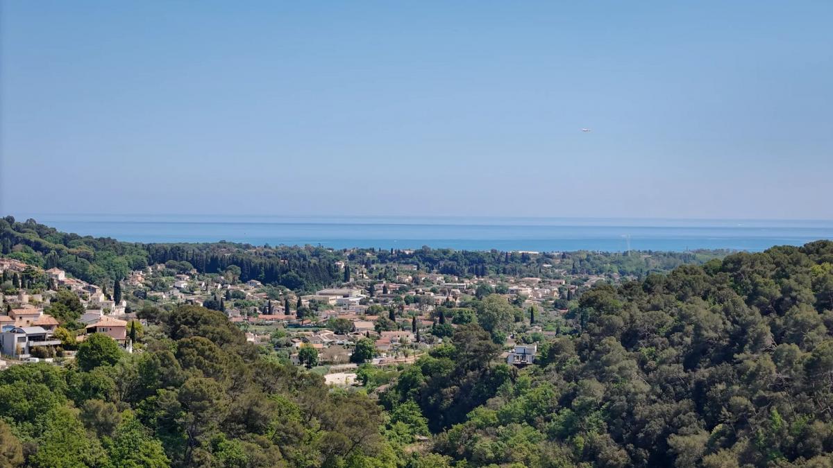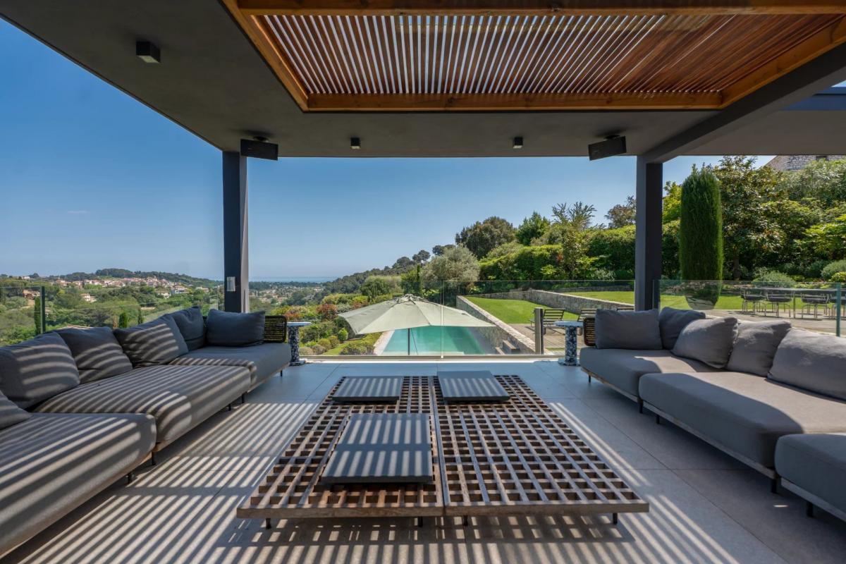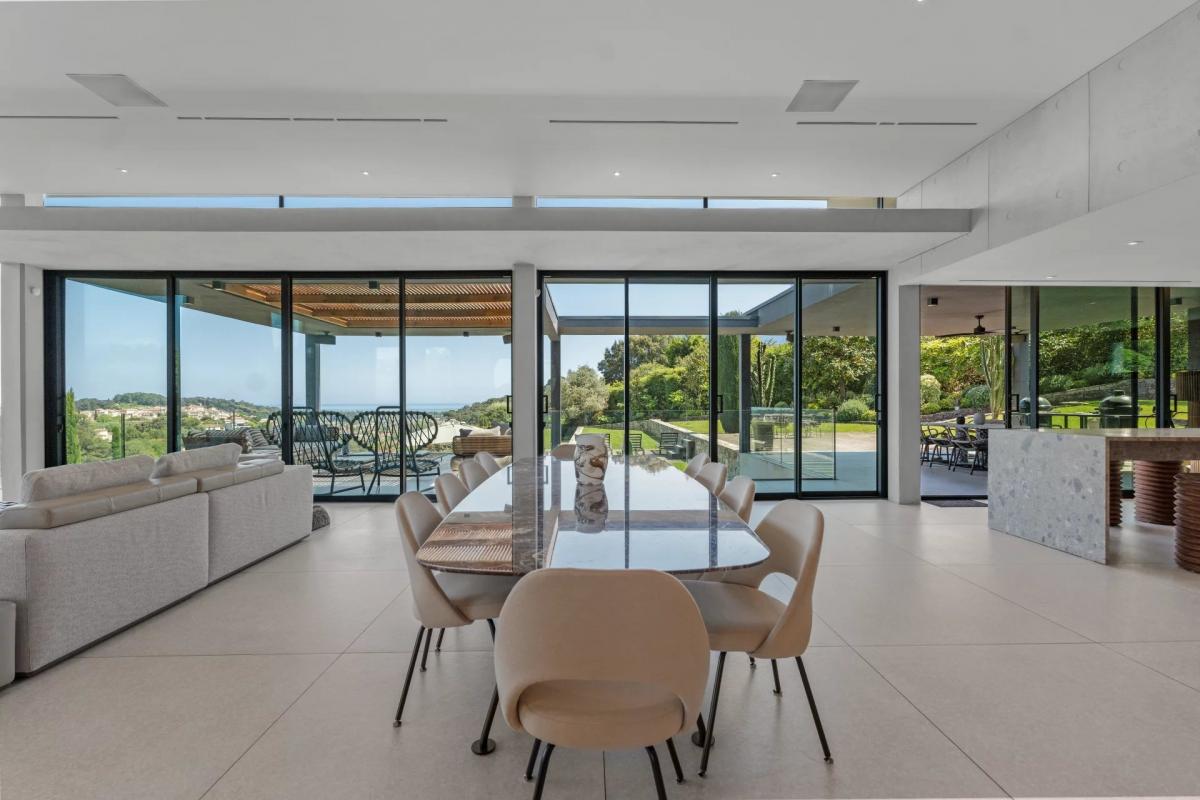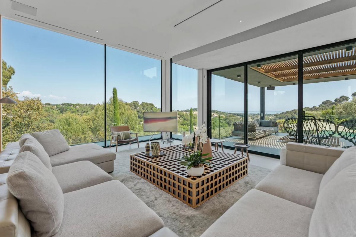 Located in the heart of a secure and highly sought-after private estate, this architect-designed property sits at the end of a quiet cul-de-sac with no overlooking, offering breathtaking views over the sea, surrounding hills and the village of Biot.