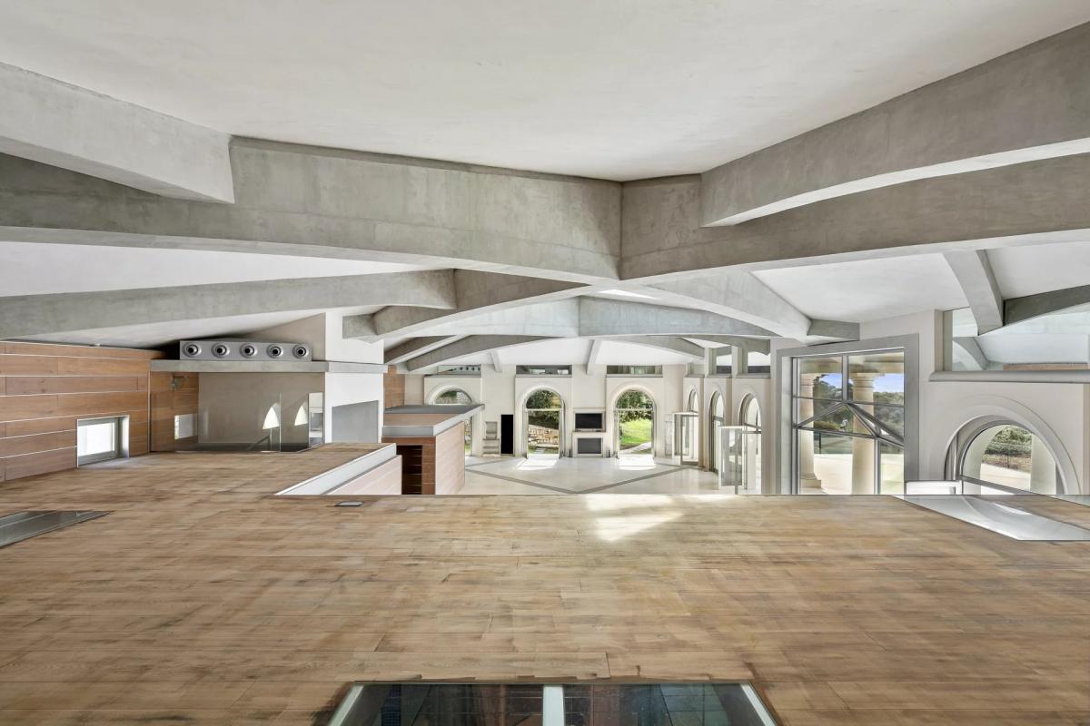 The ground floor, approximately 480 m2, features a vast reception area flooded with natural light and opening onto a large stone terrace. A mezzanine of over 100 m2 overlooks the main space and can be used as an office, library, or suite. This level also includes a kitchen, a dressing room, two bathrooms, and a shower room. All spaces open onto the terrace with views of the sea and an infinity pool with a jacuzzi.