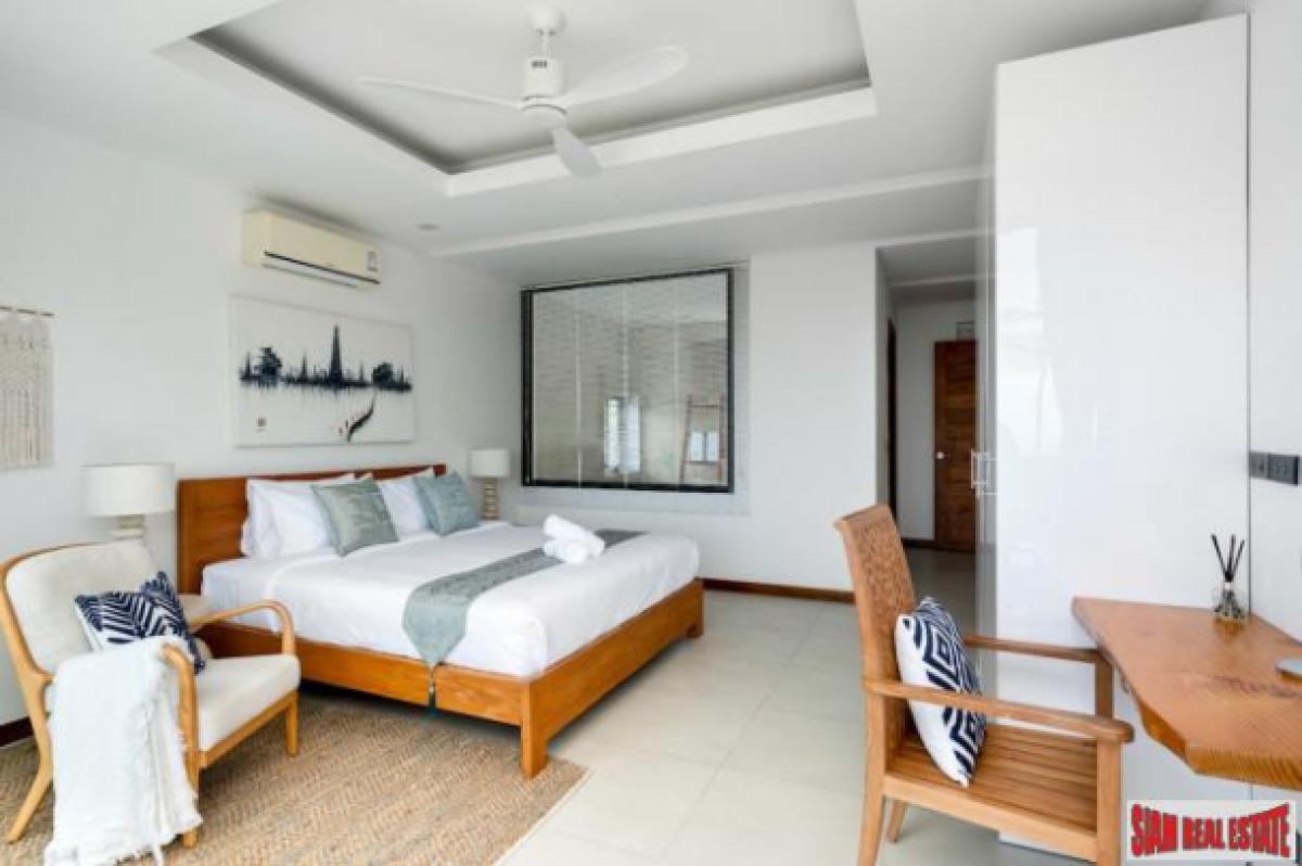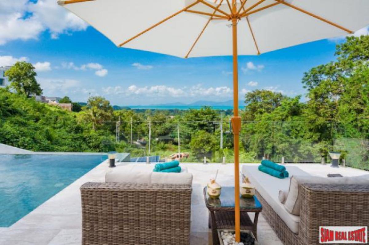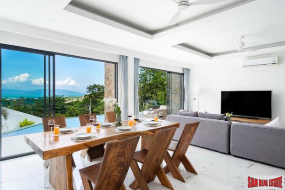 The villa carries an exceptional coastal-meets-contemporary elegant design throughout, mesmerizing with clean-lined architecture articulated with textured stone columns and accents. This Koh Samui property has its own private resort-inspired infinity swimming pool and sea view terrace, as well as a lush garden entertainment area that highlights a built-in BBQ and alfresco dining areas. With everything accounted for, this charming residence embodies tranquil coastal living.Sun filled and serene, this Koh Samui contemporary villa offers a gorgeous open concept living space with air-conditioning and ceiling fans. A sleek white kitchen counteracted by gleaming black counters anchors this space and provides a casual gathering space with island or more formal option overlooking the dining area. These main living areas open to the outdoors and welcome views through numerous sliding-glass doors. Three beautiful bedrooms on this floor create an air of relaxation and sophistication, each one walking out to the pool terrace via sliding glass doors. Well appointed bathrooms complement these rooms with such features as a walk in shower or soaking tub. The fourth bedroom is tucked away on the lower level and directly accesses the garden in a breath of fresh air. All bedrooms are air conditioned.